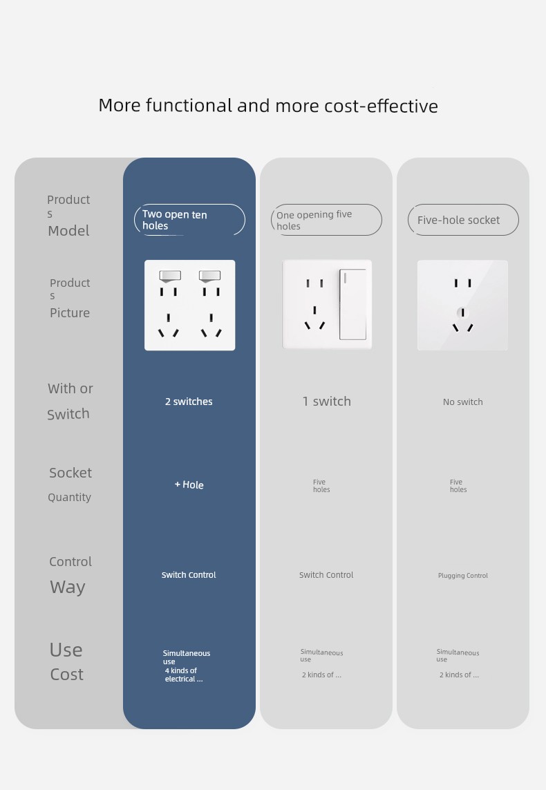86-Type One-Opening Eight-Hole Switch Socket Panel Multi-Functional 1-Opening Eight-Hole with Switch Multi-Purpose Six-Hole Second Section Ten-Hole
