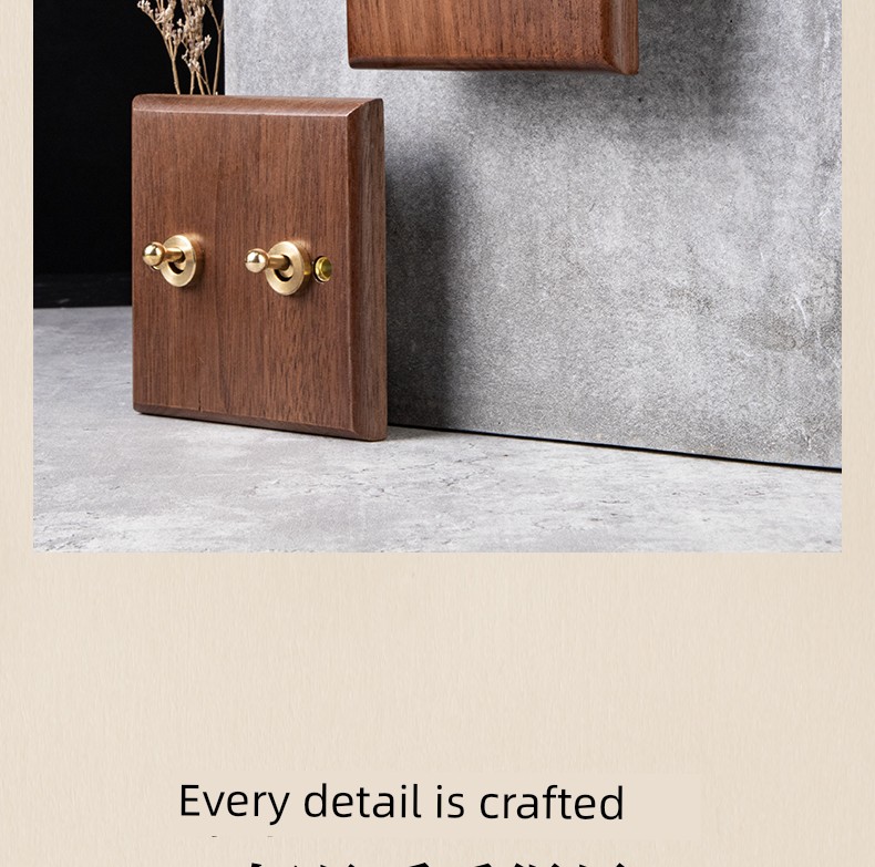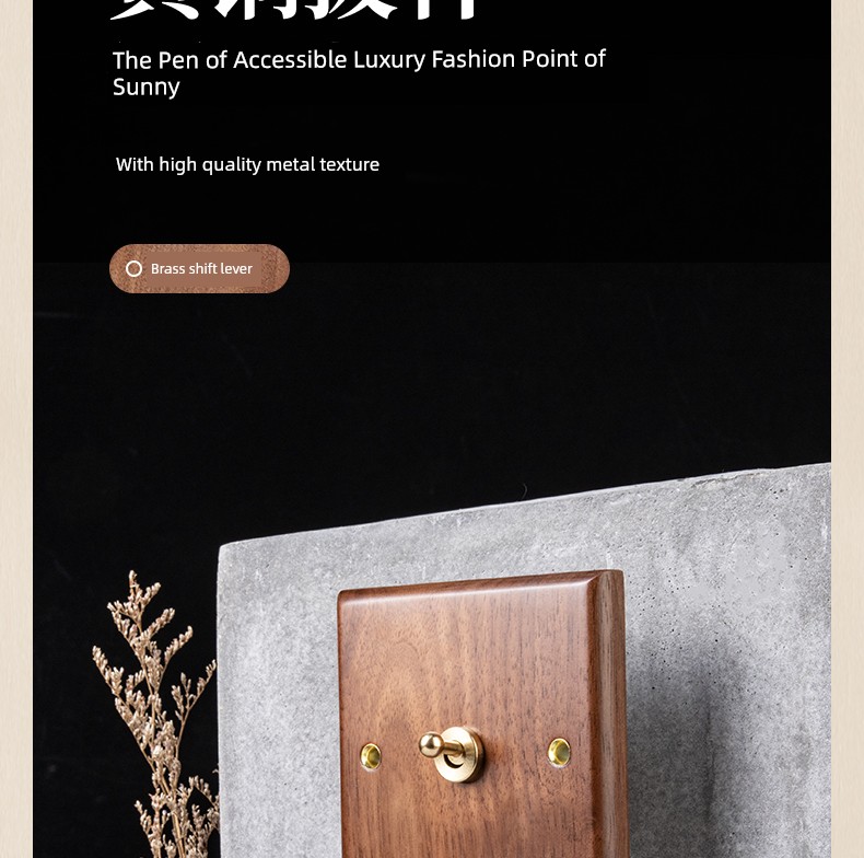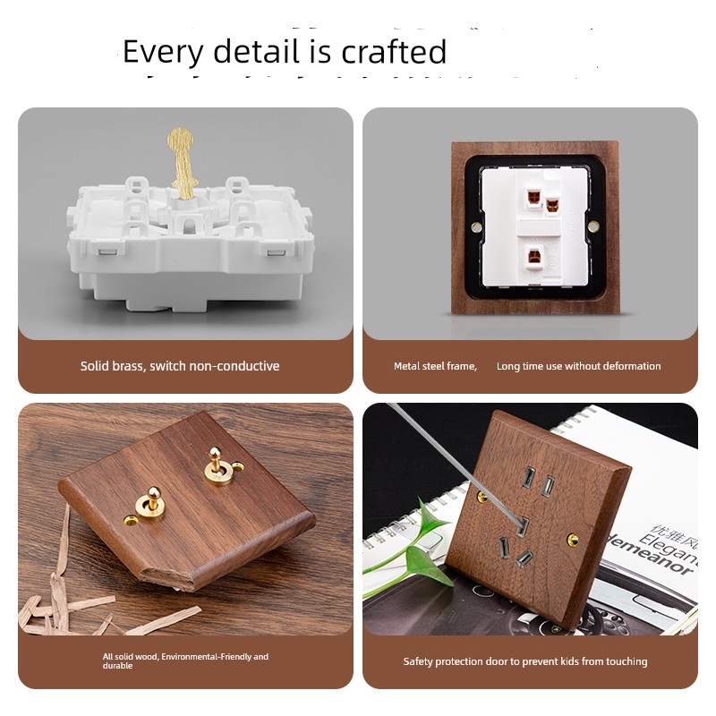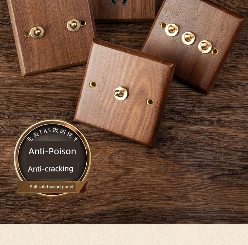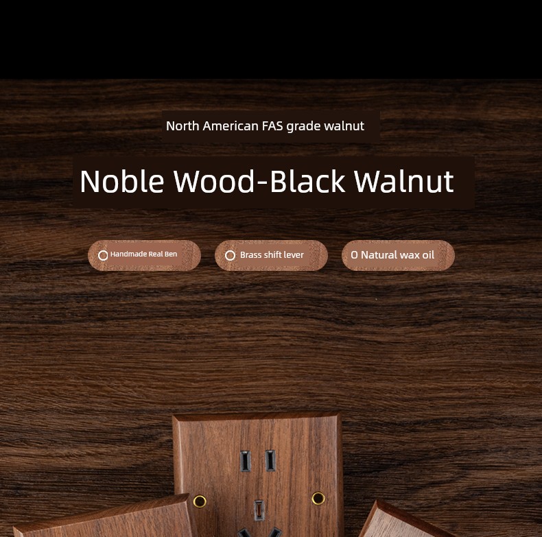 86 Type Solid Wood Switch Socket Panel American Black Walnut Retro Brass Work Driving Arm Antique Power Supply Porous B & B