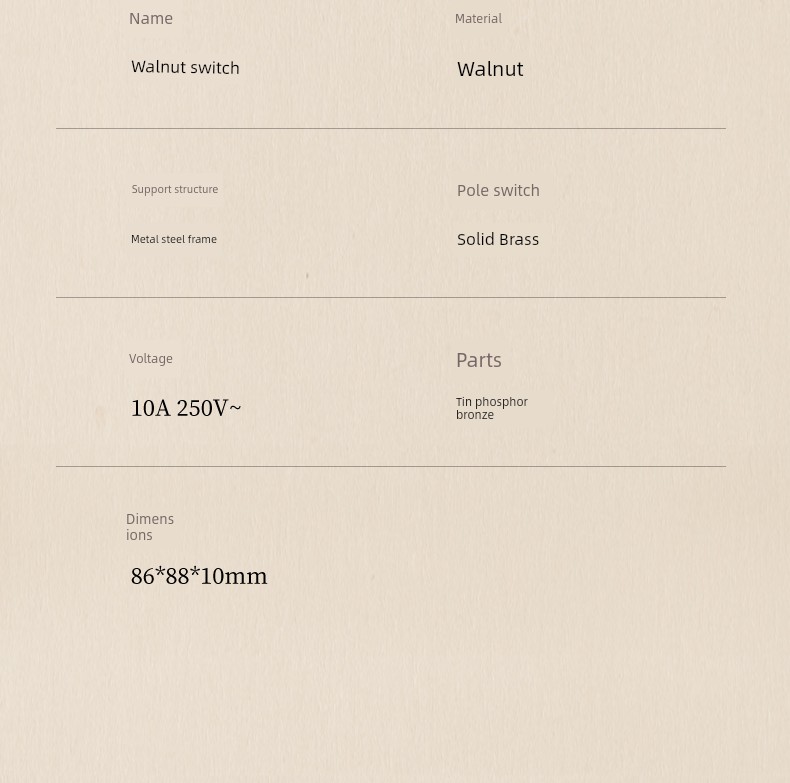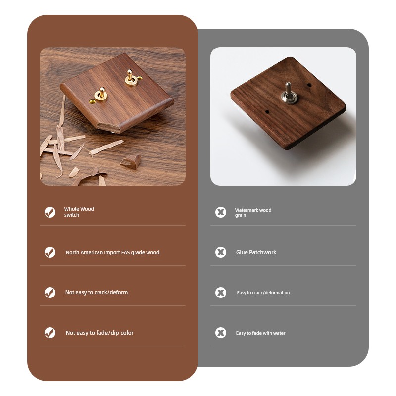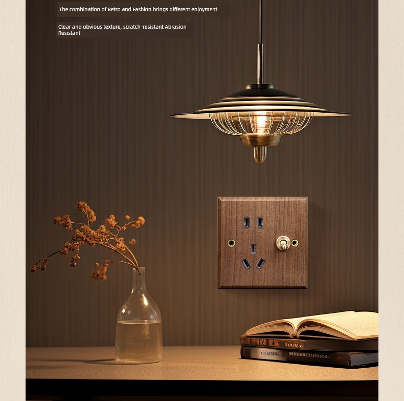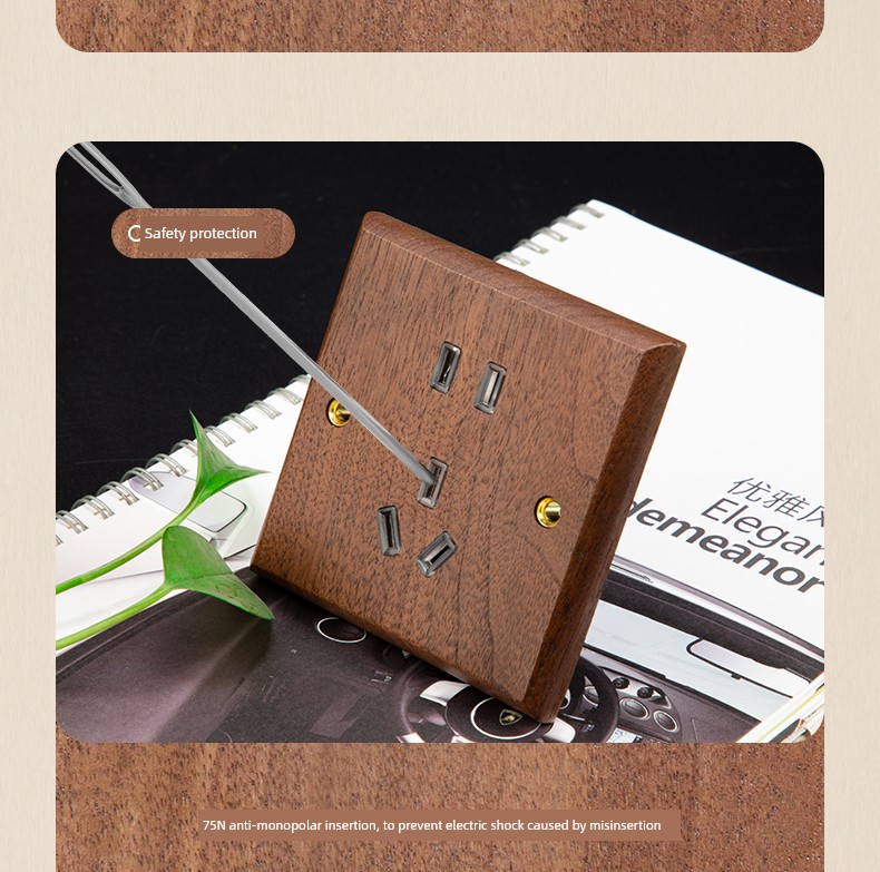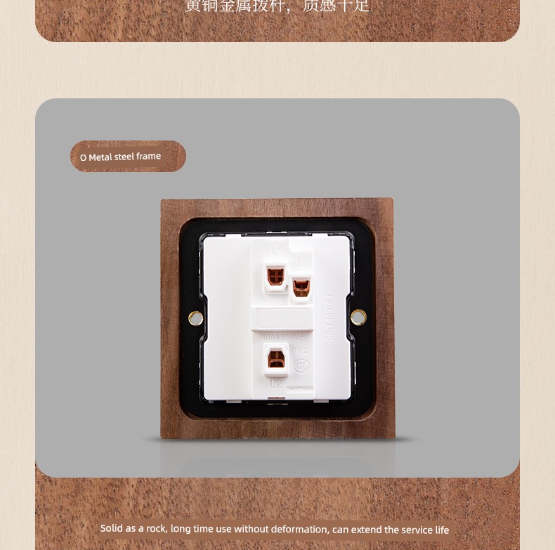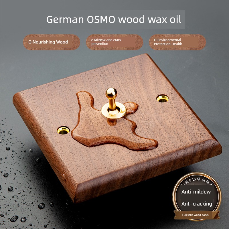 86 Type Solid Wood Switch Socket Panel American Black Walnut Retro Brass Work Driving Arm Antique Power Supply Porous B & B
