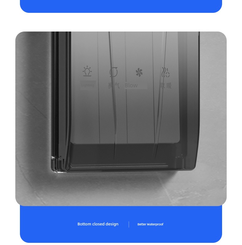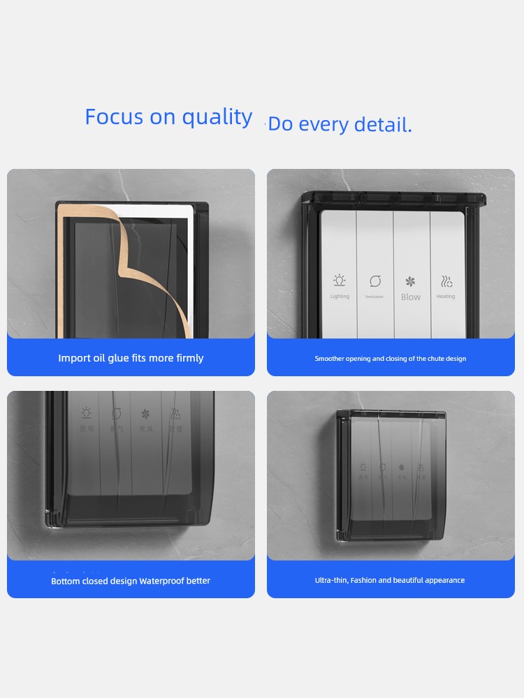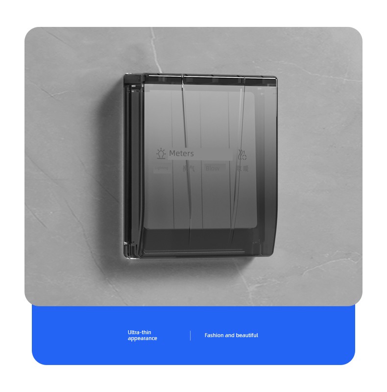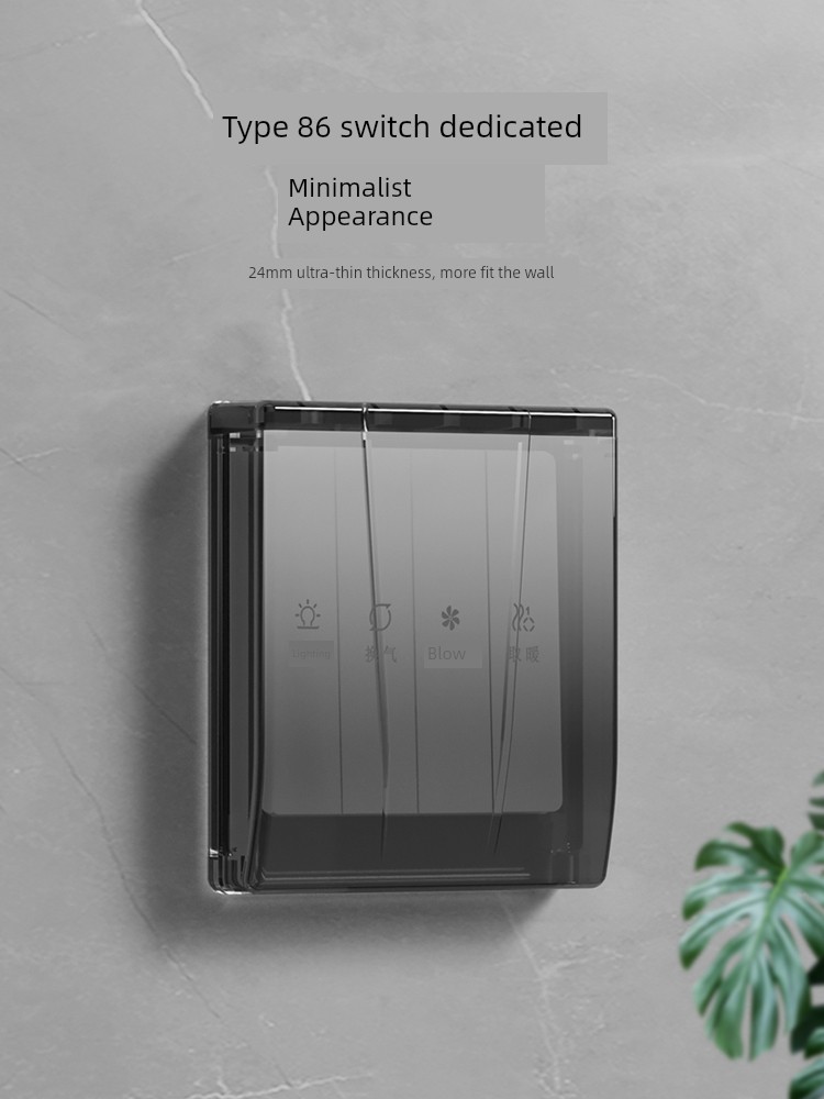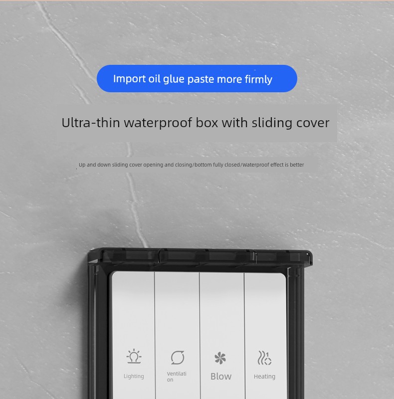 86-Type Ultra-Thin Sliding Cover Waterproof Box Switch Waterproof Cover Bathroom Toilet Socket Bath Heater Downward Sliding Protective Cover