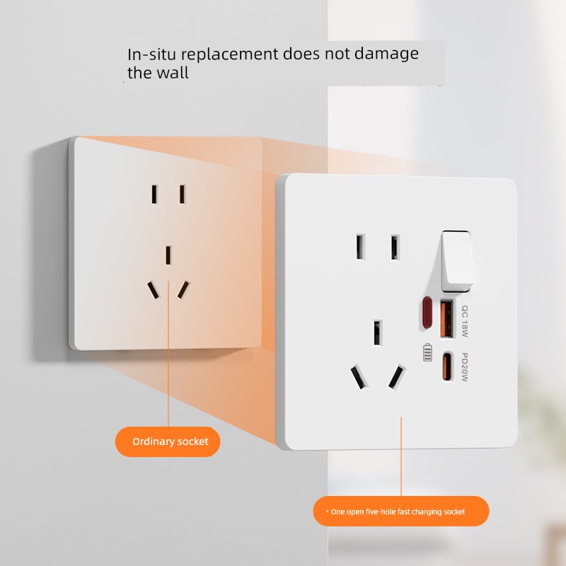 86 Type USB Socket Type-c Fast Charge 20W For Home Wall One Open Five-Hole Socket Multi-Function Panel with Switch