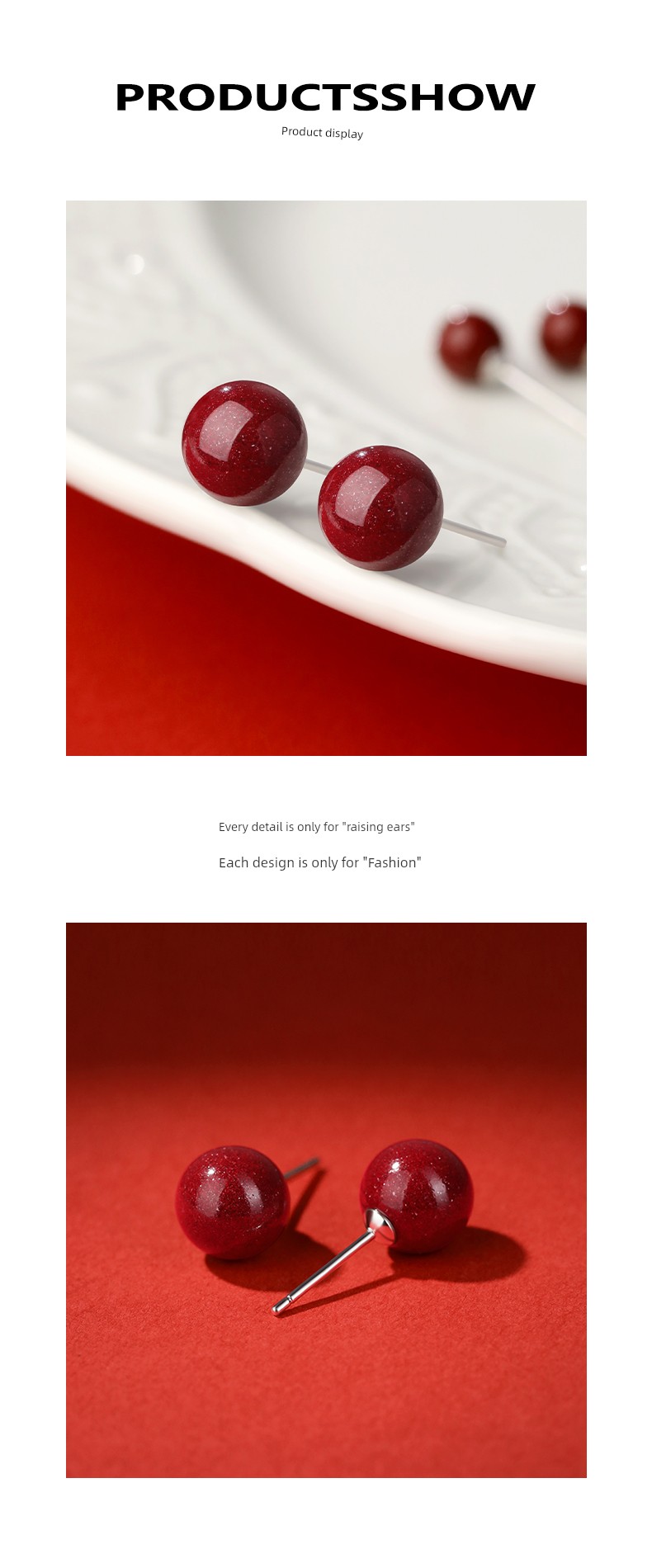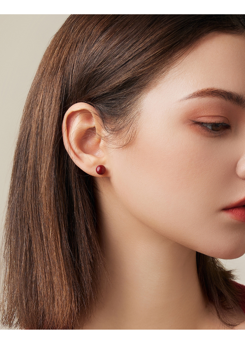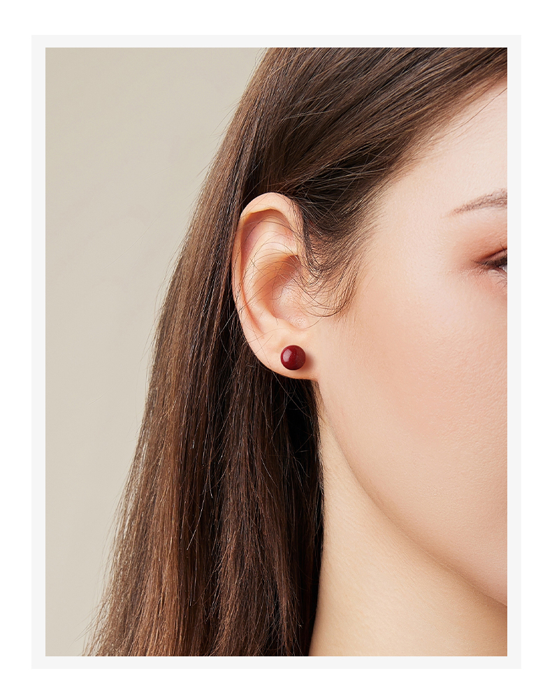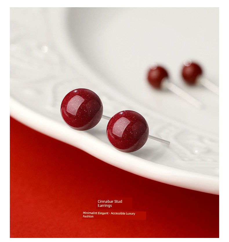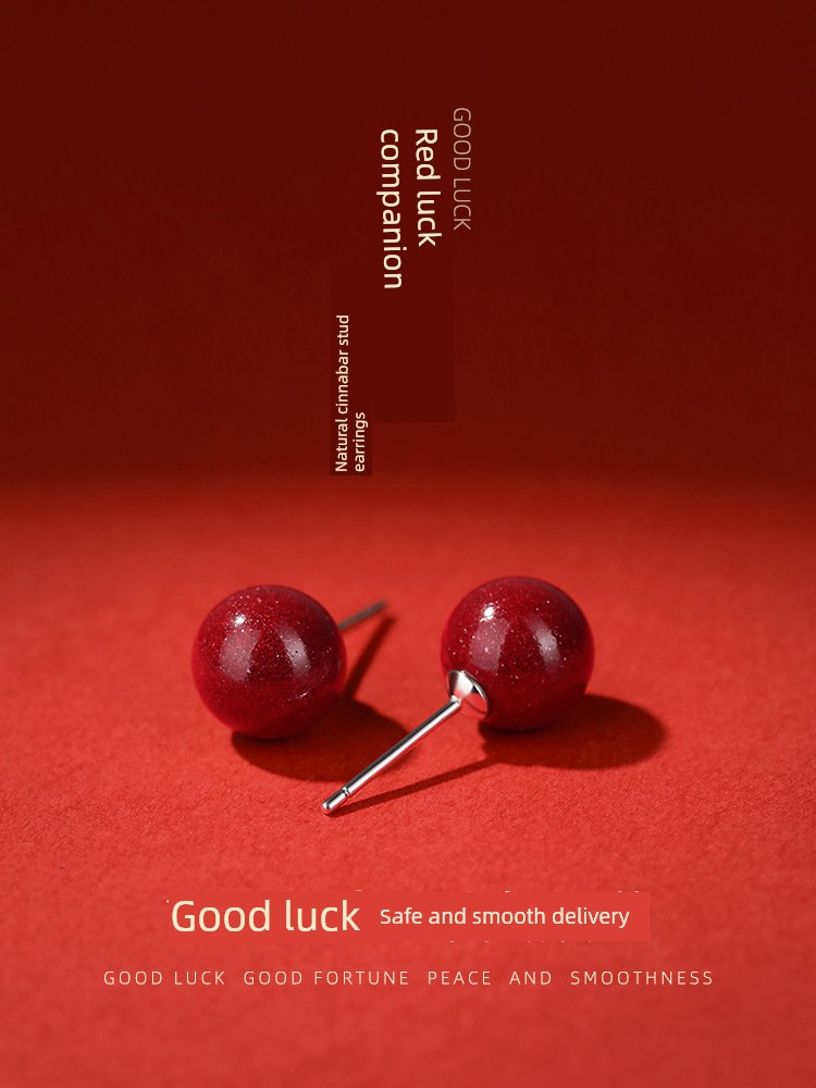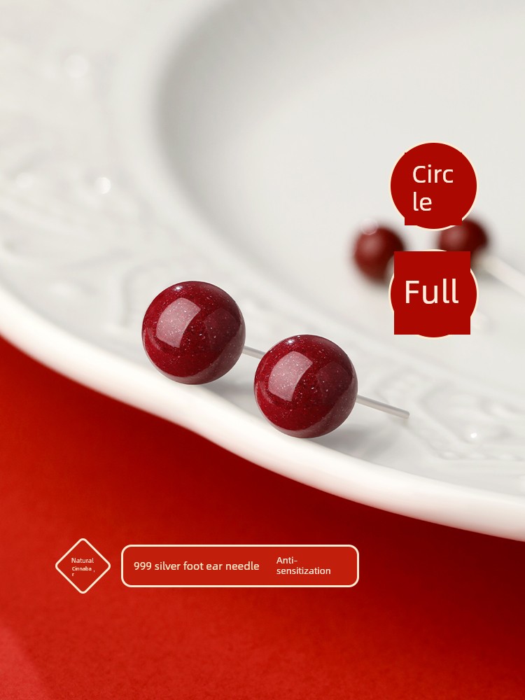 999 Sterling Silver Cinnabar Stud Earrings Female Temperament Light Luxury Retro Red Birth Year Earrings Ear-Caring New Year Ear Rings