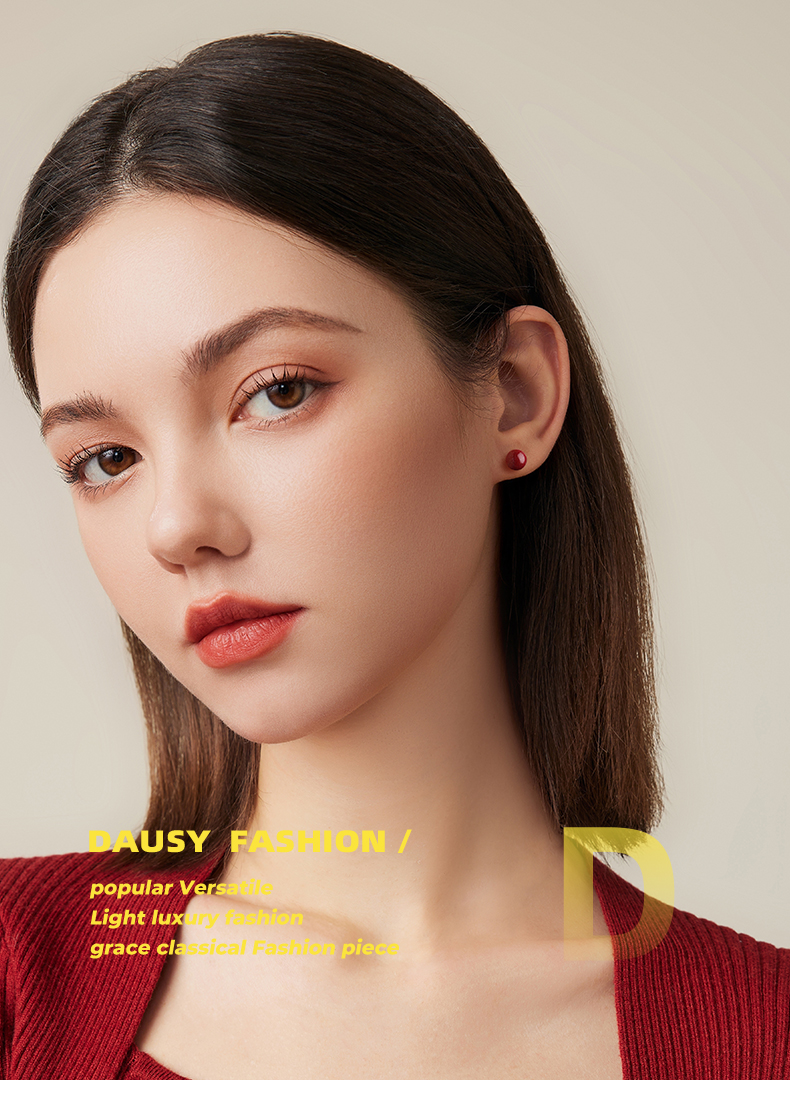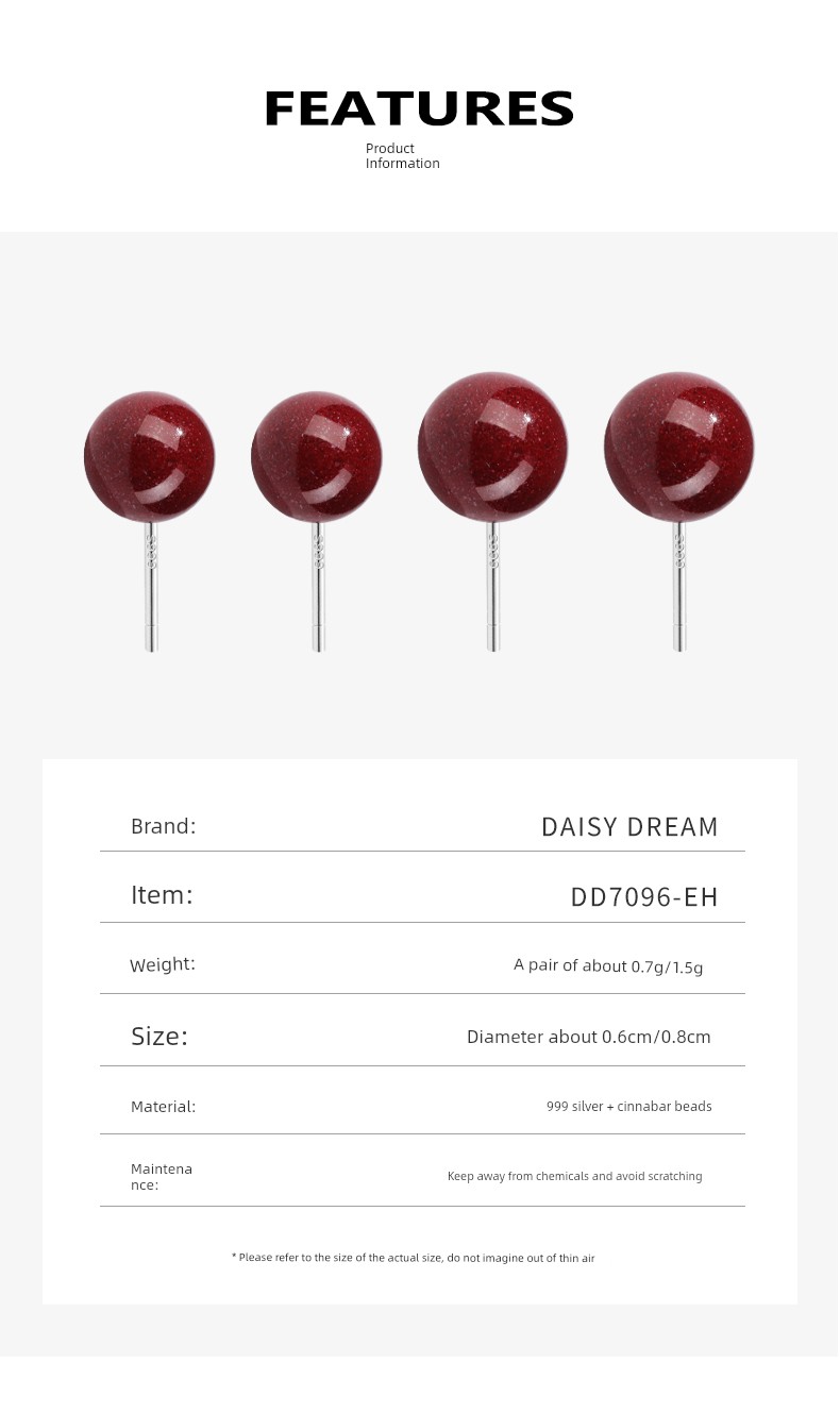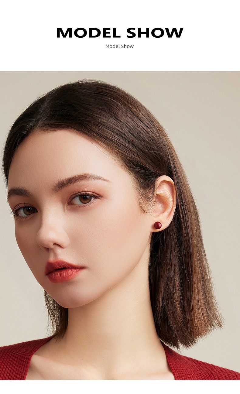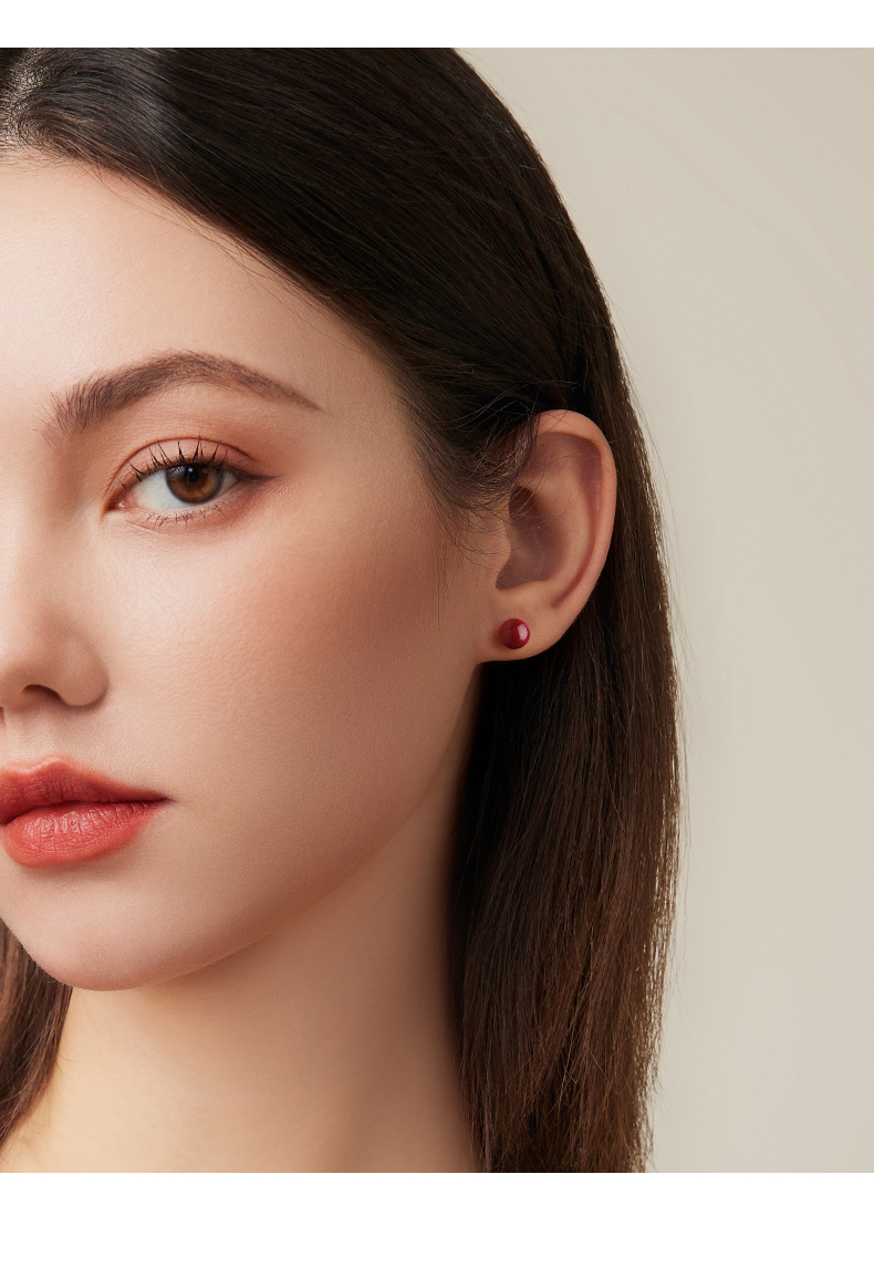999 Sterling Silver Cinnabar Stud Earrings Female Temperament Light Luxury Retro Red Birth Year Earrings Ear-Caring New Year Ear Rings