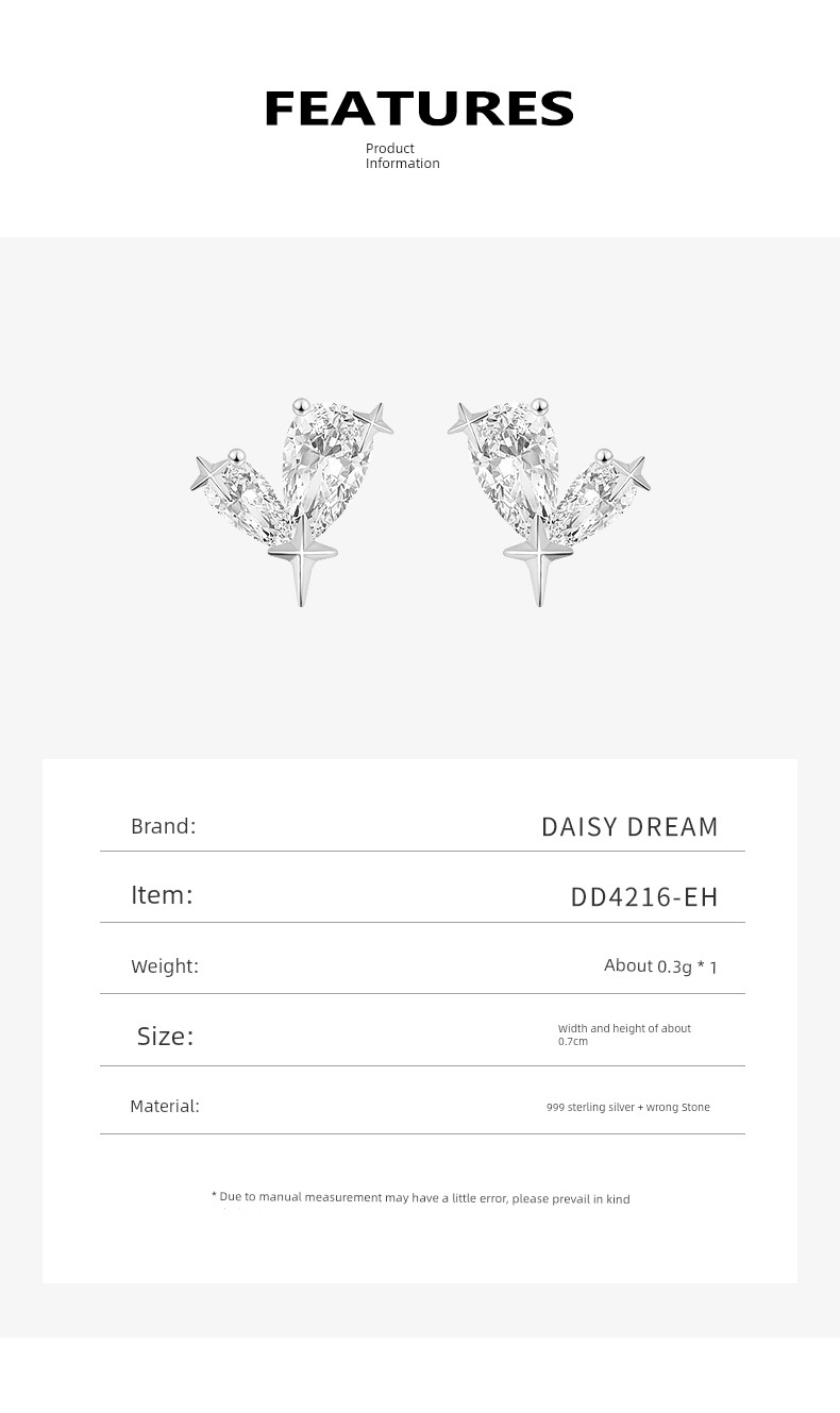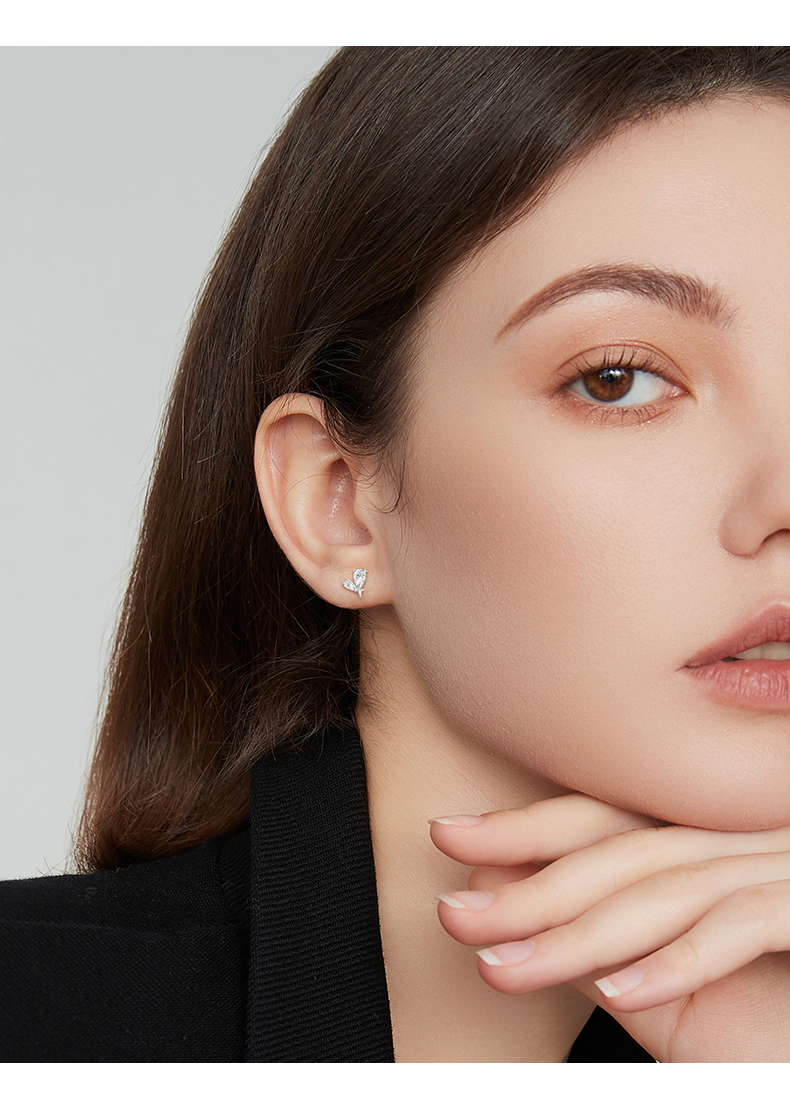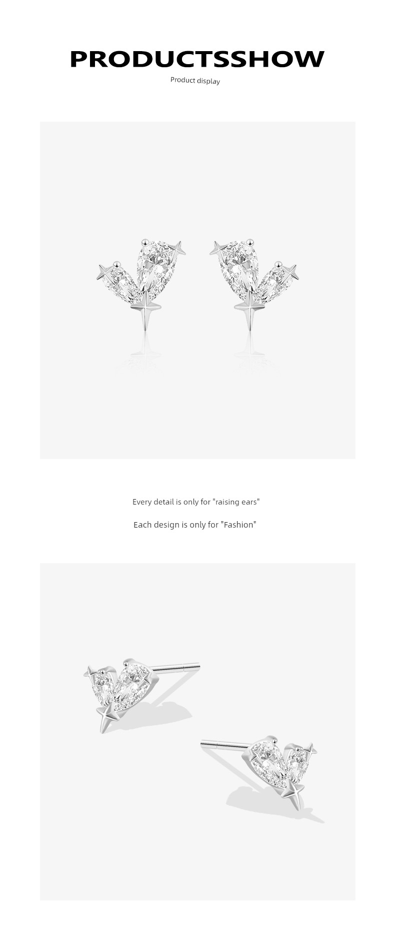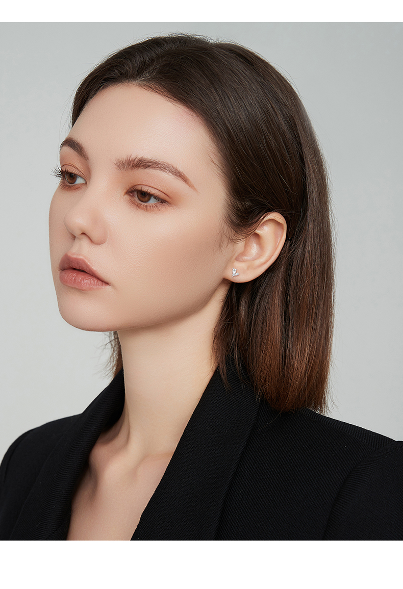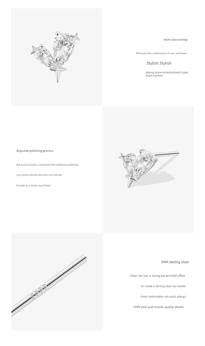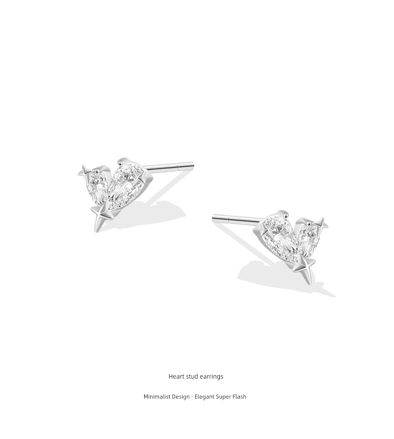 999 Sterling Silver Design Love Heart Stud Earrings Women's Small Exquisite Sweet Star Earrings Elegant Ear-Caring Ins Earrings