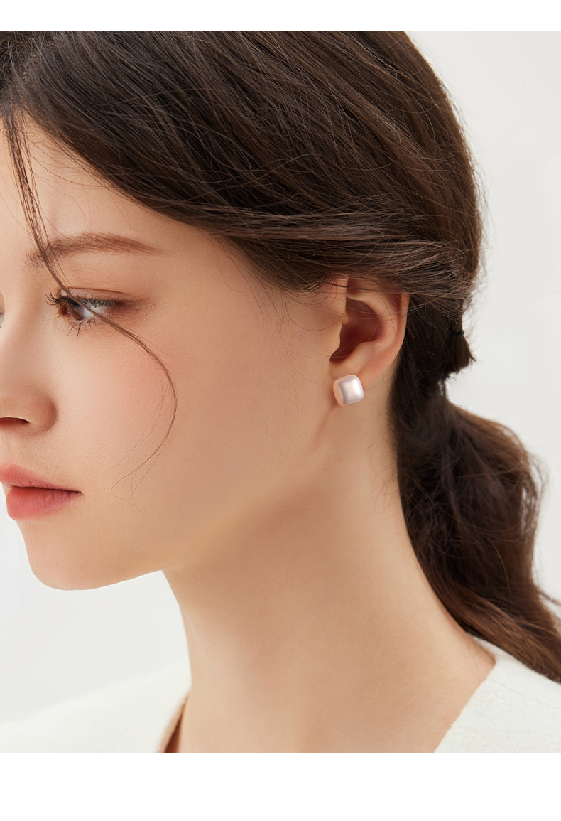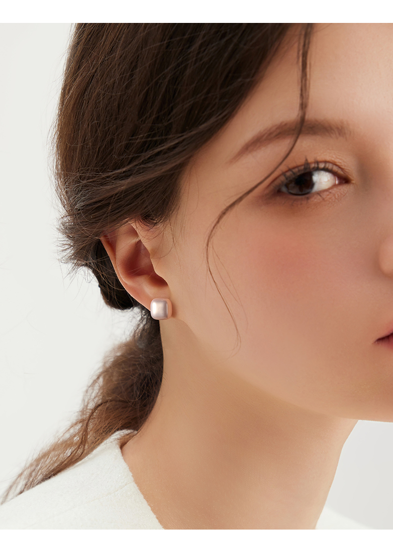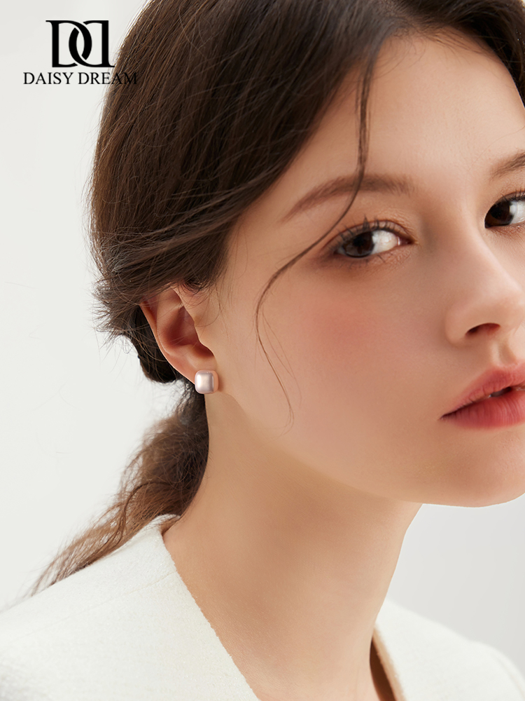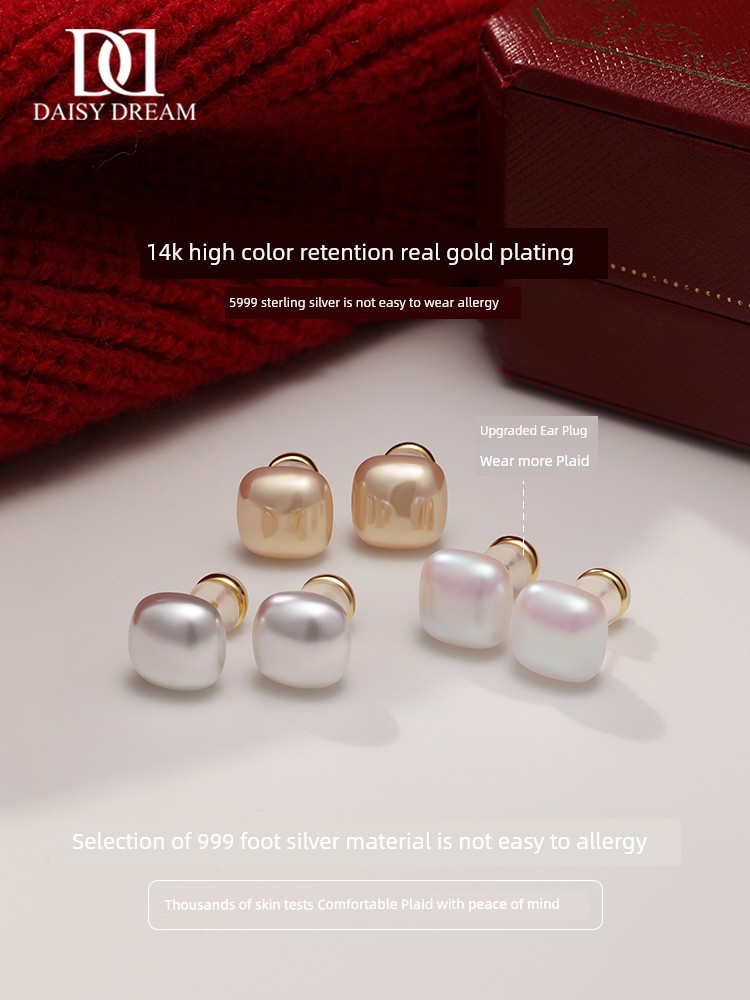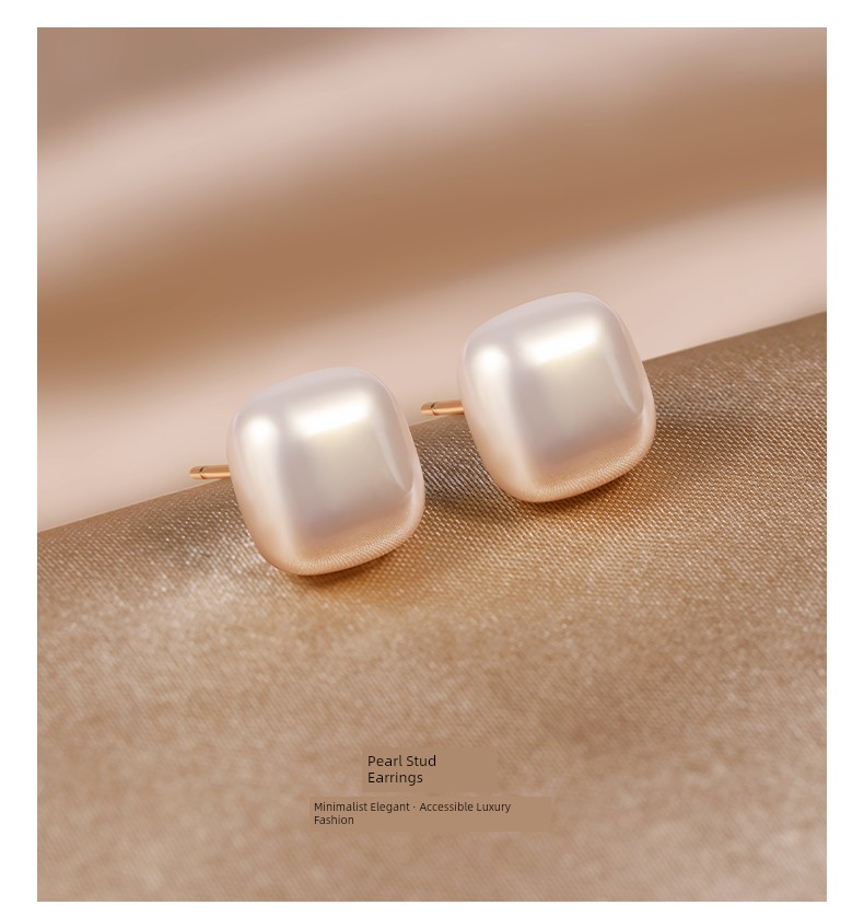 999 Sterling Silver Small Sugar Cube Pearl Stud Earrings Female Temperament Light Luxury Fancy Earrings 2025 New Arrival Best Selling Ear Rings