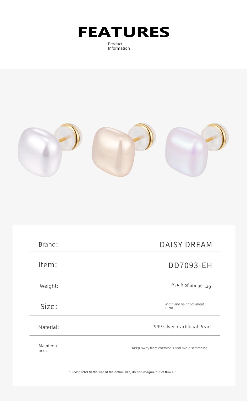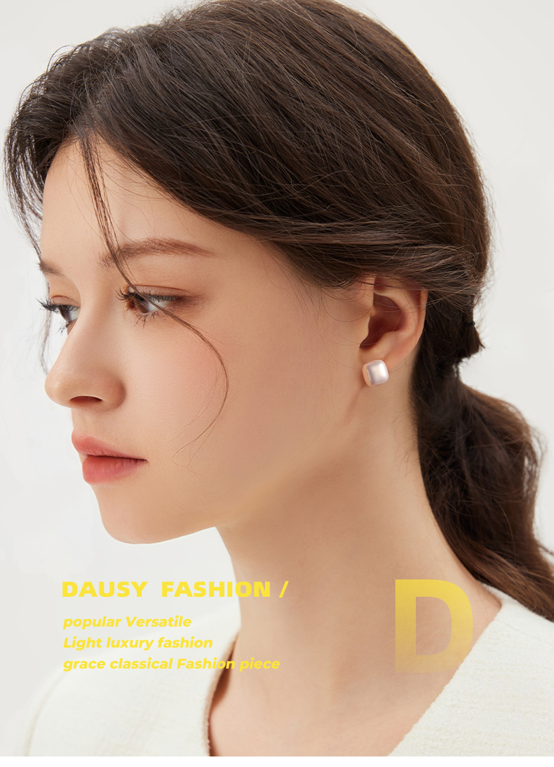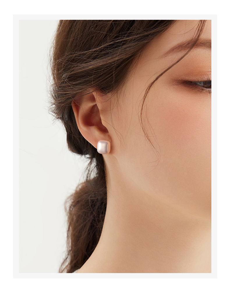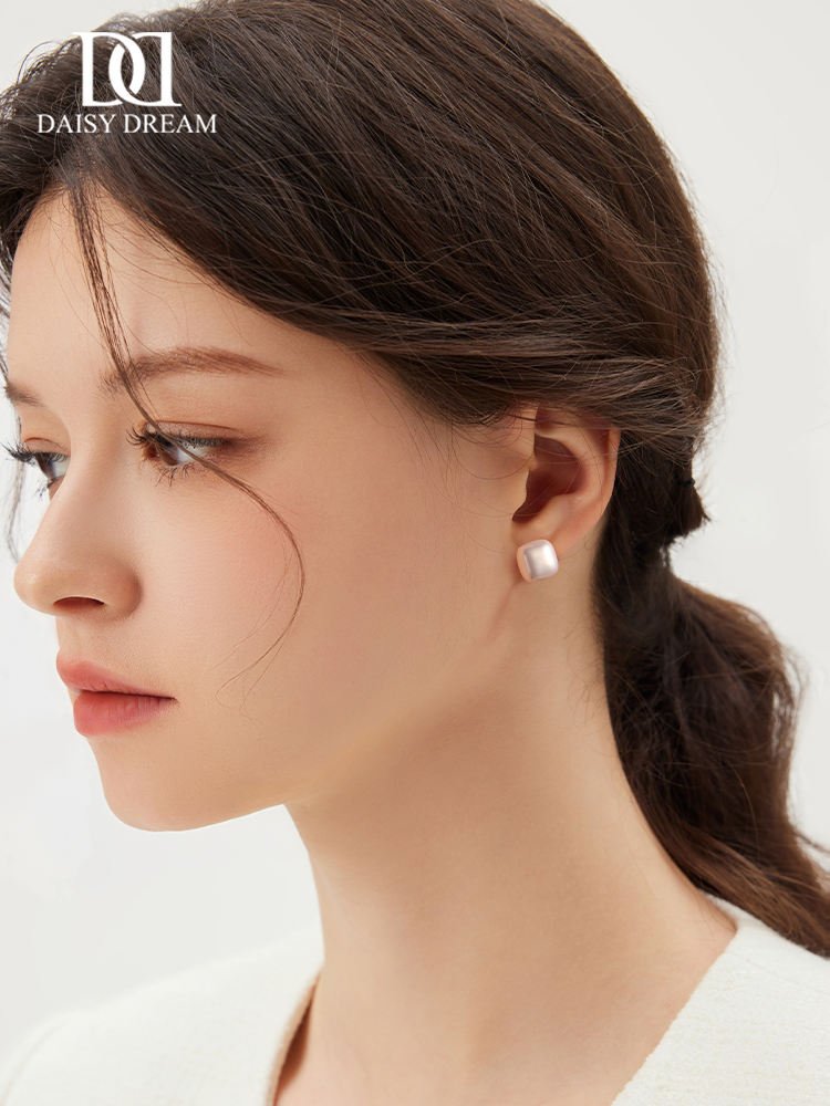 999 Sterling Silver Small Sugar Cube Pearl Stud Earrings Female Temperament Light Luxury Fancy Earrings 2025 New Arrival Best Selling Ear Rings