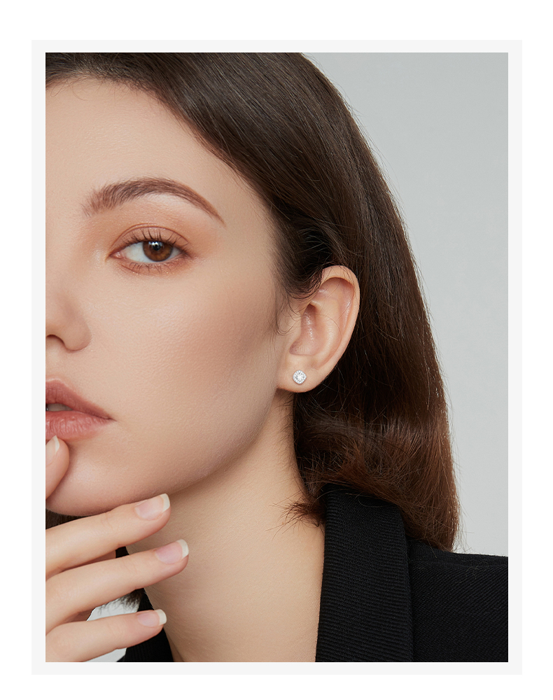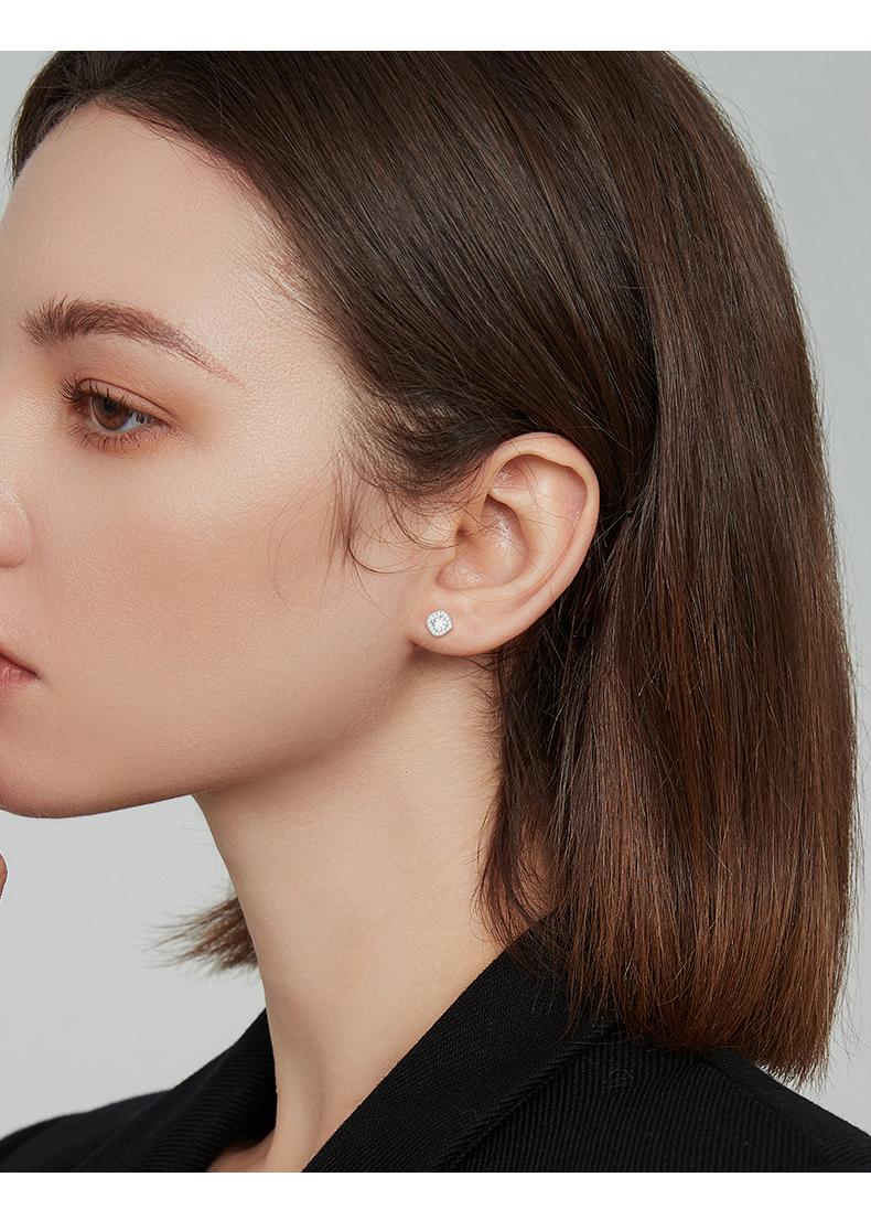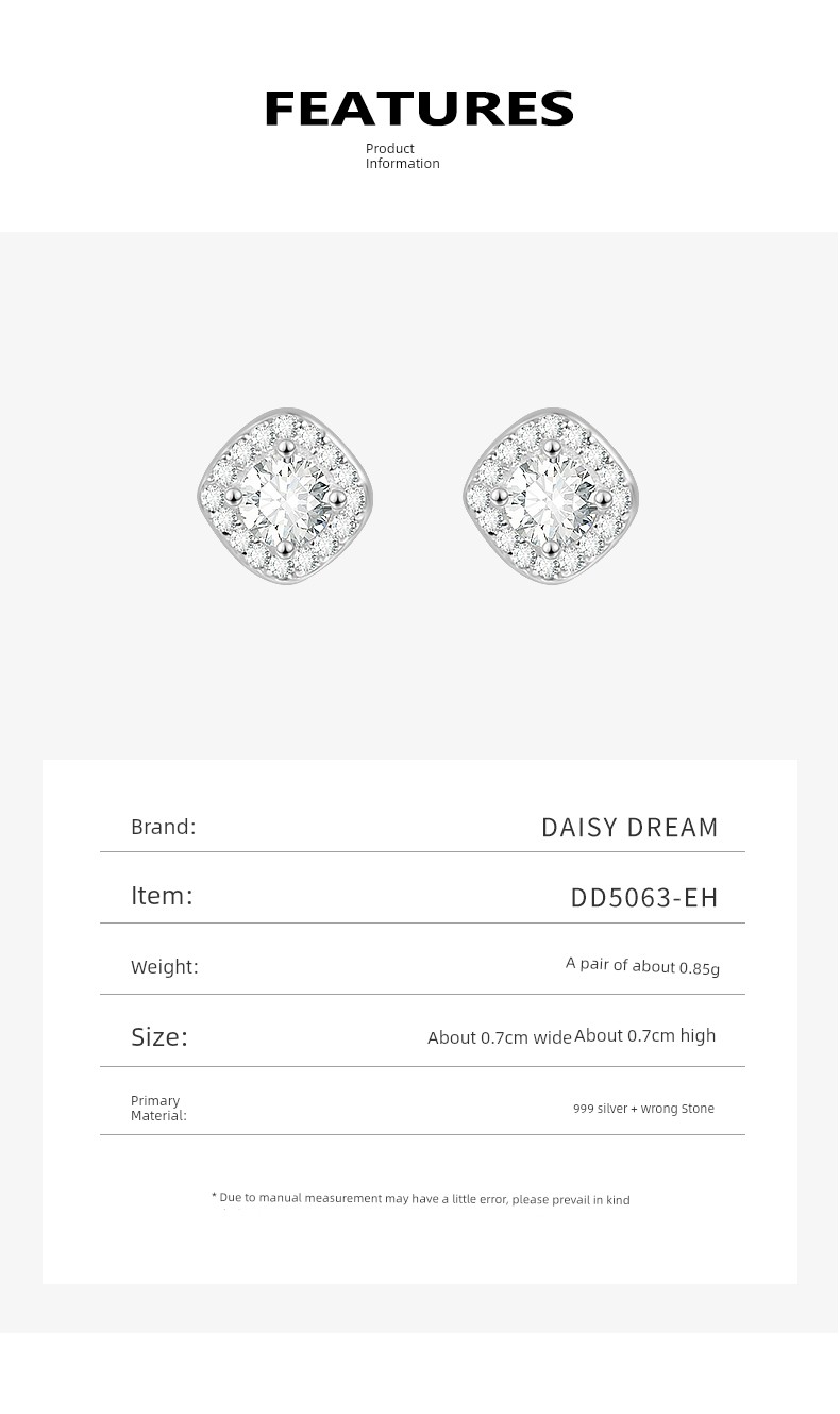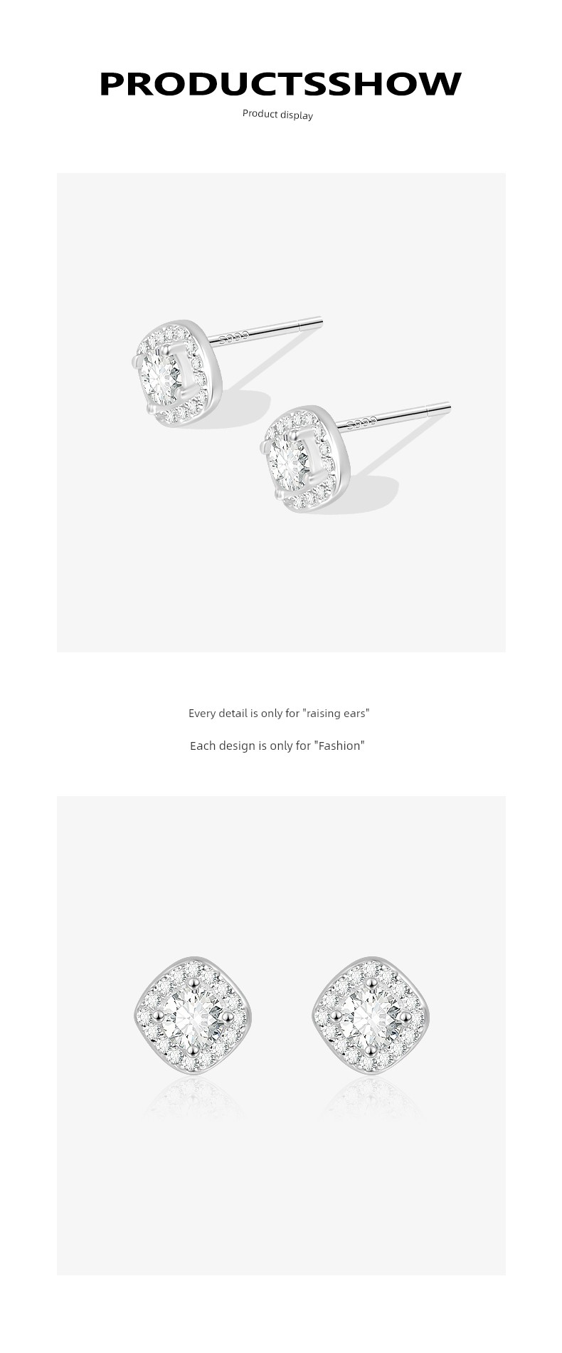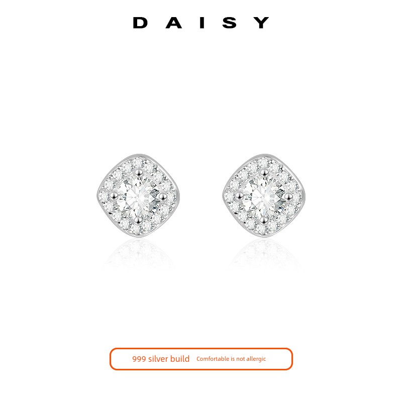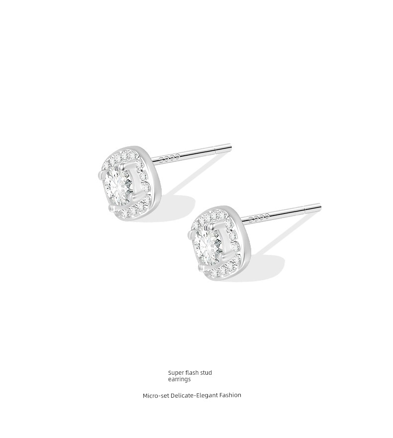 999 Sterling Silver Sparkling Full Rhinestone Stud Earrings for Women Trendy Fancy Elegant New Arrival Stud Earrings Ear-Caring Exquisite Petite Earrings