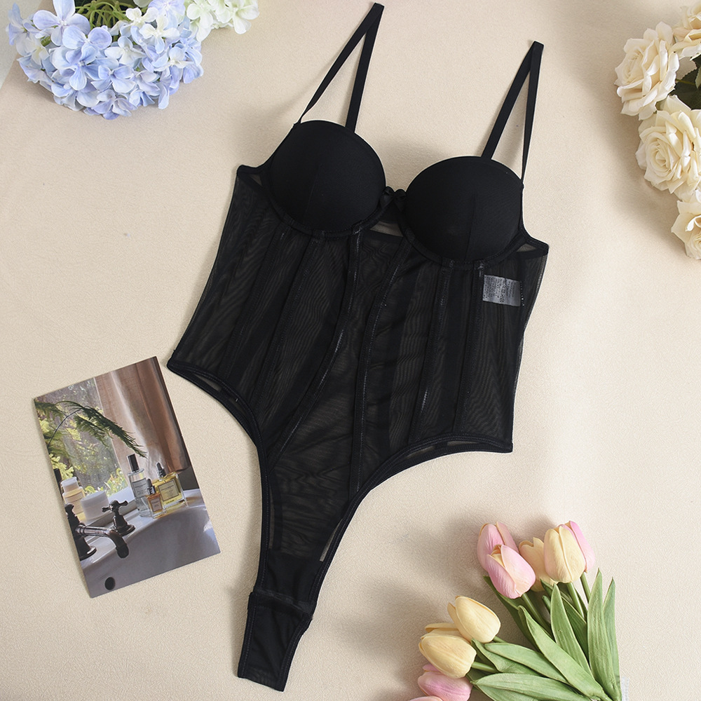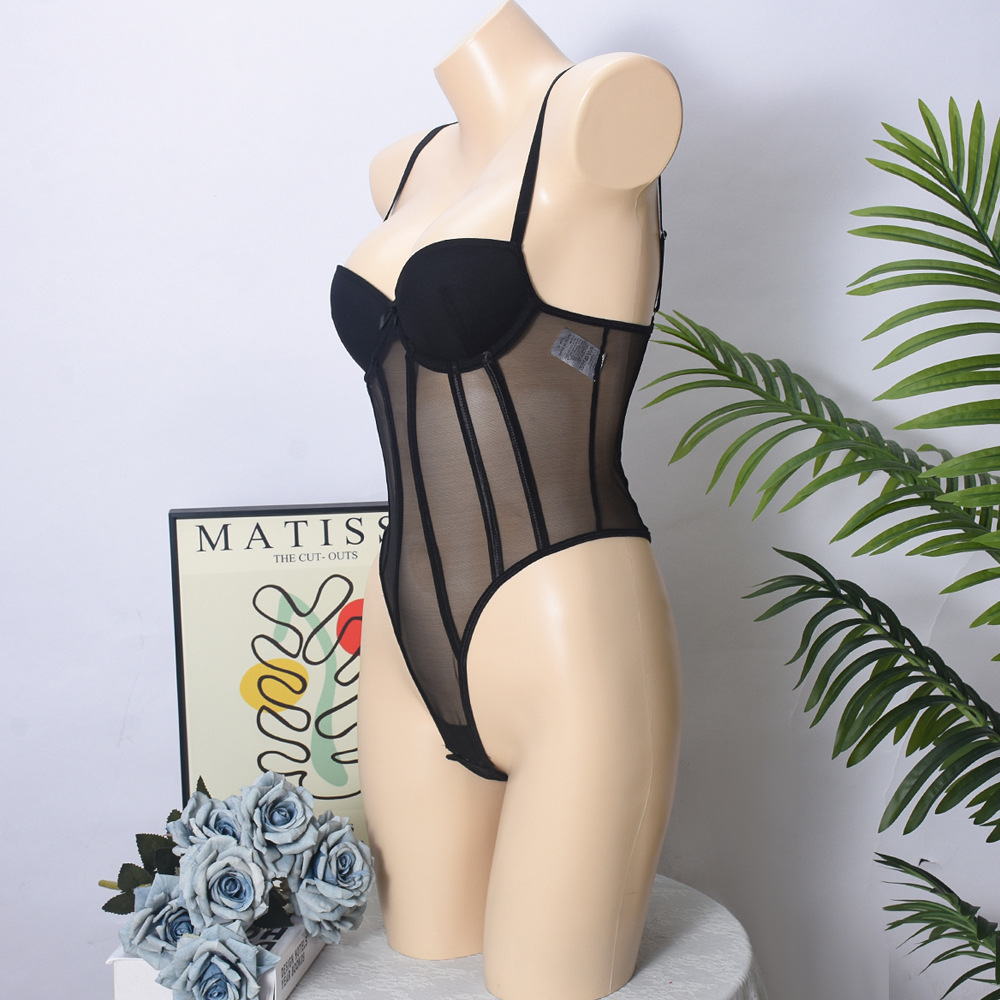 Popular elements: Hollow breasted chest cup steel ring high waist see-through