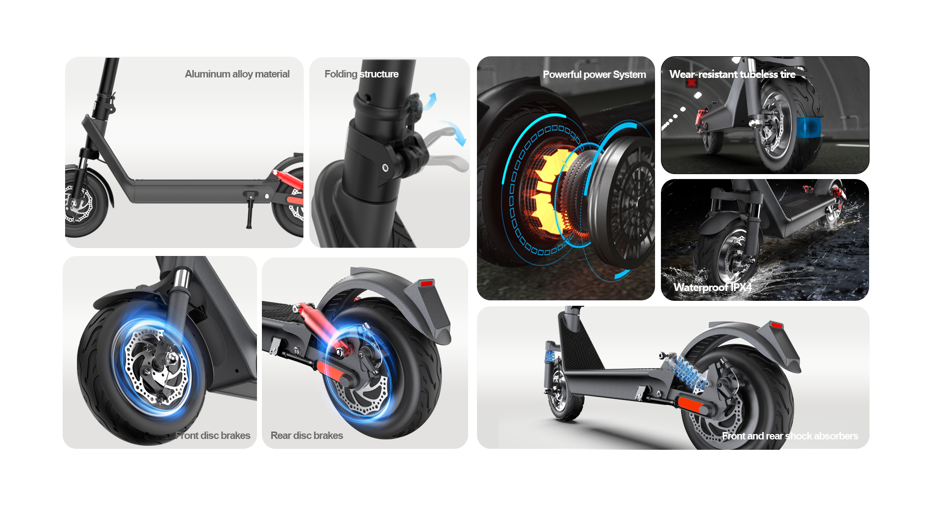 Equipped with wear-resistant tubeless tires and IPX4 waterproof protection, it adapts to diverse daily scenarios (rough paths, light splashes). Plus, front & rear disc brakes provide reliable stopping power, enhancing safety during every ride. Whether navigating city streets or running neighborhood errands, the X9B combines practicality and stability to fit your daily mobility needs.
