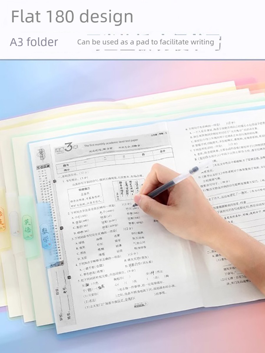 A3 Side Opening Slide Grip Report Cover Fold Rotate Side Opening Pp Large Capacity Test Paper Storage Neutral Storage File Folder