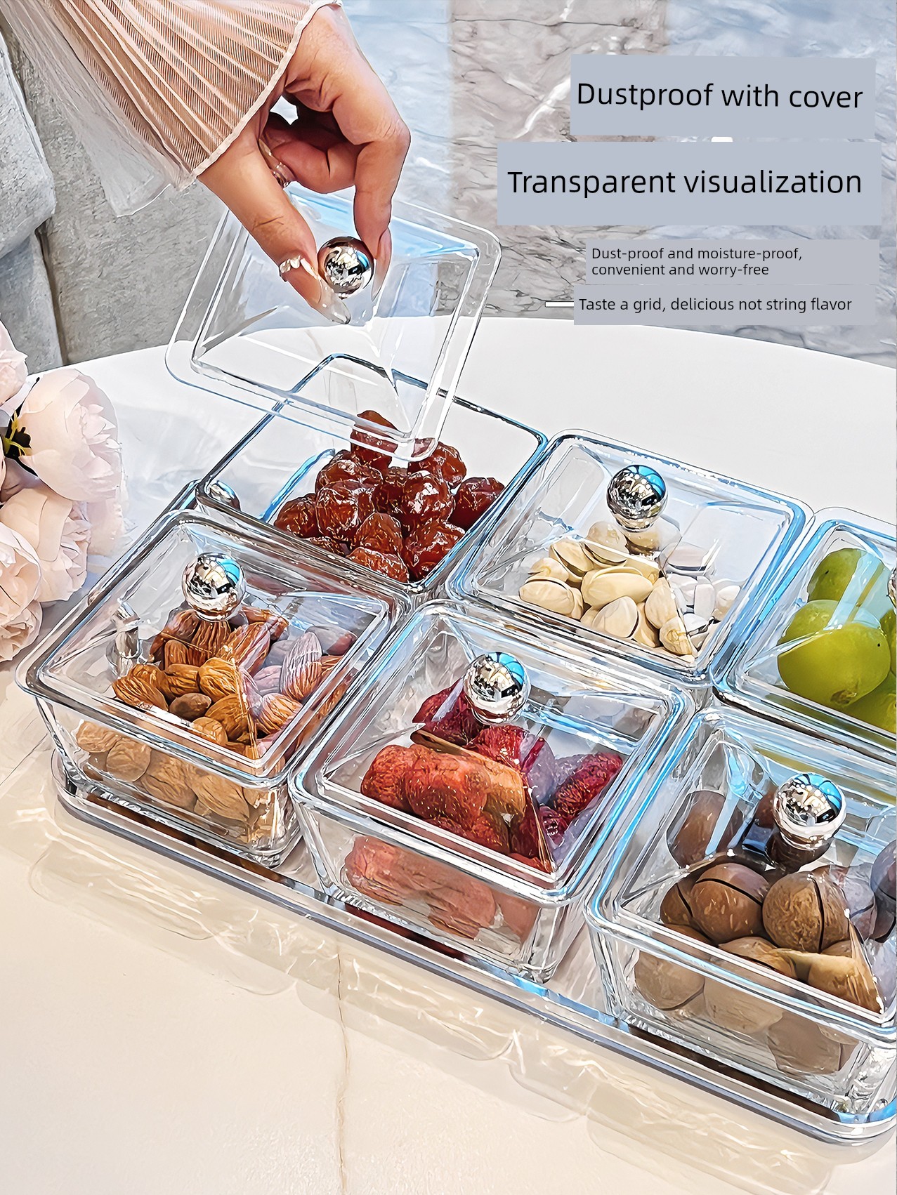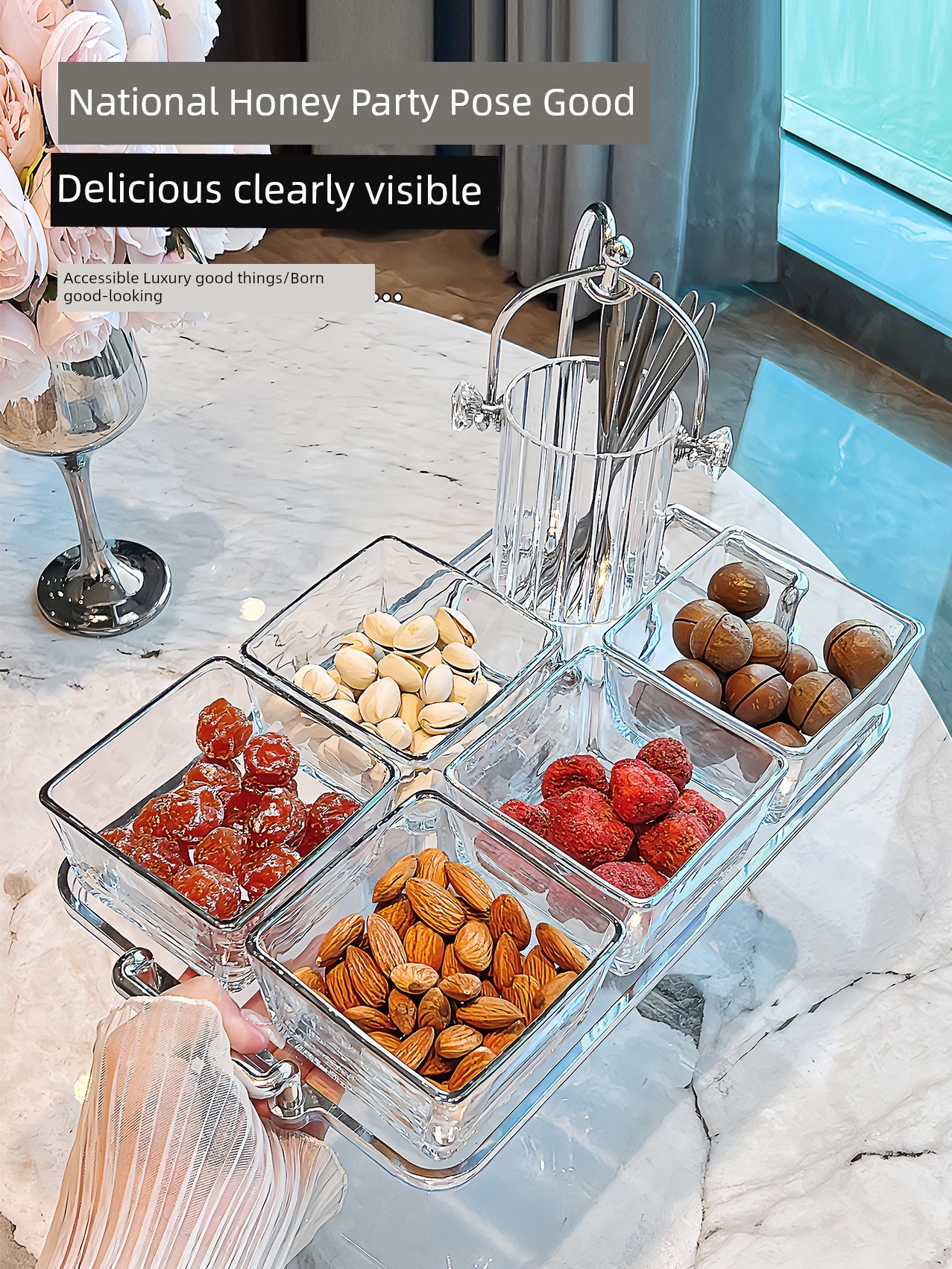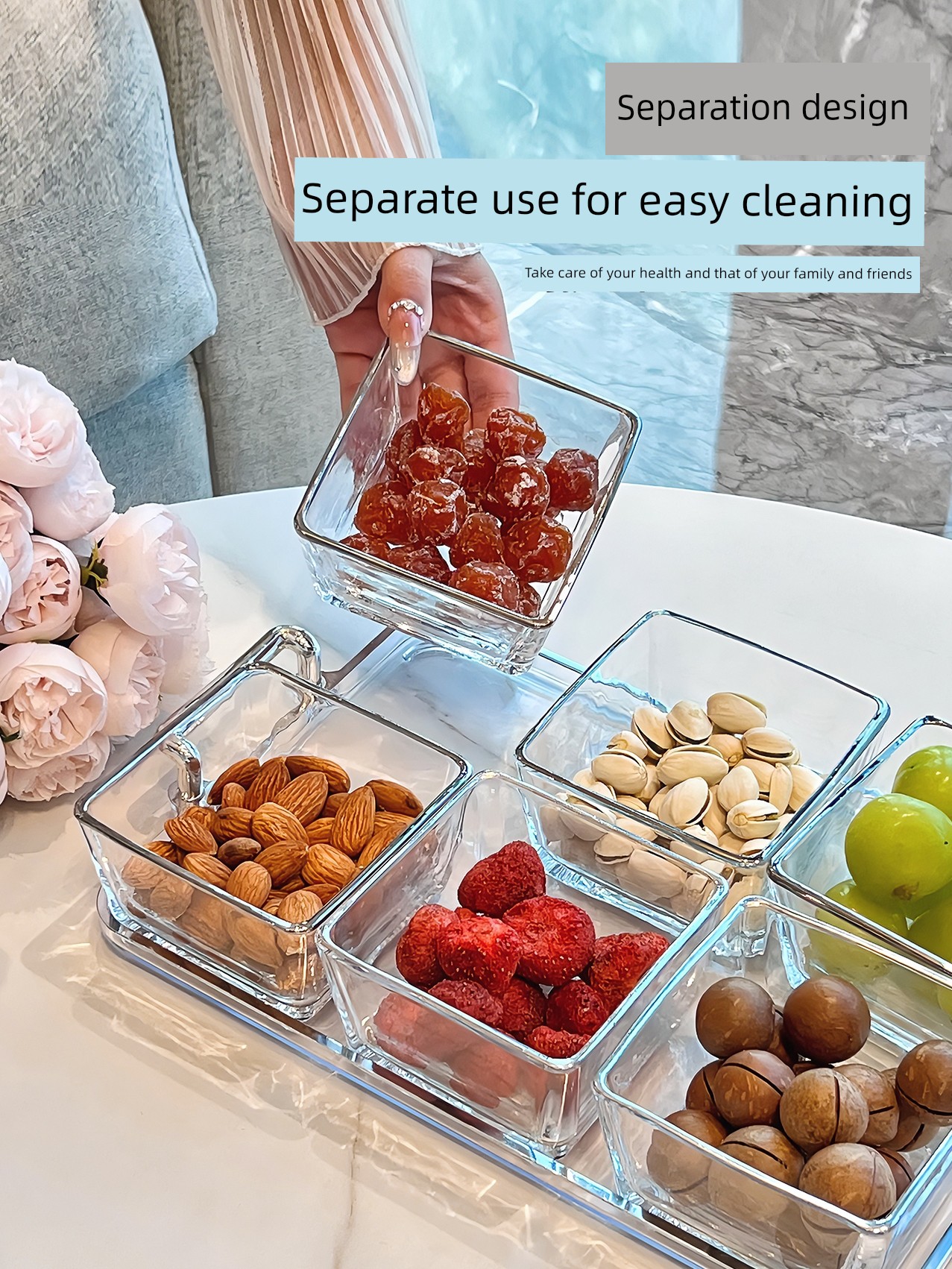 Accessible Luxury Fruit Plate For Home Living Room Coffee Table Snack Display Plate Storage Glass Compartment Fruit Plate Nuts Dried Fruit Tray Candy Plate