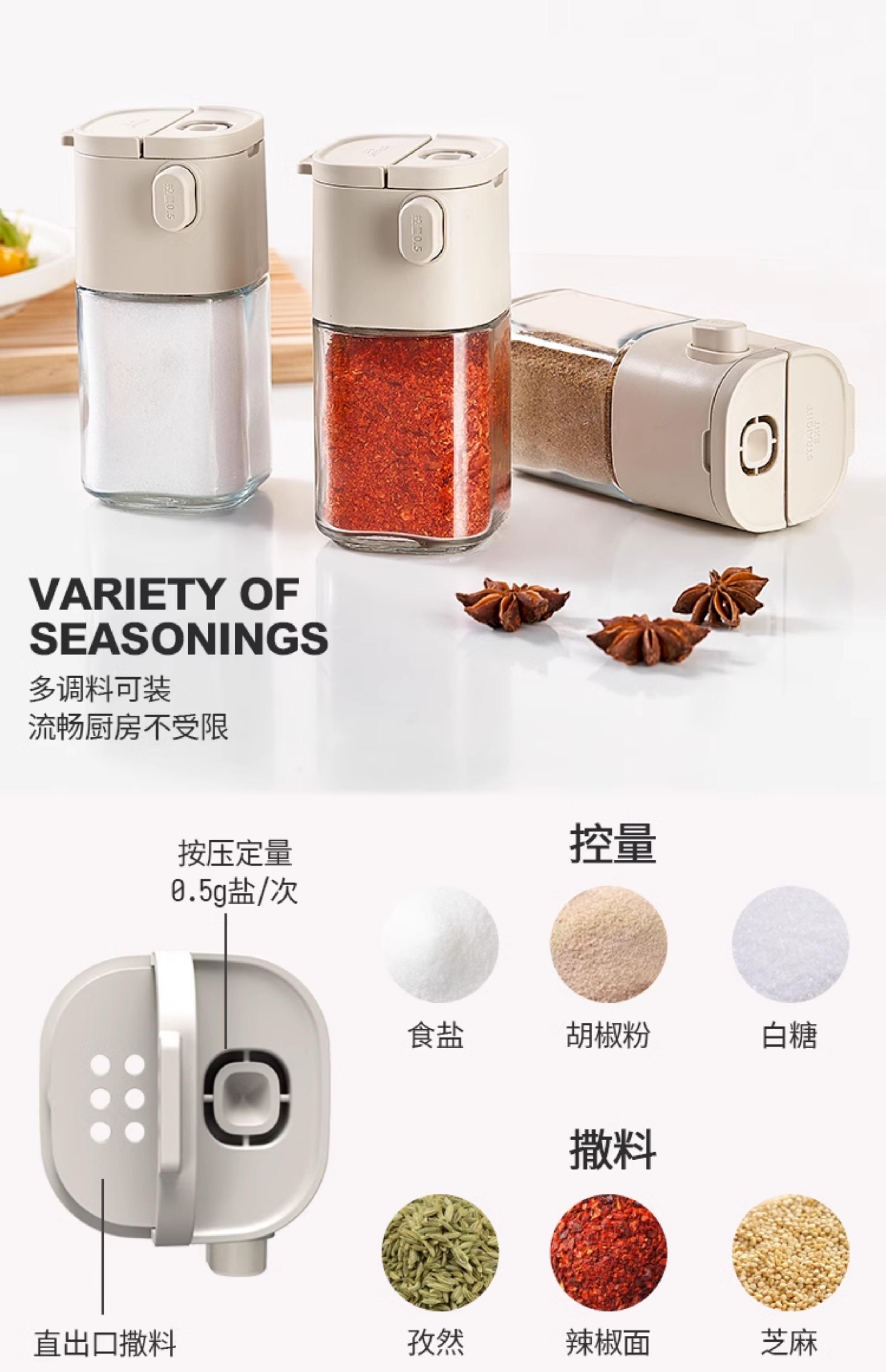 Accessible Luxury Multi-Functional Spice Jar Oil Bottle For Home Kitchen Quantitative Salt Bottle Seasoning Containers Sealed Moisture-Proof Salt Control Storage