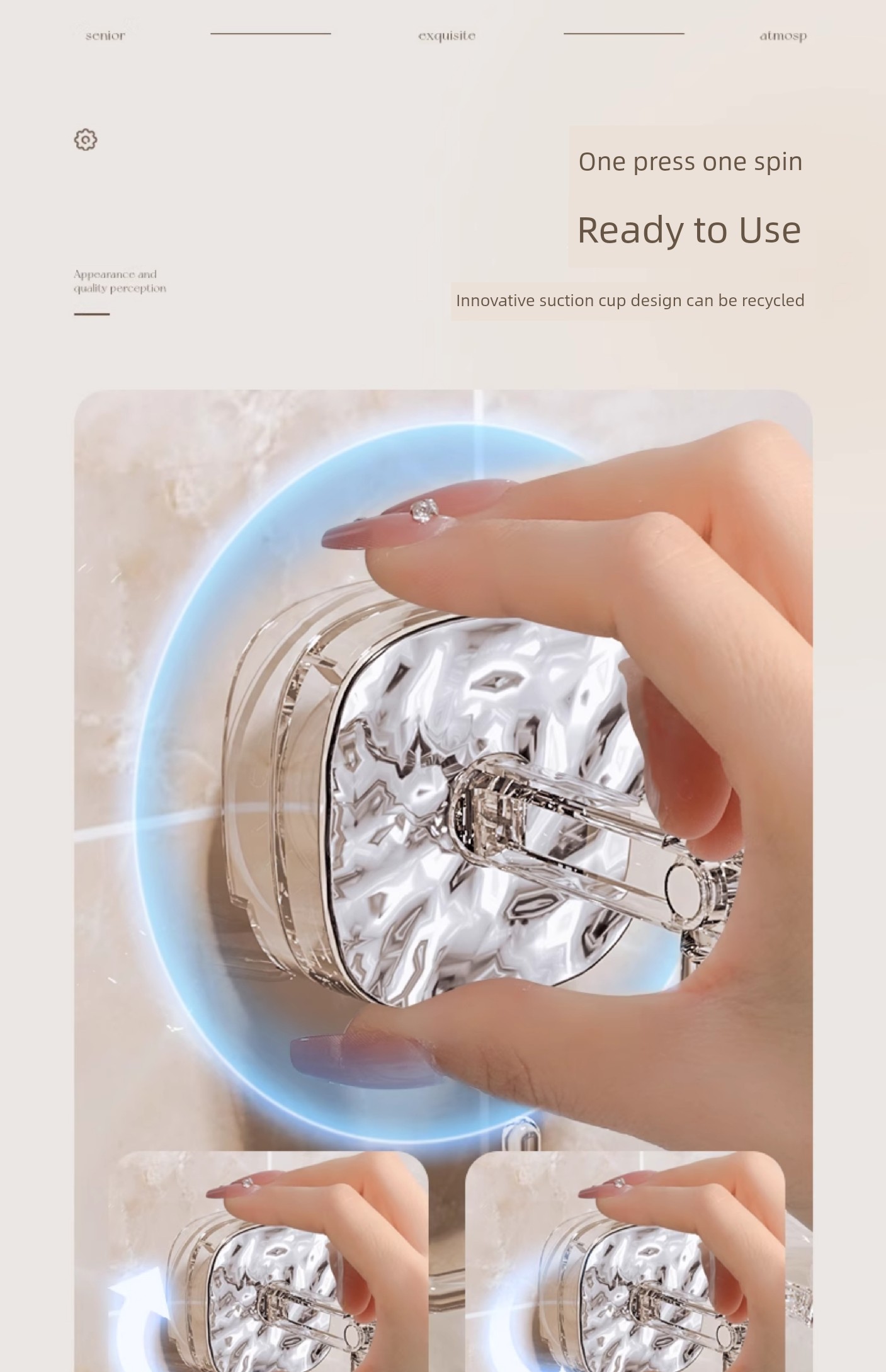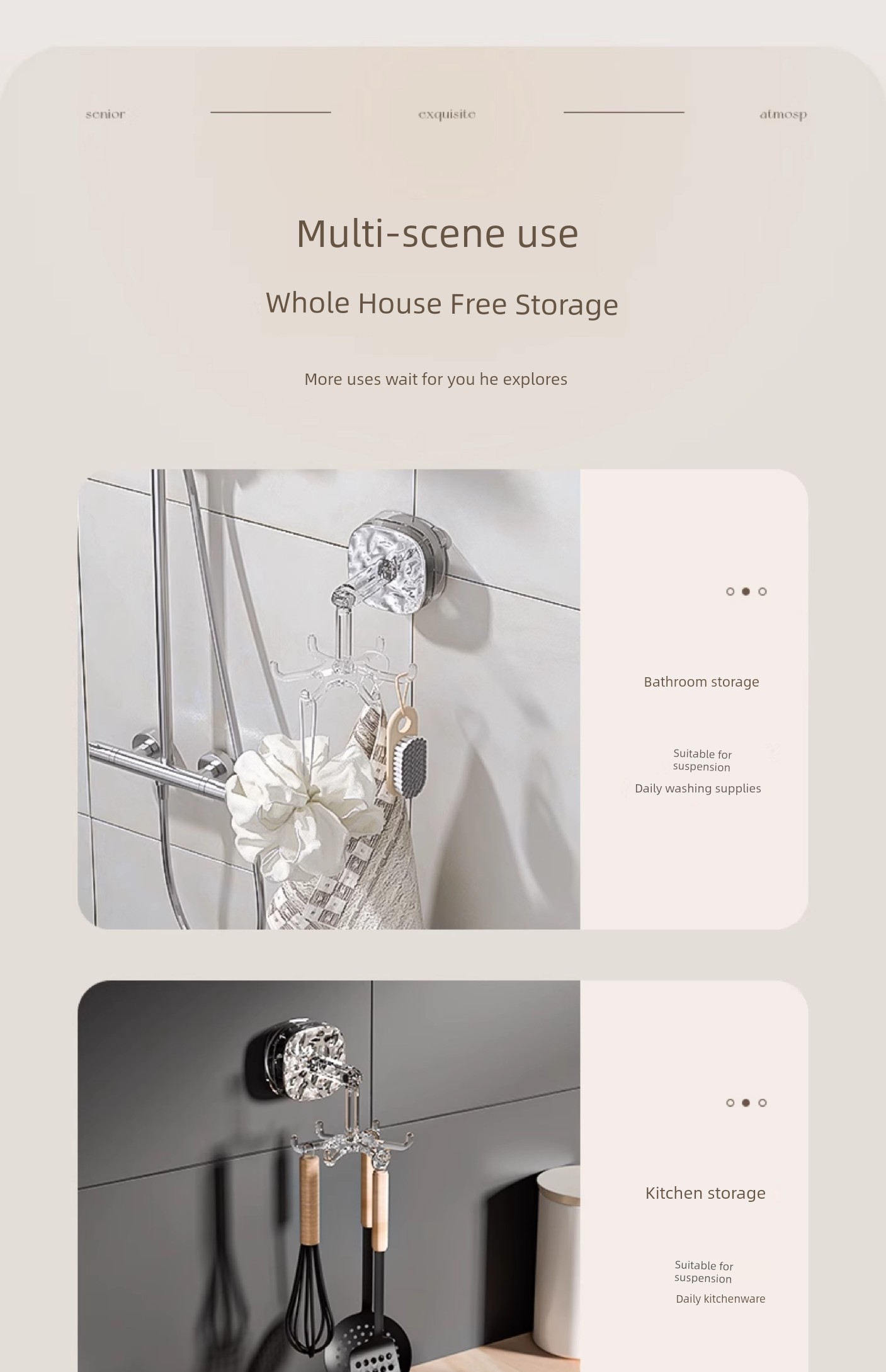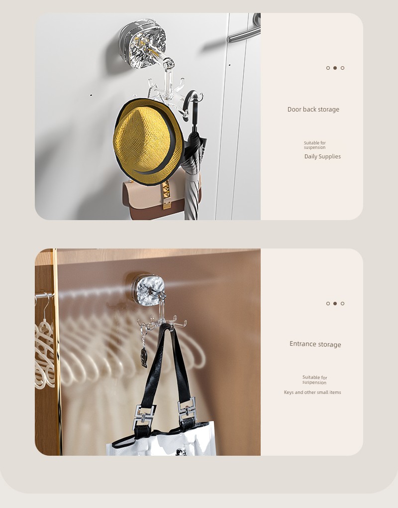 Accessible Luxury Suction Cup Six-Claw Rotating Hook Multi-Functional Punch-Free Strong Seamless Kitchen Bathroom Storage Wall Mount Storage