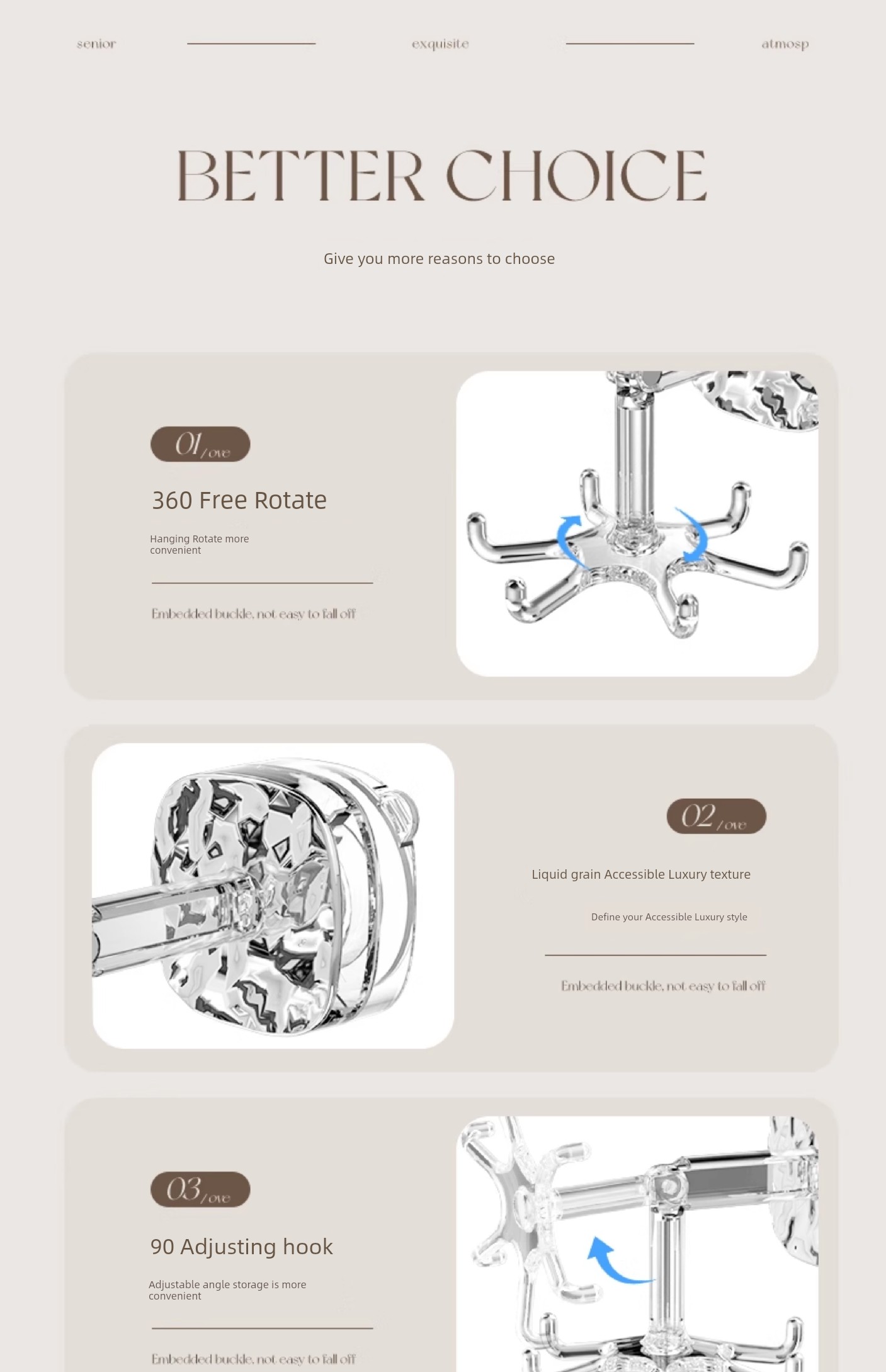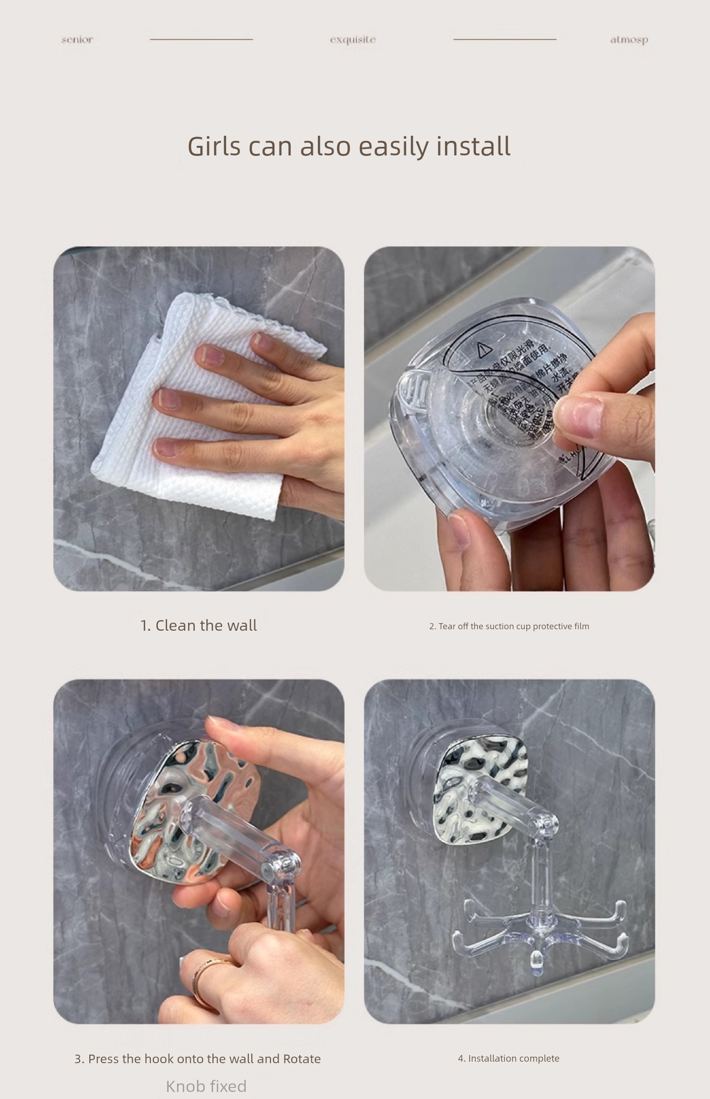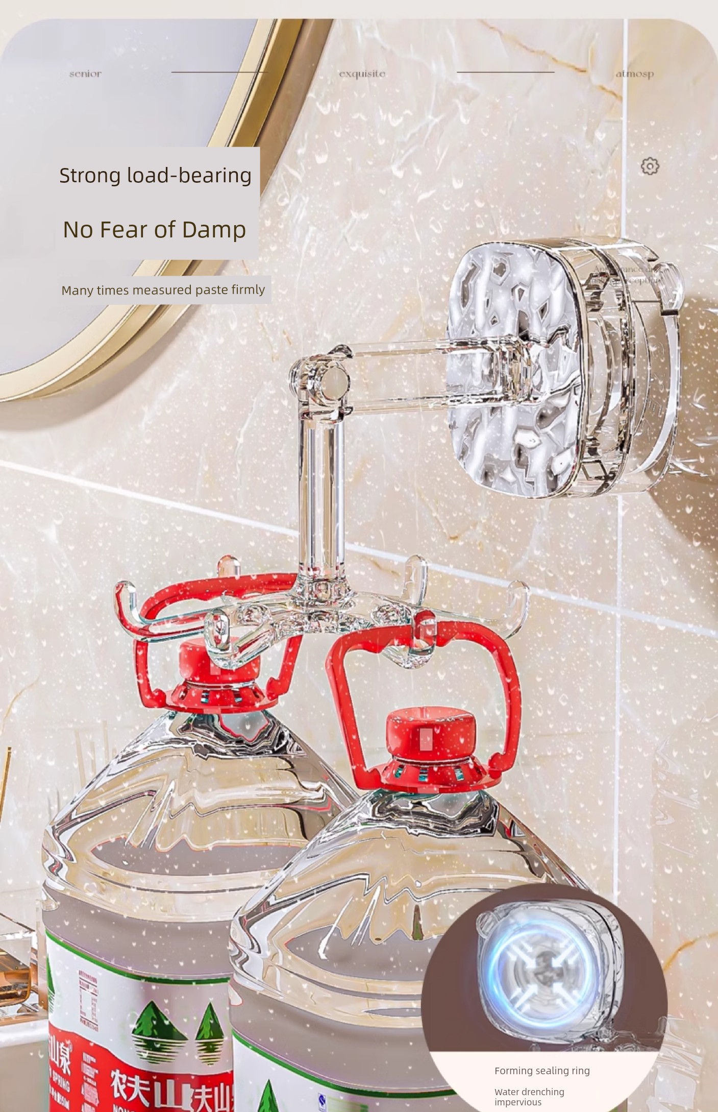 Accessible Luxury Suction Cup Six-Claw Rotating Hook Multi-Functional Punch-Free Strong Seamless Kitchen Bathroom Storage Wall Mount Storage