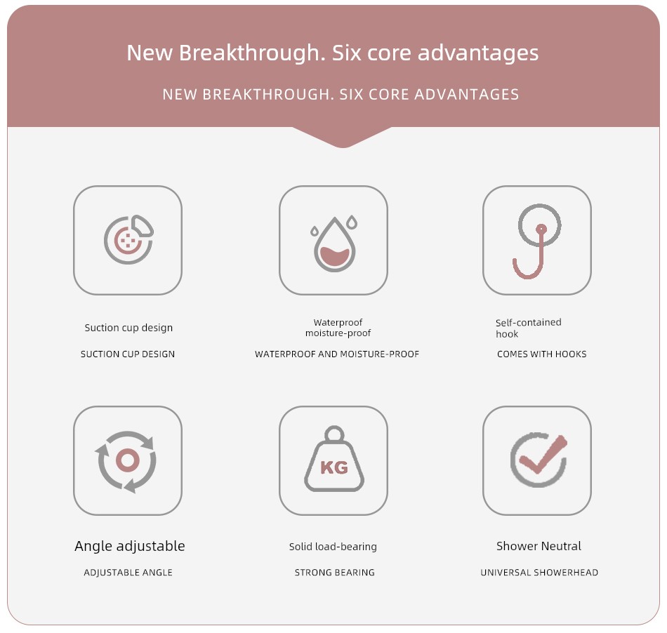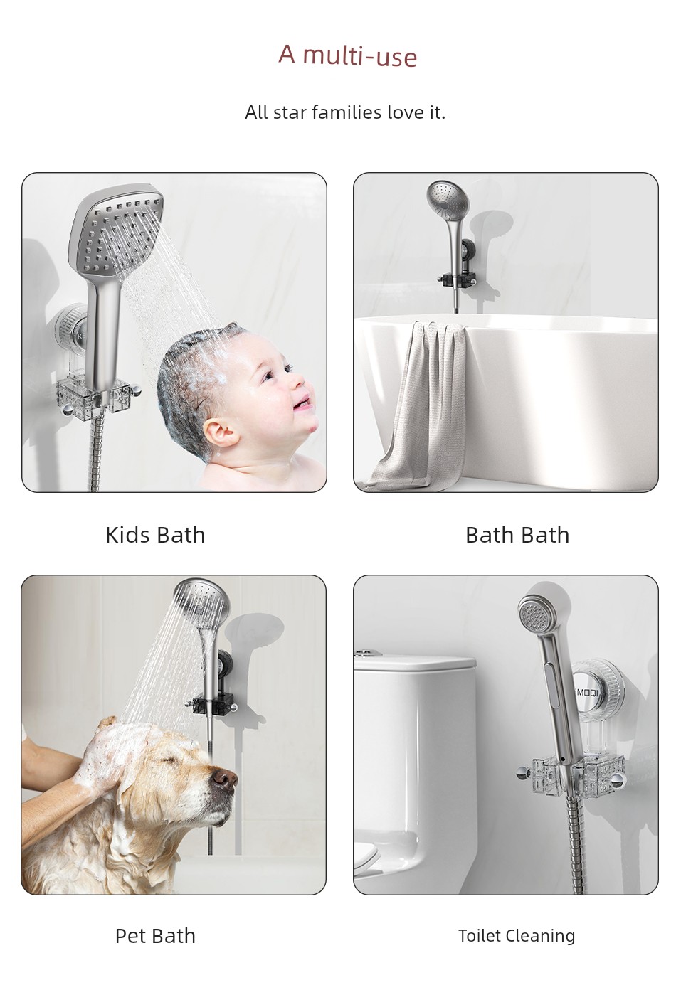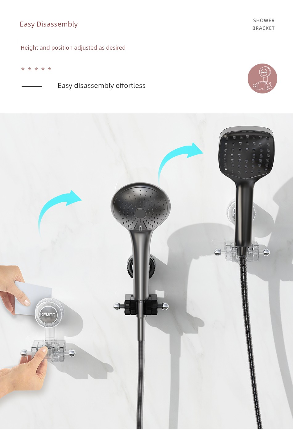 Accessible Luxury Transparent Suction Cup Shower Bracket For Home Toilet Punch-Free Shower Holder Movable Shower Base