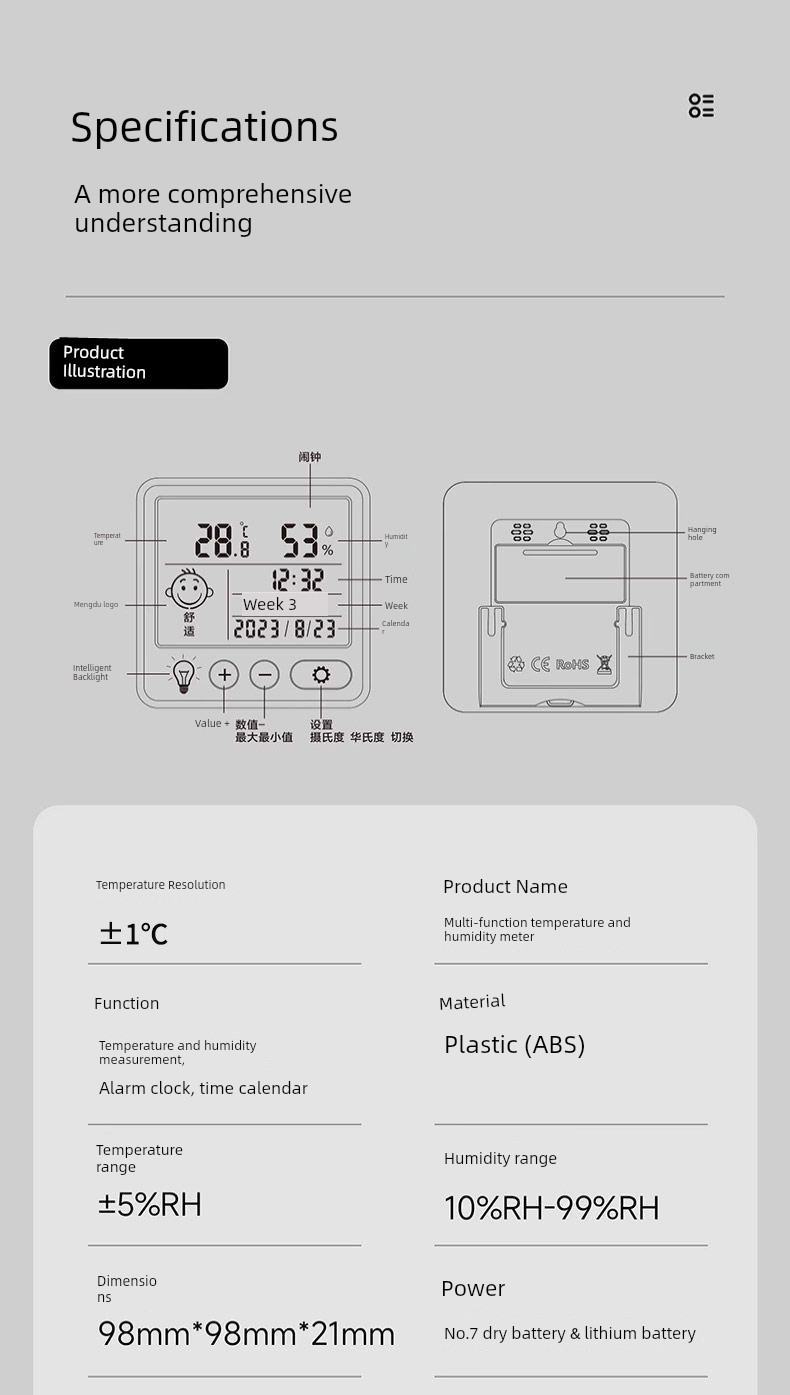Accurate Digital Thermometer Desktop Phone Holder Electronic Hygrometer Alarm Clock Maternal and Child For Home Temperature and Humidity