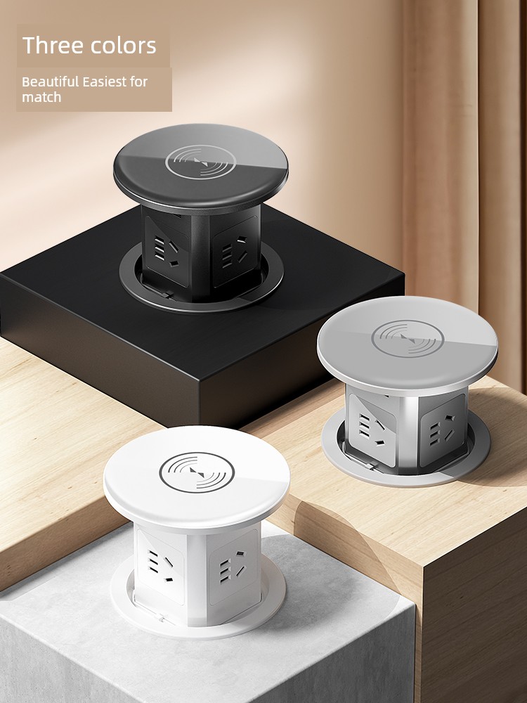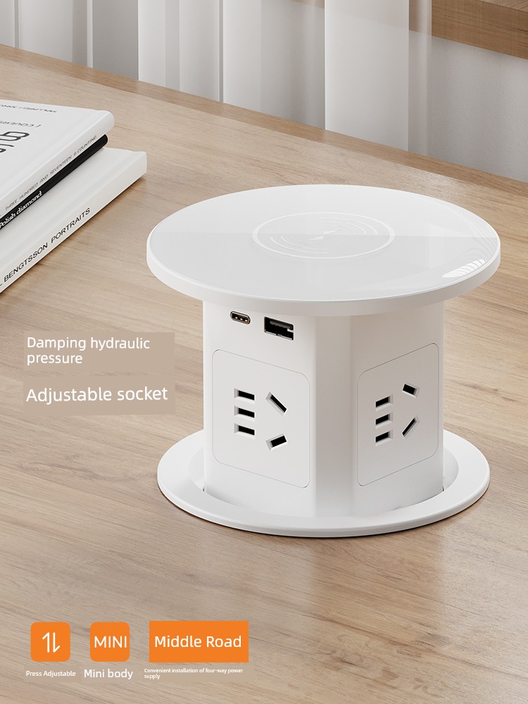 Adjustable Kitchen Socket Table Hole Countertop Cabinet Embedded Hidden Island Table Surface with USB Invisible Row Plug Board