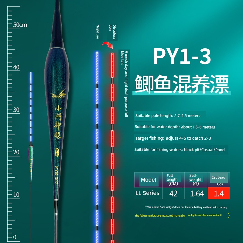 All Blue Tail Bite Hook Color Changing Crucian Carp Luminous Float