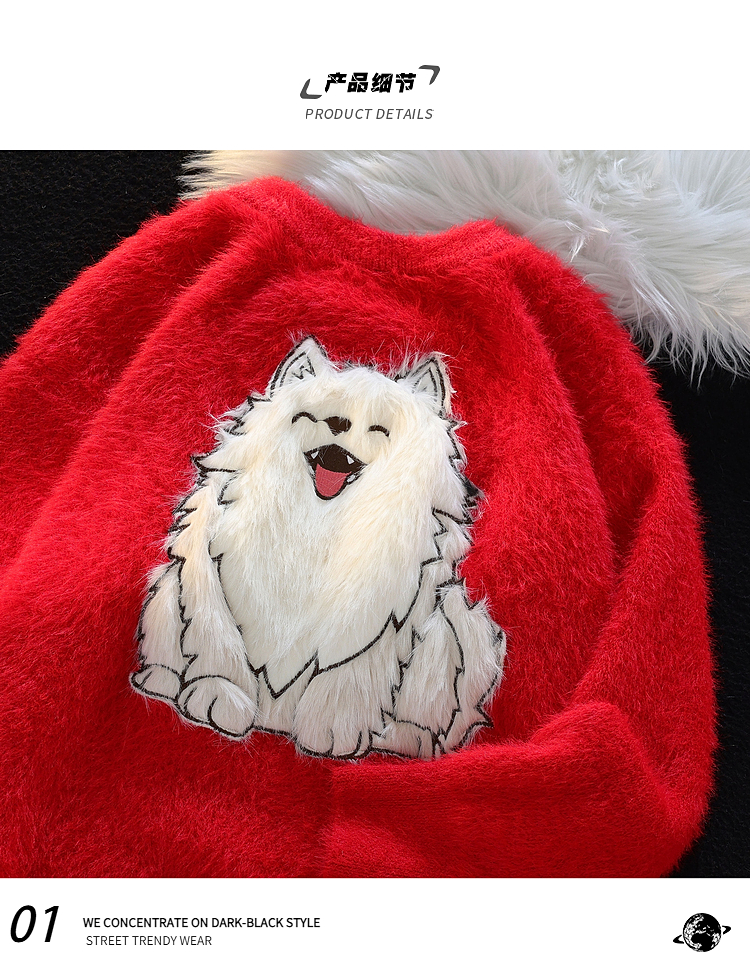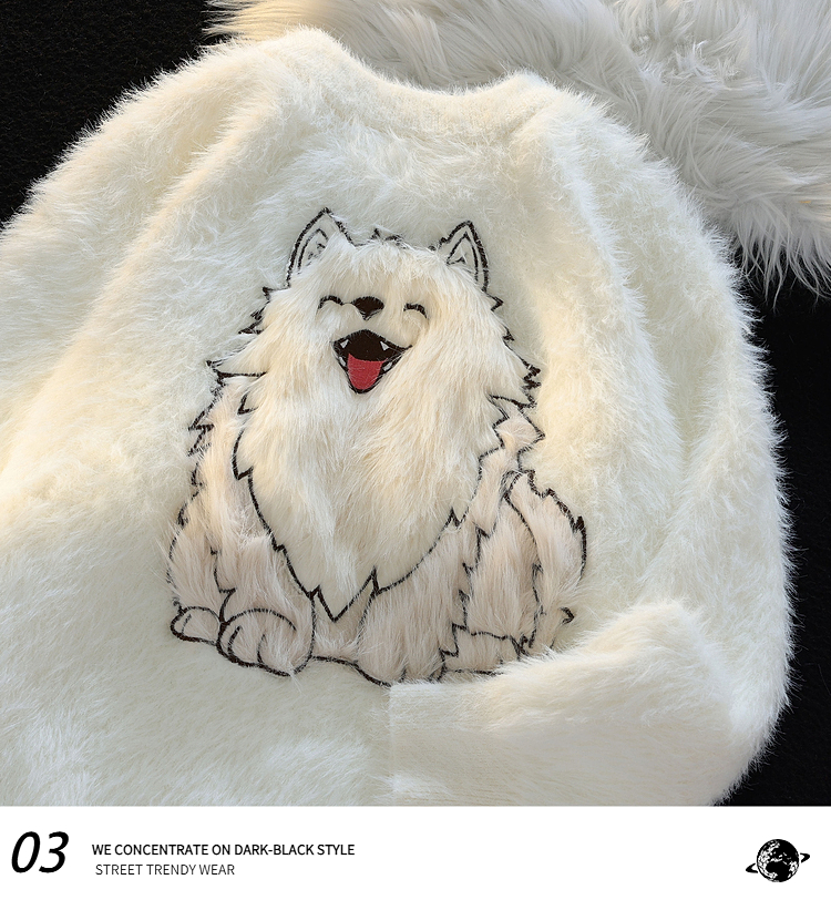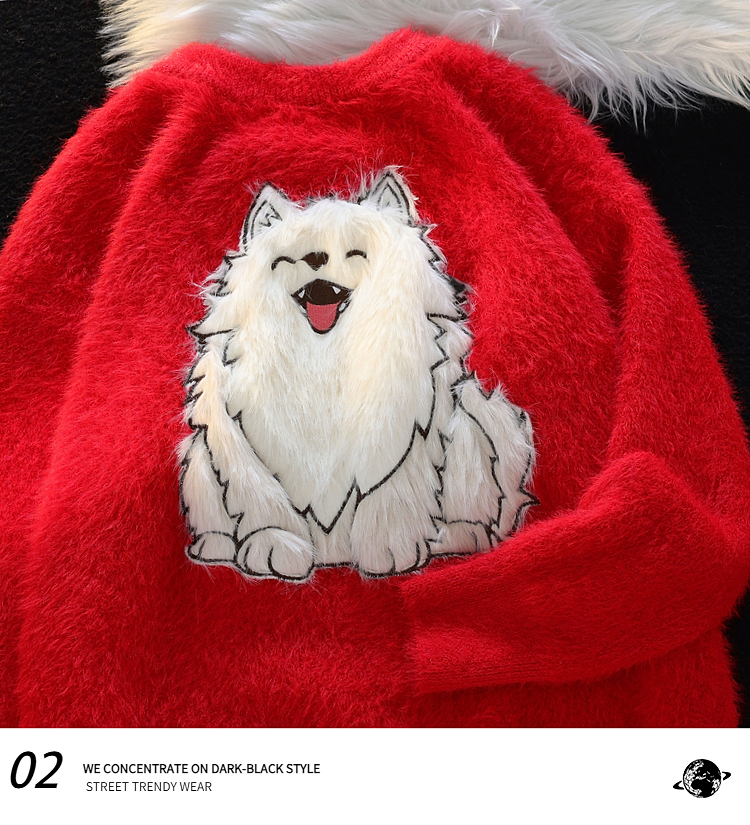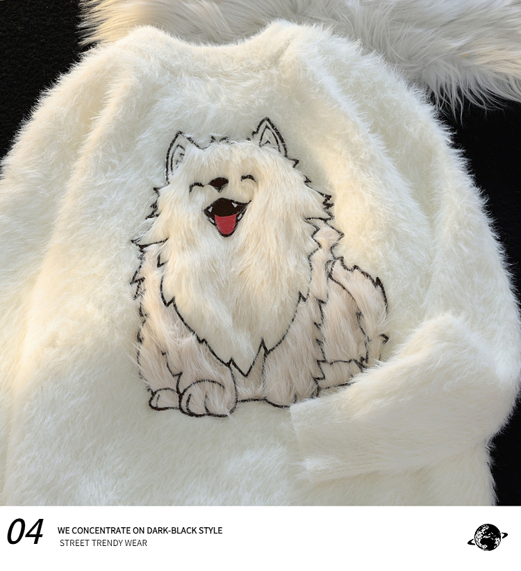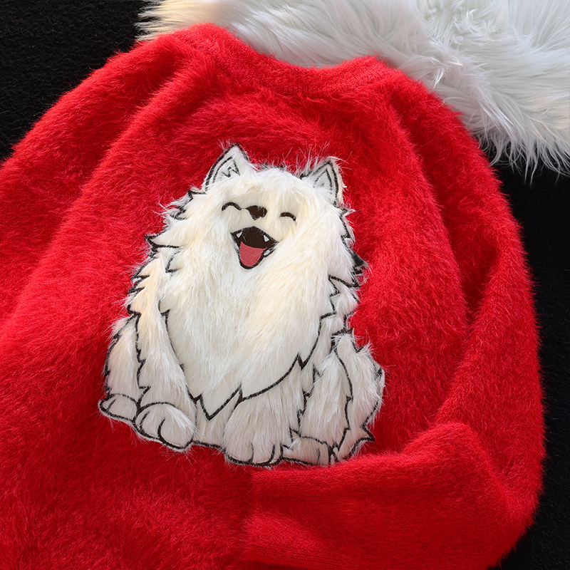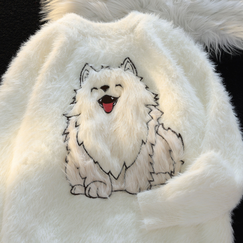 American Cartoon Puppy Soft Glutinous Mohair Sweater Female Winter New Arrival Loose Easiest for Match Couple Clothes Knitwear Tops