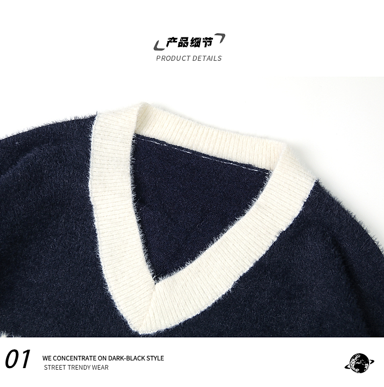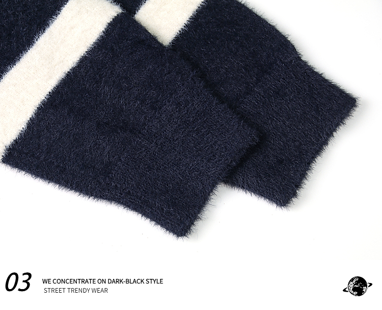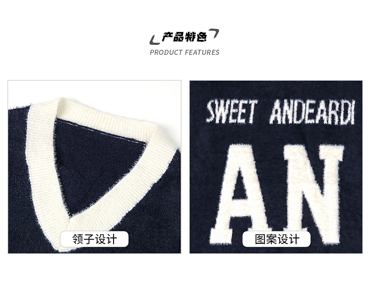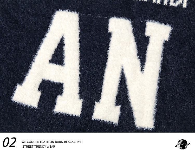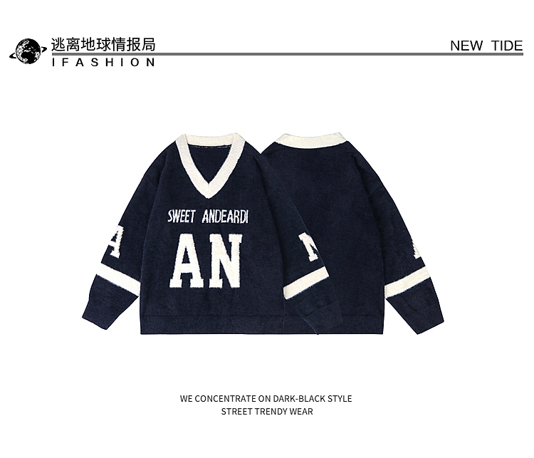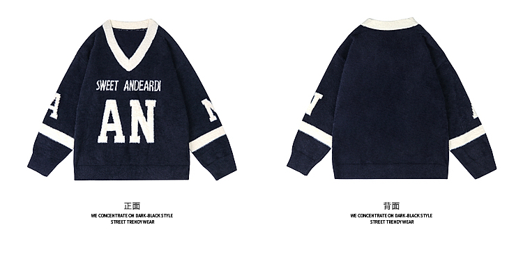 American Contrast Color Letter Jacquard Mohair Sweater Female Winter Comfortable Loose Lovers Wild V-neck Sweater