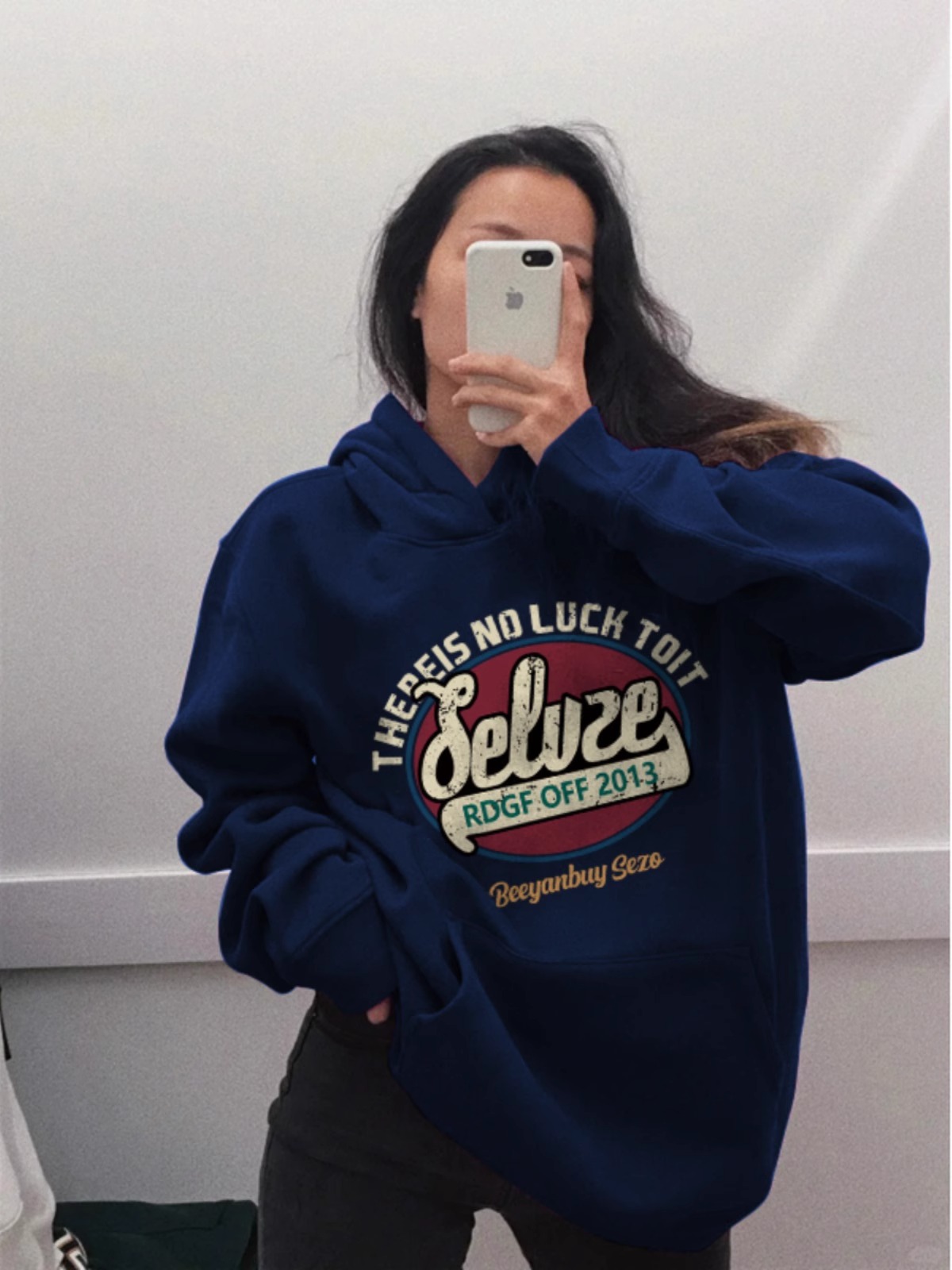 American Fashion Brand Dark Blue Hoodie Women Spring and Autumn New Popular European and American High Street Original Lazy Women's Outerwear Top