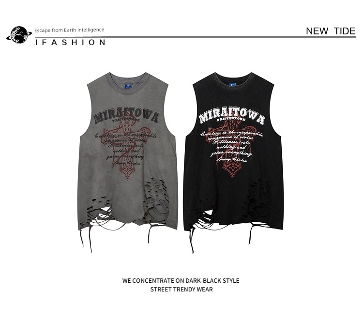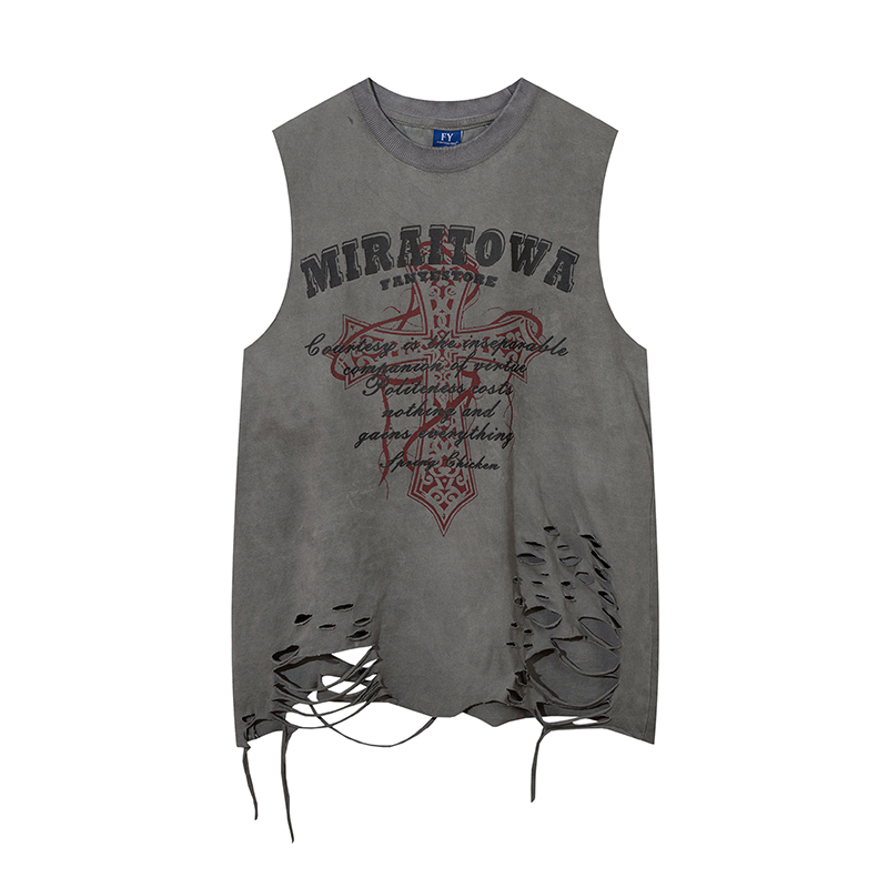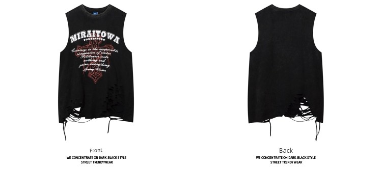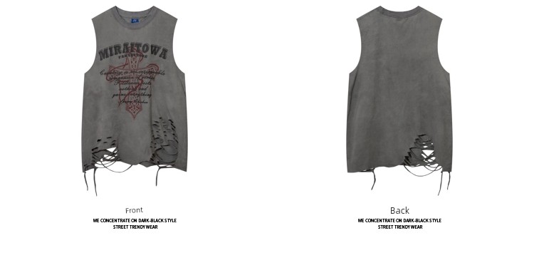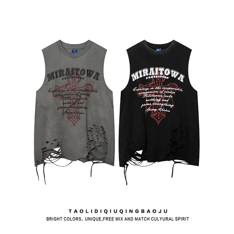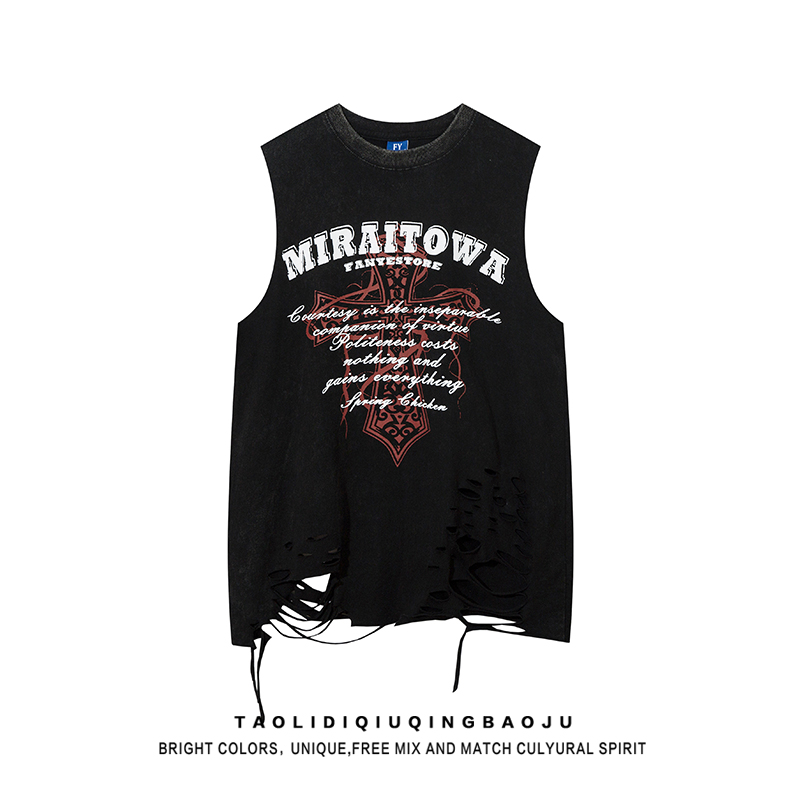 American Fashion Brand Stylish Ripped Vest T-shirt Female Summer Loose Hip Hop Casual Niche Style Sleeveless Waistcoat Tops