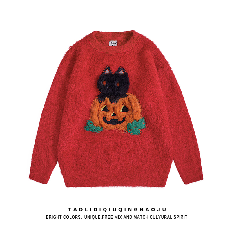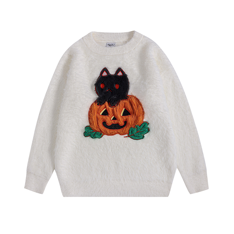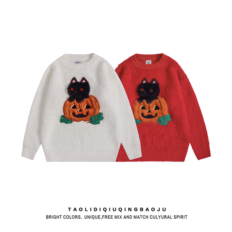 American Fun Kitten Flocking round Neck Sweater Female 2025 New Arrival Loose and Idle Soft Glutinous Mohair Knitwear Winter