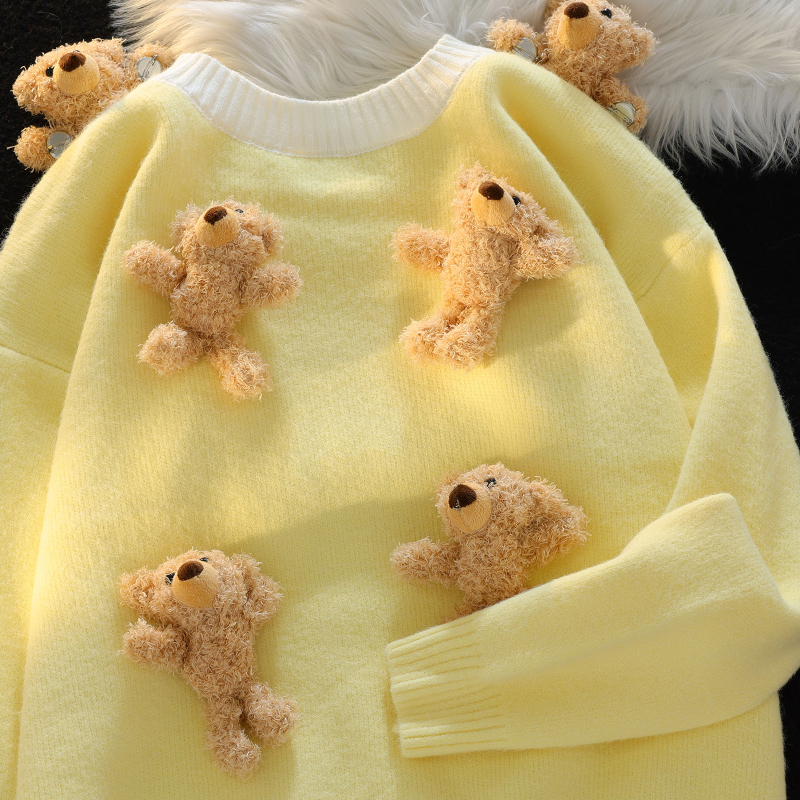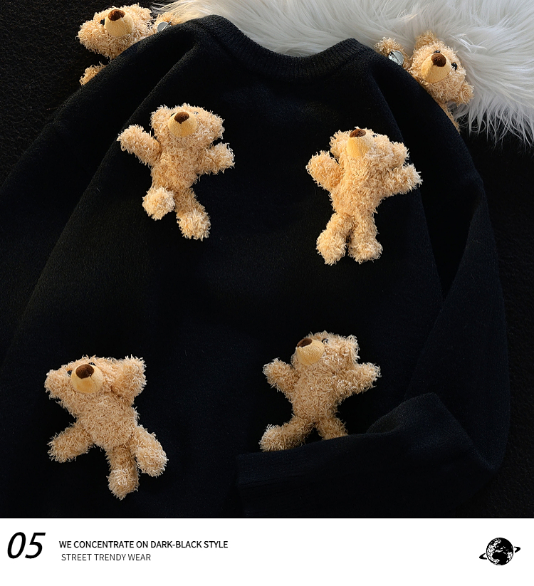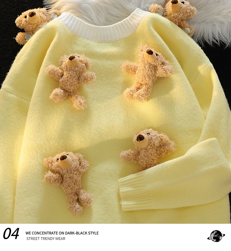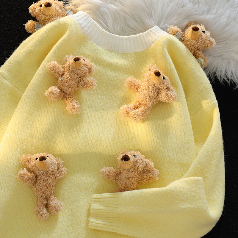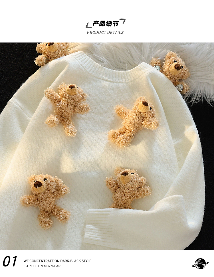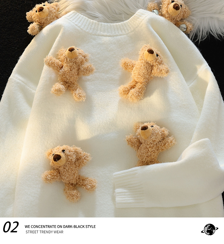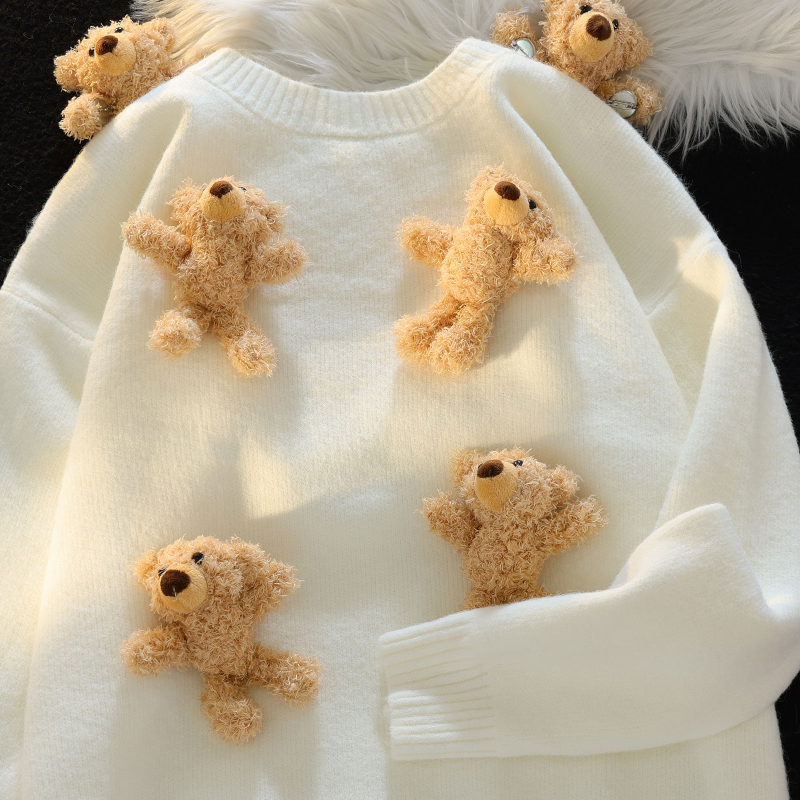 American Fun Three-Dimensional Stuffed Bear round Neck Sweater Women's 2025 New Arrival Casual Laid-Back Style Knitwear Tops