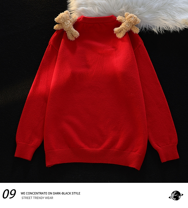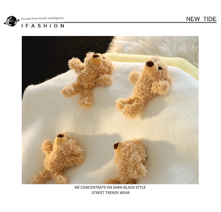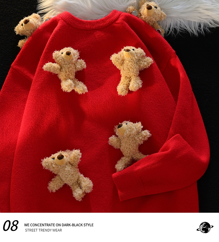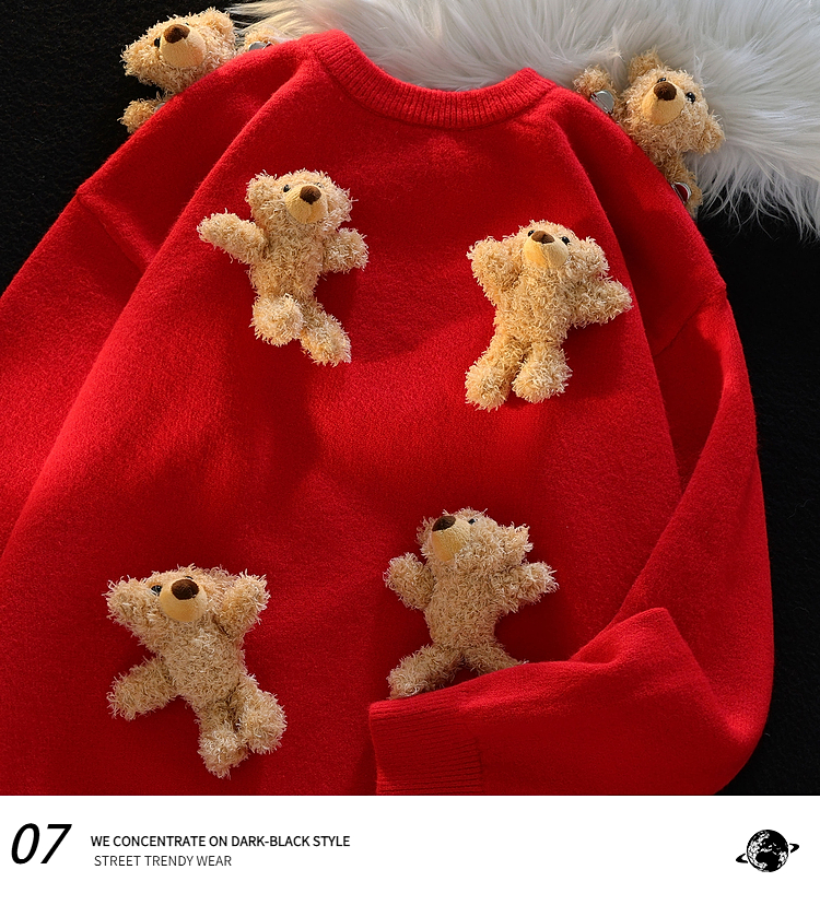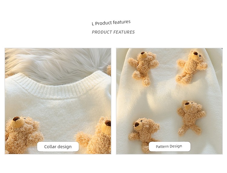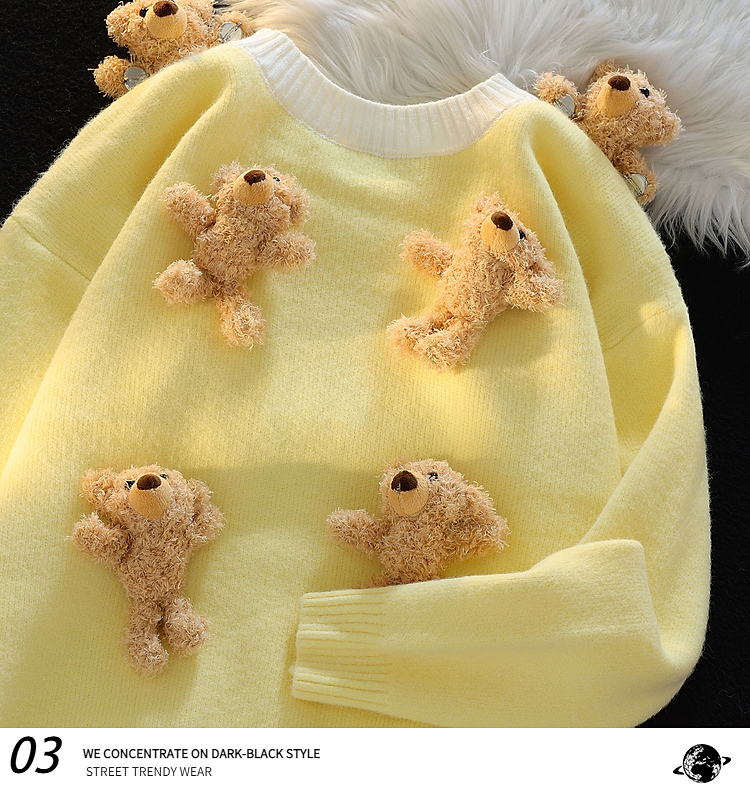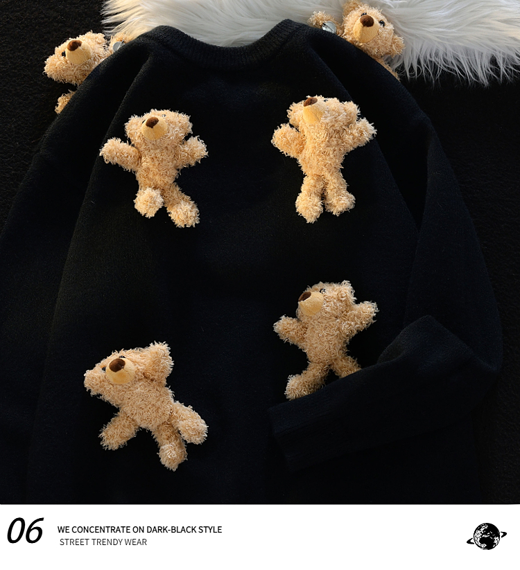 American Fun Three-Dimensional Stuffed Bear round Neck Sweater Women's 2025 New Arrival Casual Laid-Back Style Knitwear Tops