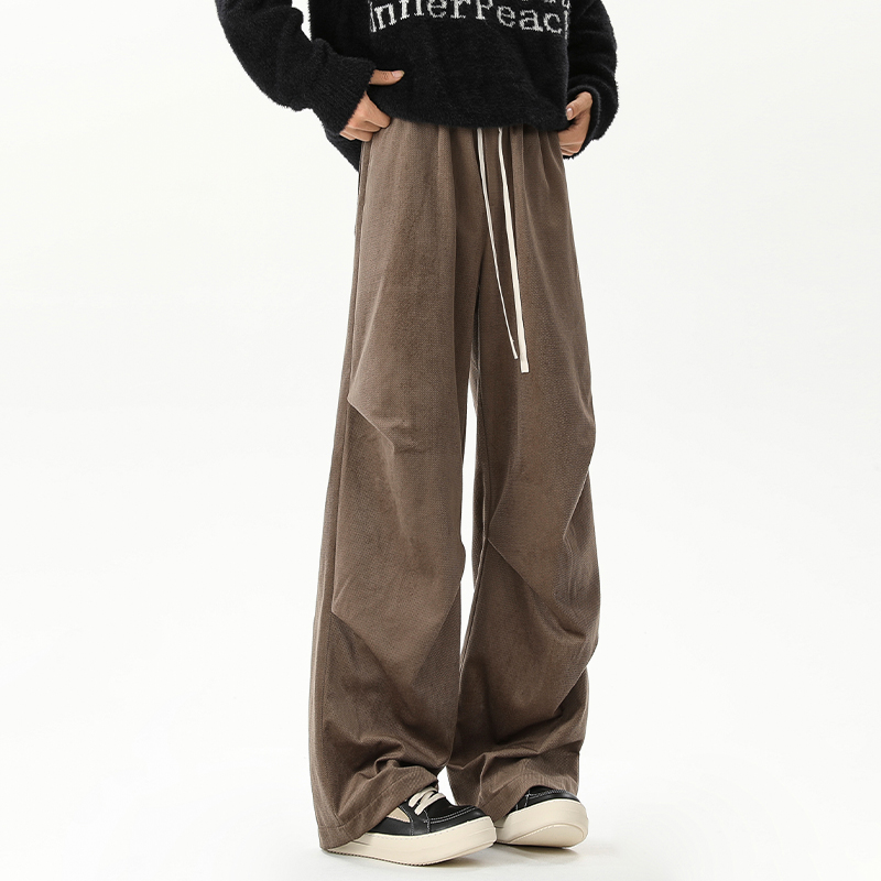 American High Street Cleanfit Ruched Paratrooper Pants Female Autumn Fashion Brand Loose Wide Leg Fleece-lined Black Casual Pants