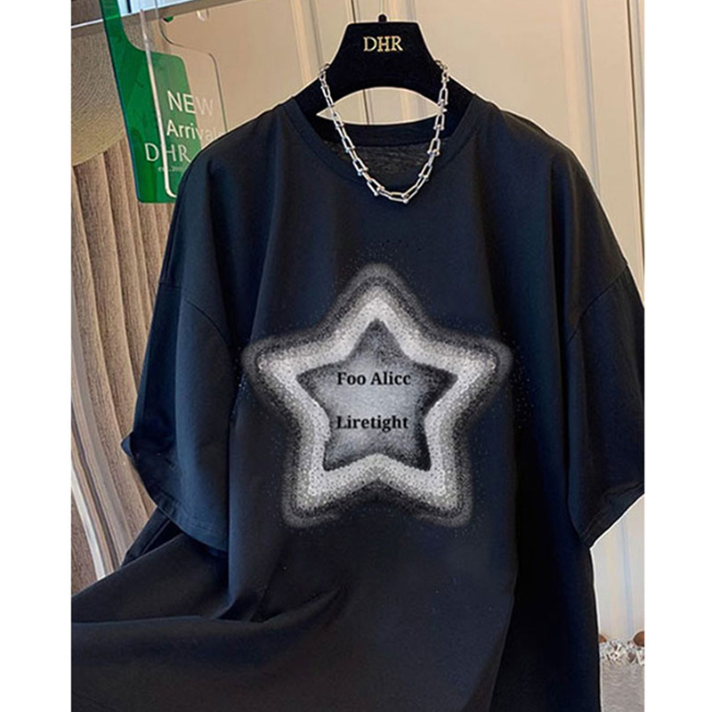 American High Street Plus Size 100.00kg Cotton Fashion Brand Five-Pointed Star T-shirt Men and Women Couple Hip Hop round Neck Short Sleeve Tops Summer