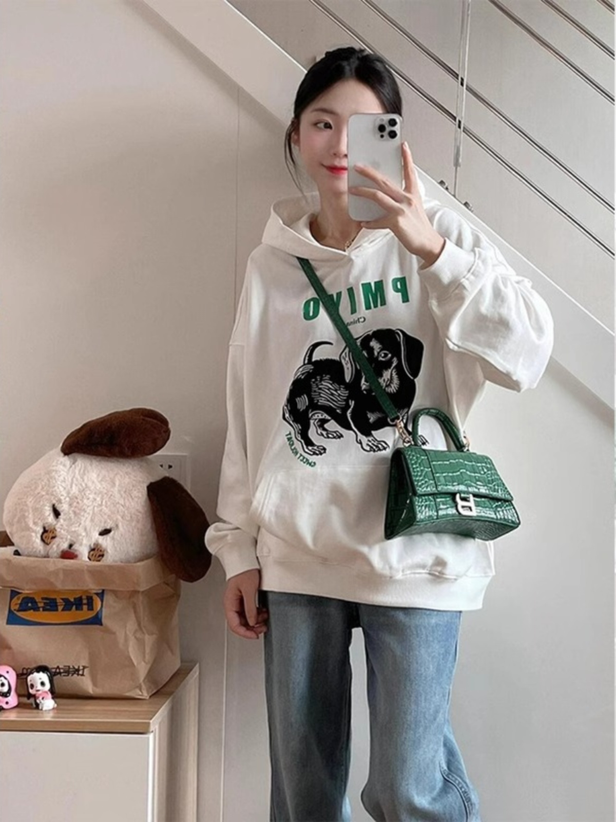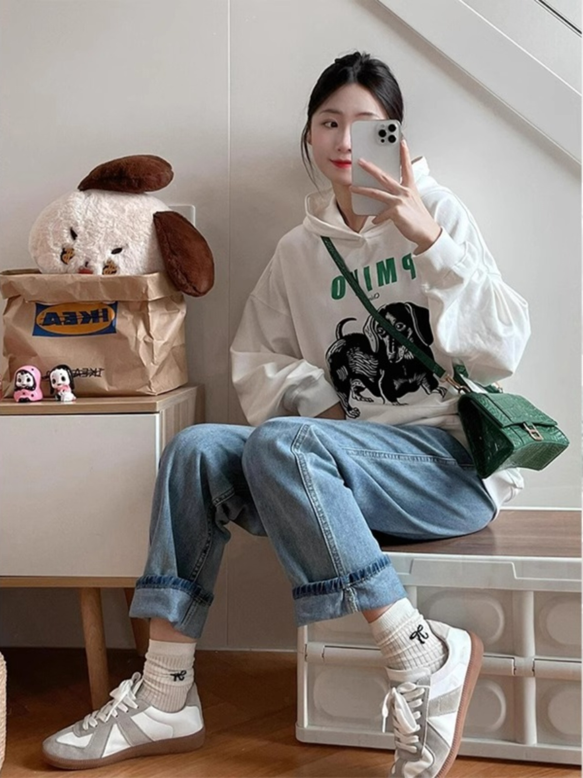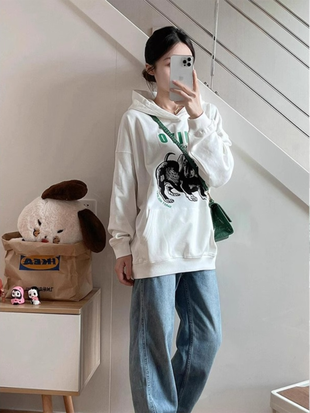 American High Street Retro White Hoodie Coat Women Spring Autumn Oversize Heavy Weight Trendy Hoodies Tops