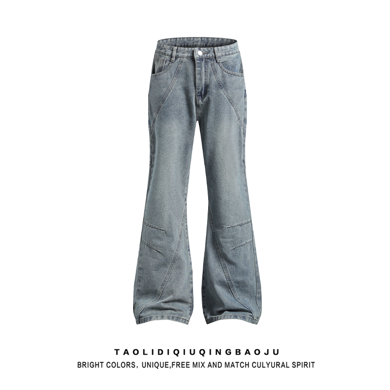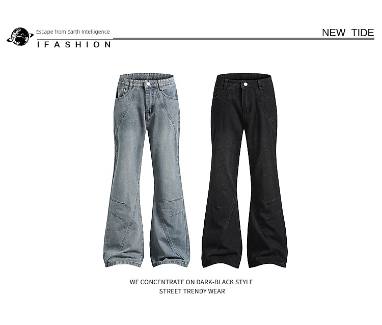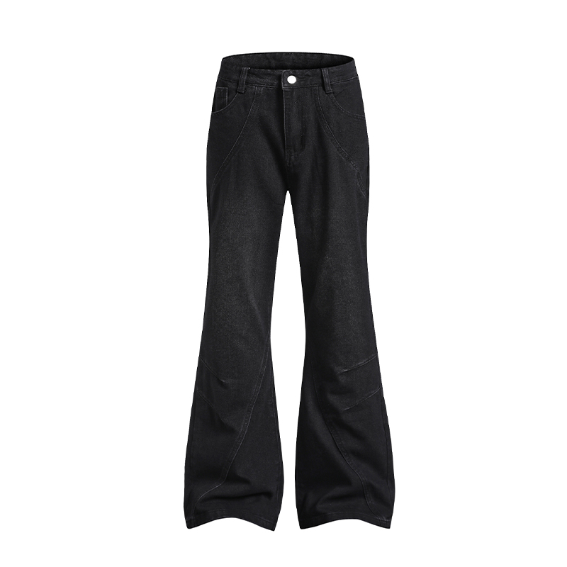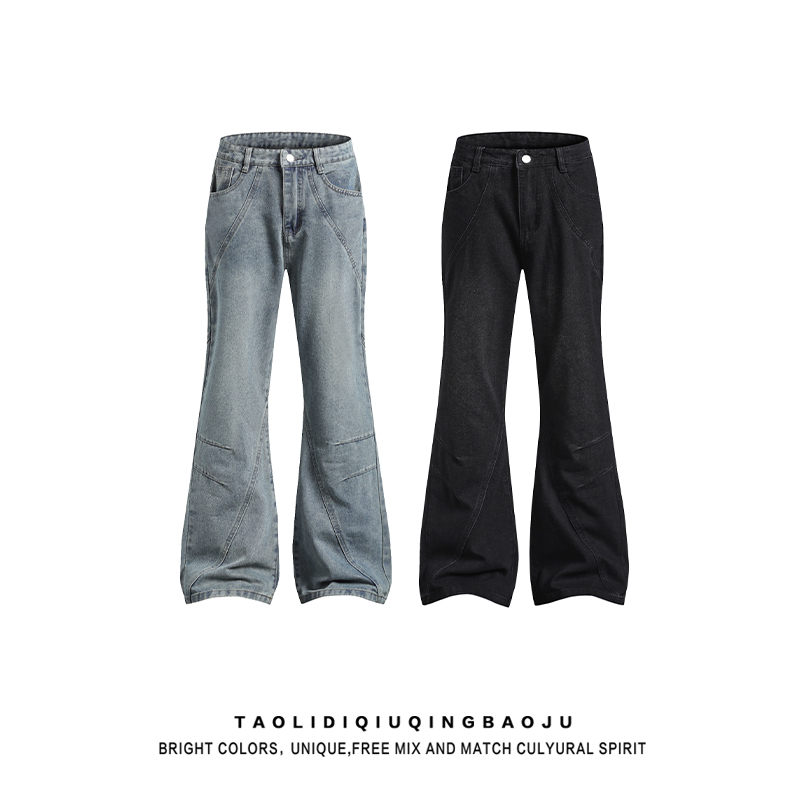 American High Street Stylish Deconstruct Micro-La Denim Women's Autumn Cleanfit Loose Slim Looking Black Bell-Bottoms