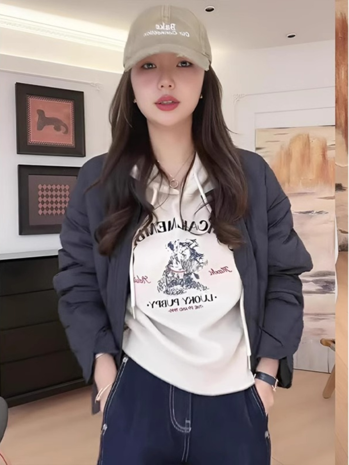 American Idle Style Hooded Fleece Lined Sweater Female 2025 New Arrival Best Selling Spring and Autumn Loose Design Long Sleeves Tops