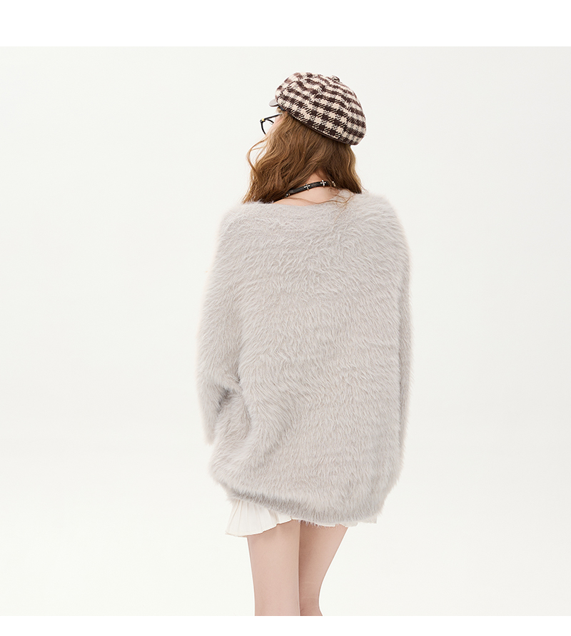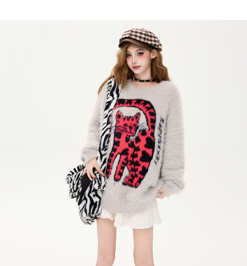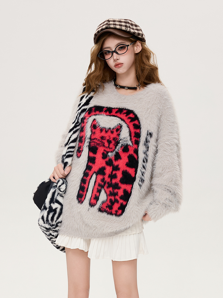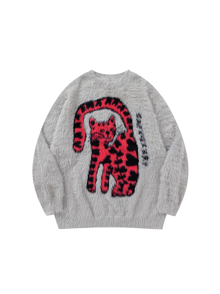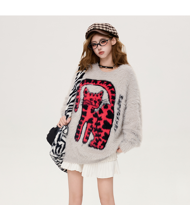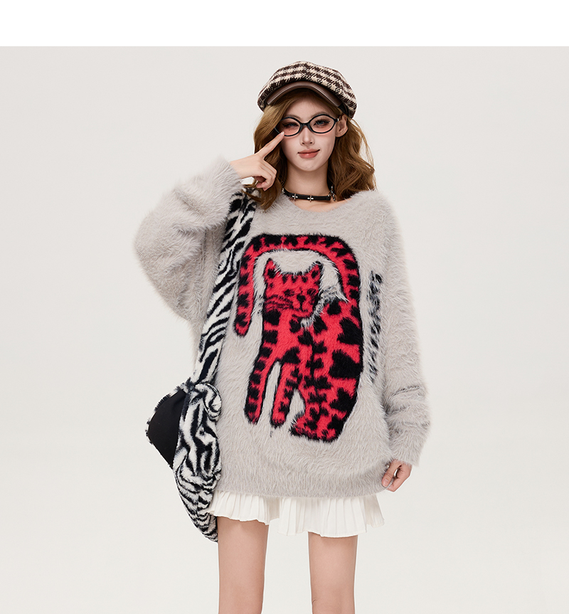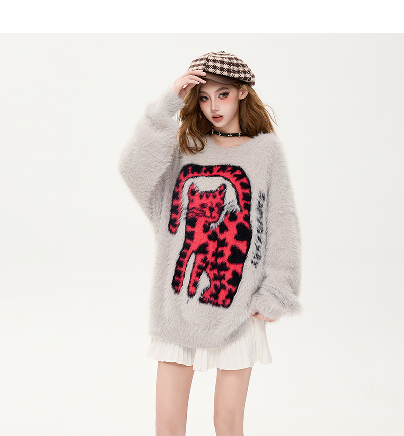 American Leopard Cat Mink Hair Sweater Women's 2025 New Arrival Retro Loose and Idle Couple Pullover Knitwear