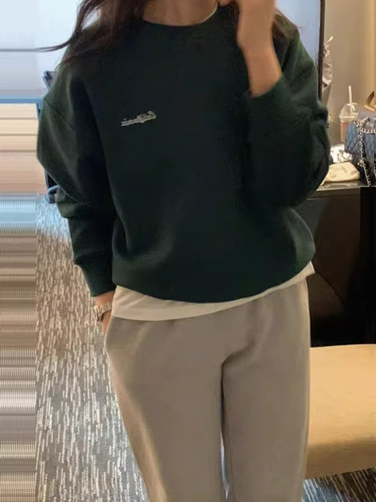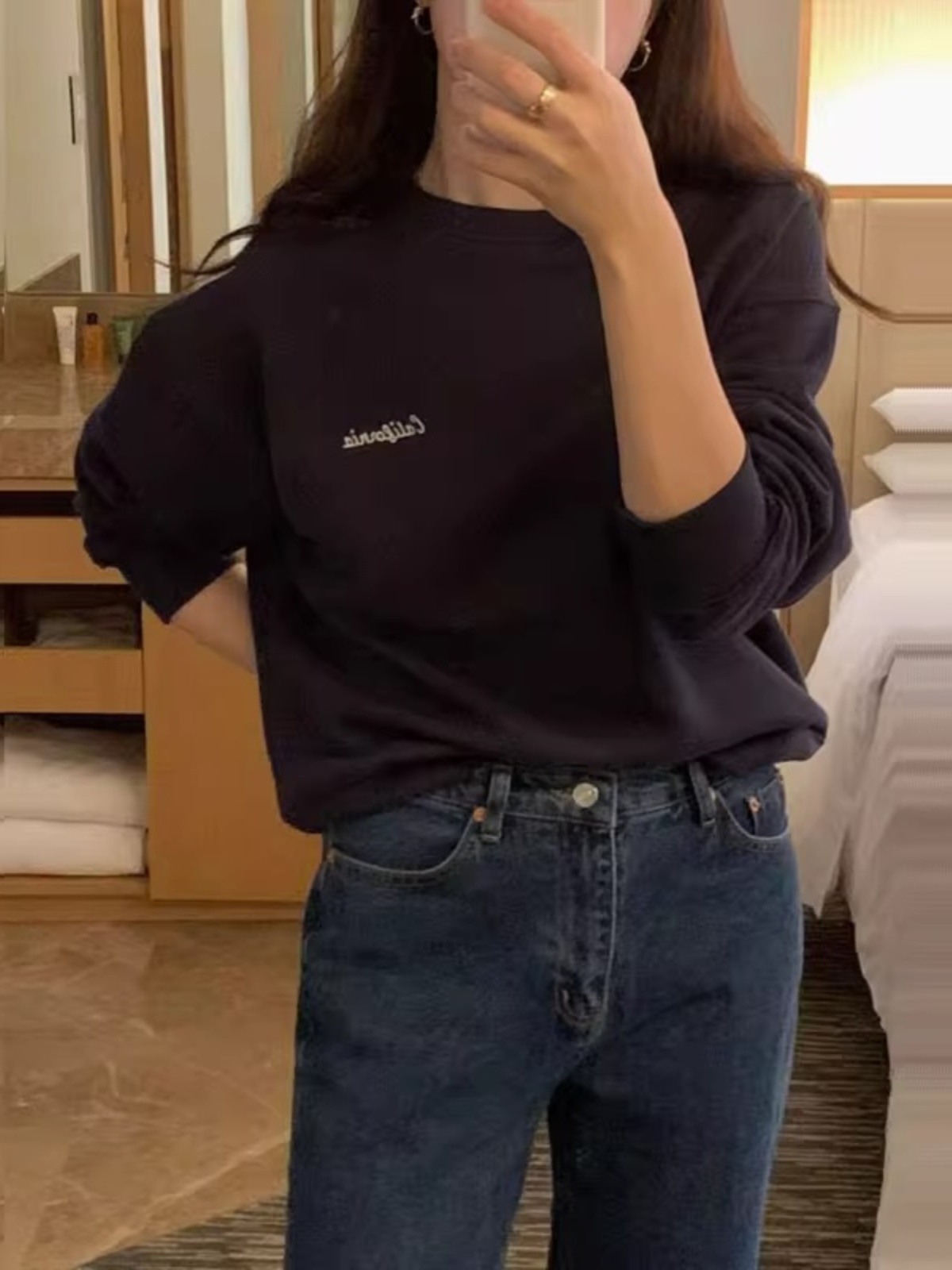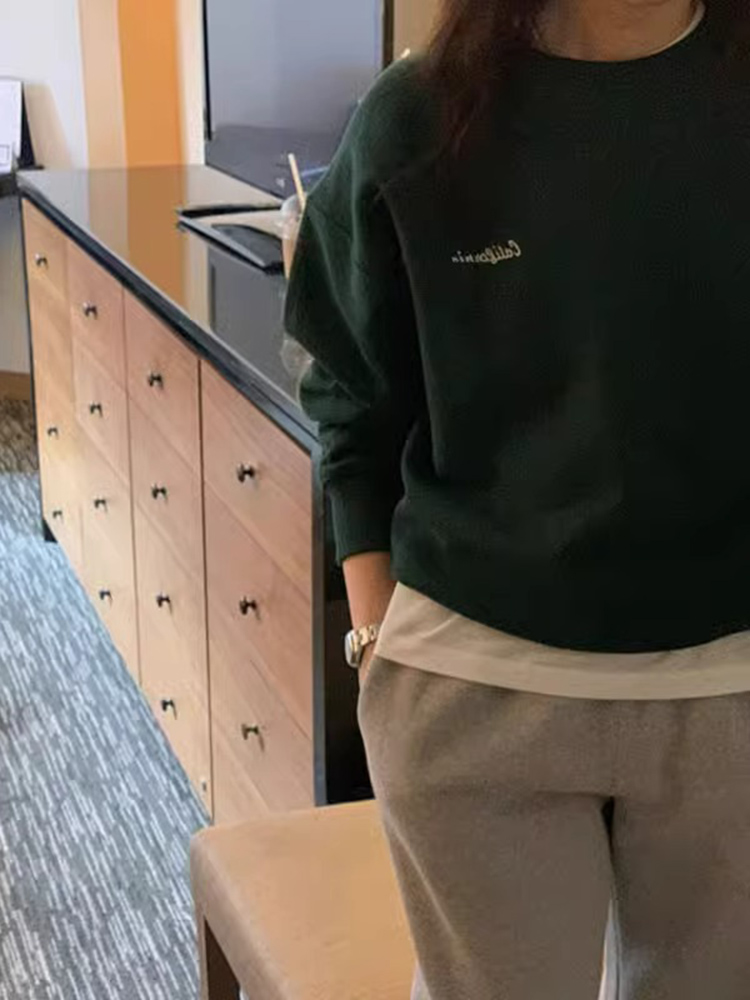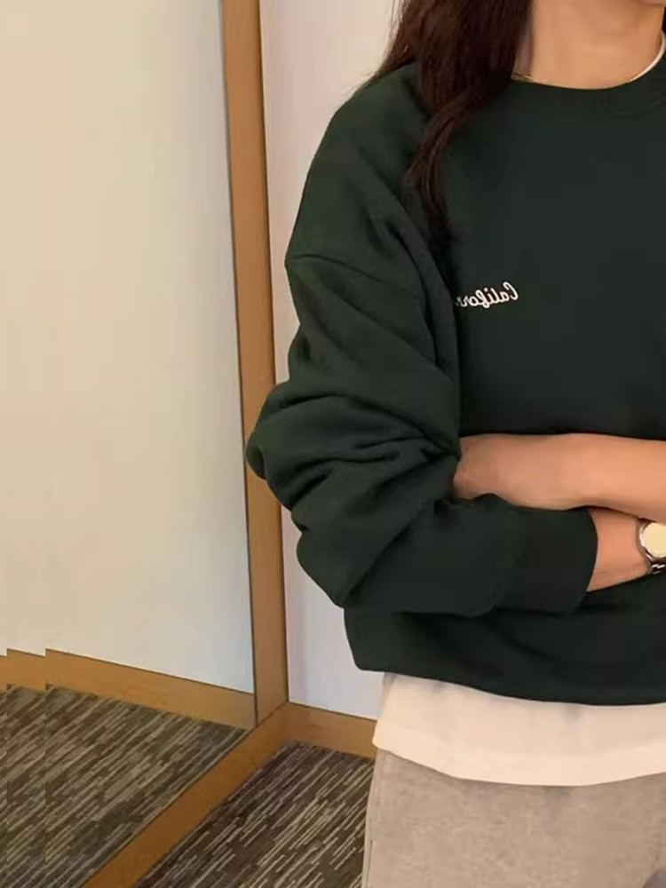 American Letter Printed Fleece Hoodie Women's Short round Neck Tops New Arrival Spring & Fall Loose Casual Thickening Outwear
