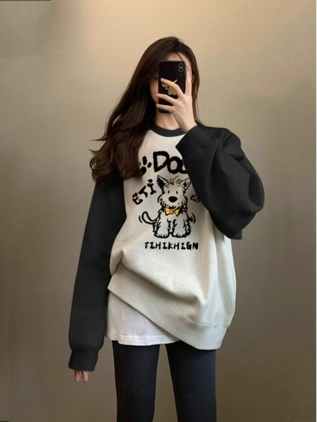 American Raglan round Neck Sweatshirt Women's Spring & Fall 2025 New Arrival Best Selling Small Idle Style Heavy Weight Long Sleeves Tops