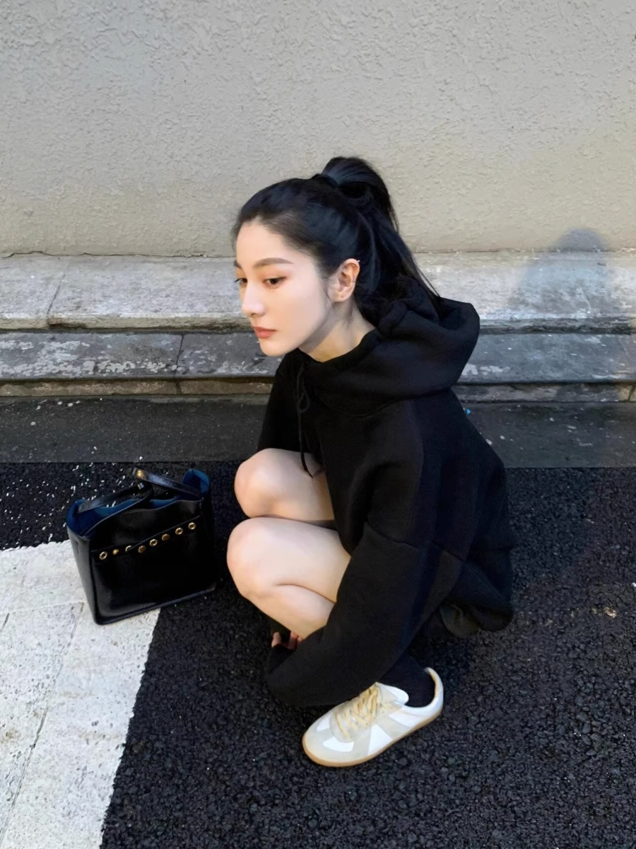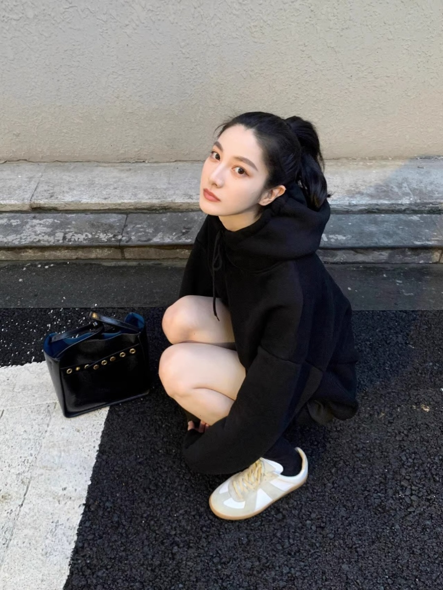 American Retro Black Hoodie Women's Spring & Fall Thin Niche Style Cold Series Fancy Loose Lazy Coat