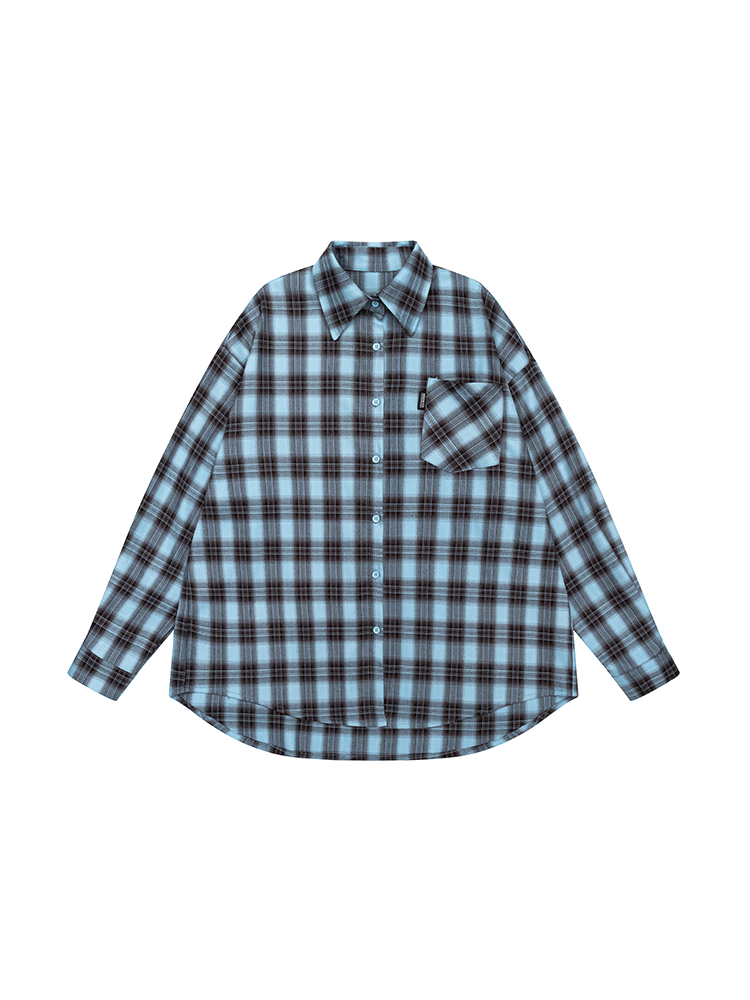 American Retro Blue Gingham Long Sleeves Shirt Women Fall Loose Chic Idle Style Couple Casual Cardigan Outer Wear