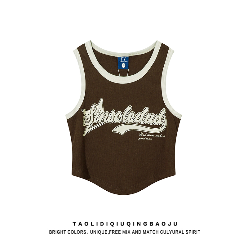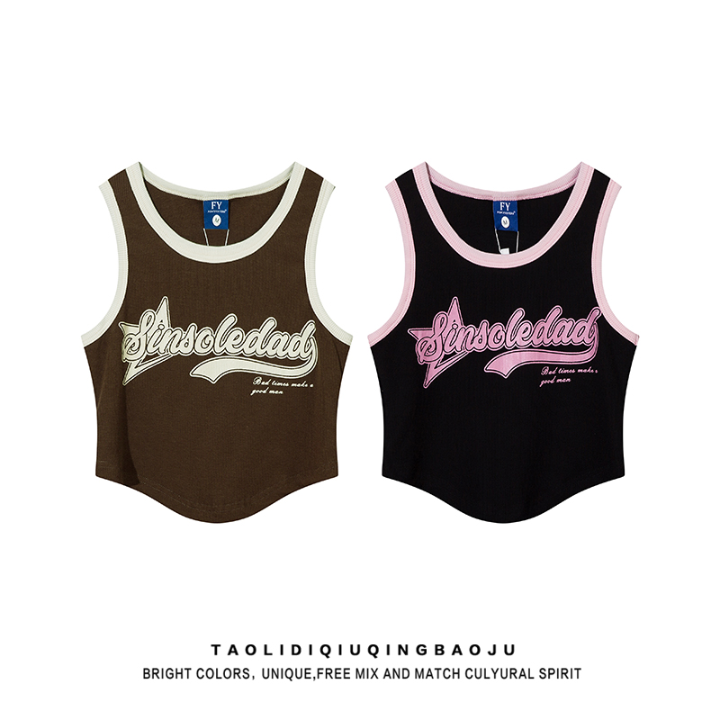 American Retro Contrast Color Knitted Vest Women's Summer Sweet Sexy Slim Looking Silm Short Outer Wear Sleeveless Tops Trendy