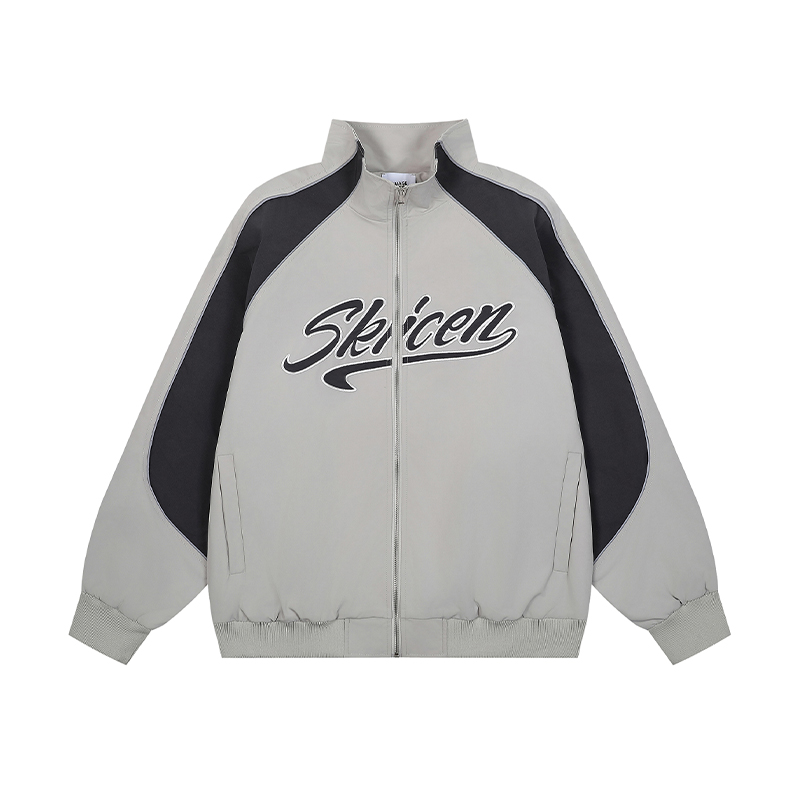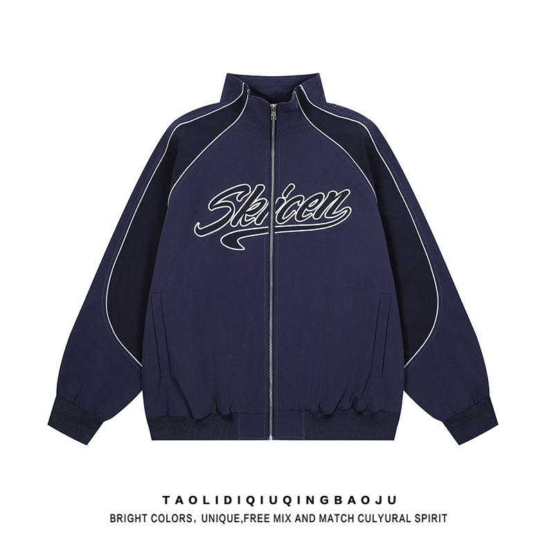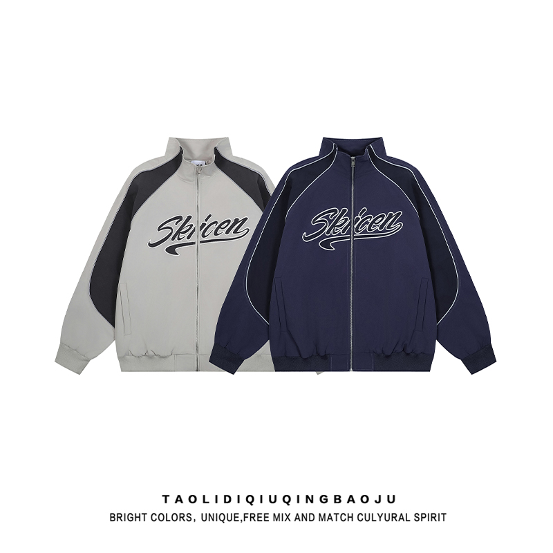American Retro Contrast Color Letters Embroidered Stand Collar Jacket Female Autumn Fashion Brand Loose Casual Couple Sports Outwear