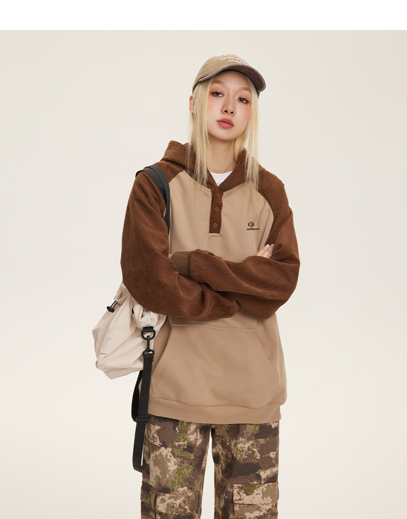 American Retro Contrast Color Raglan Sleeve Hooded Sweaters Women's Clothing Fall 2025 New Arrival Loose Casual Lazy Coat