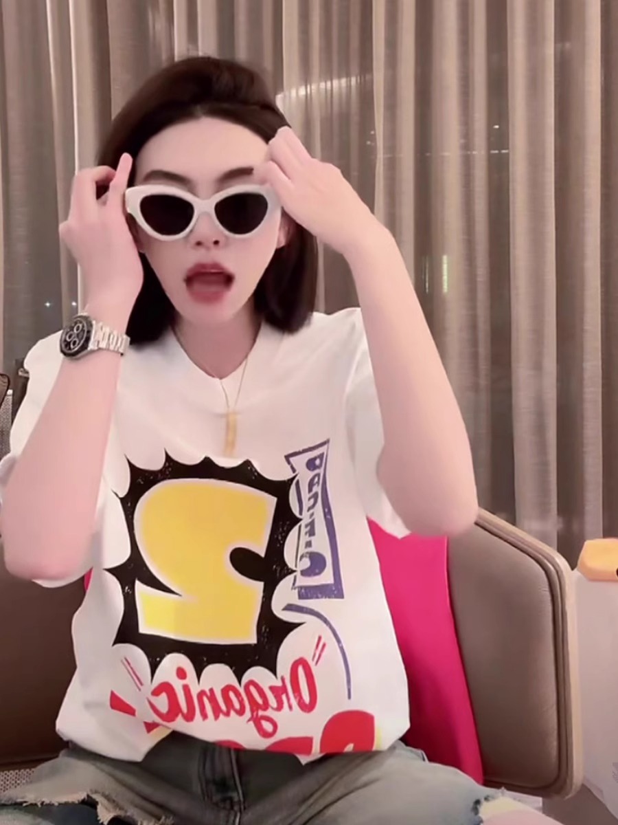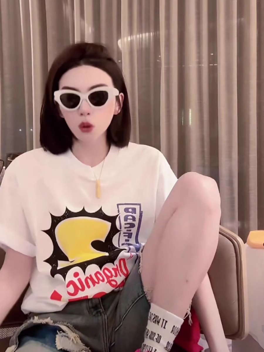 American Retro Fashion Brand Printing Short-Sleeved T-shirt for Women 2025 New Arrival Mid Length Long Length Fashion All-Match Half-Sleeve T-shirt Top