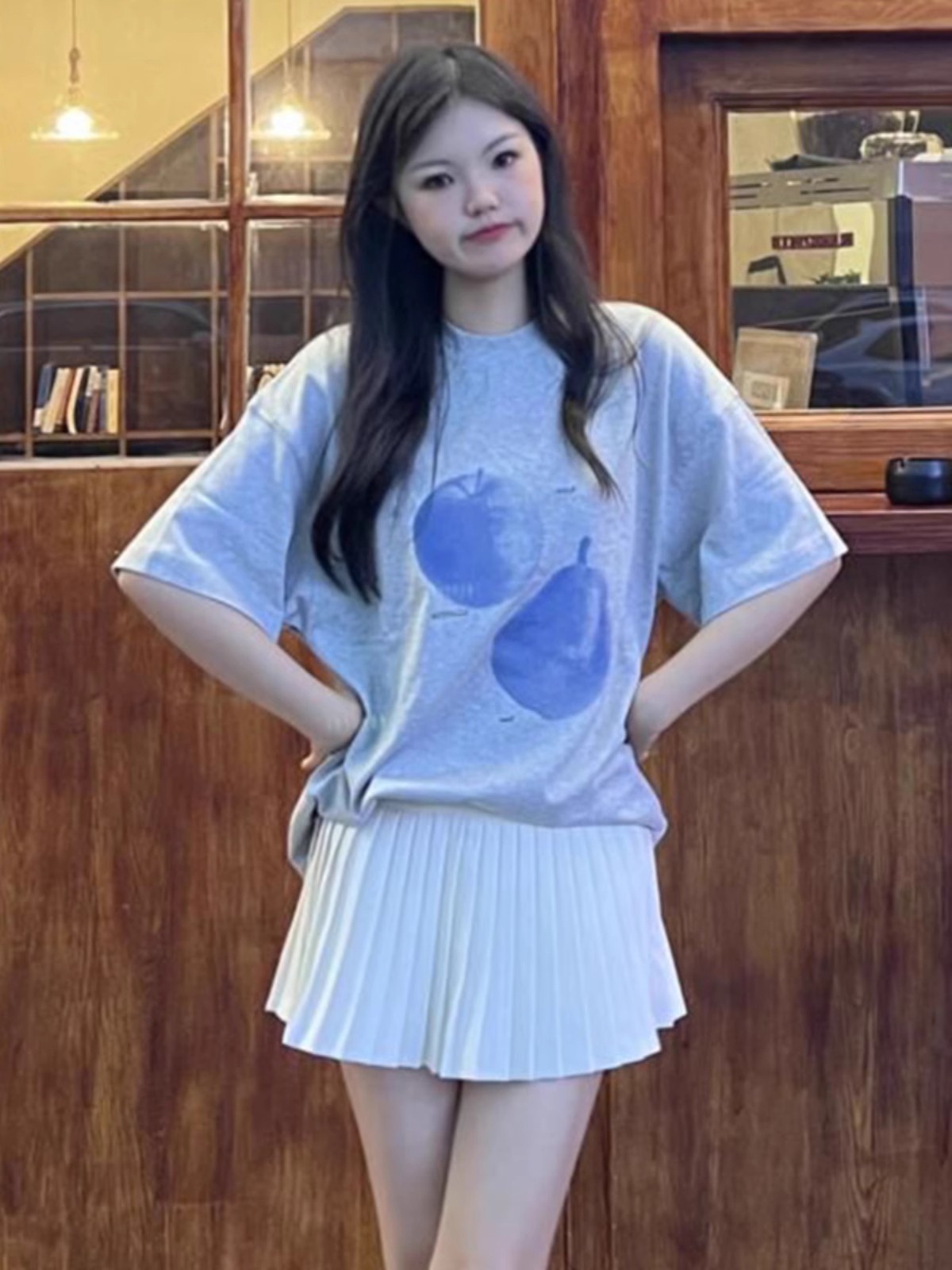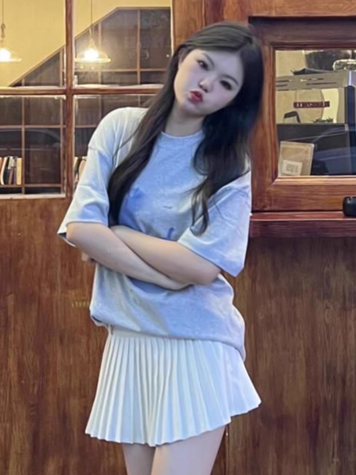 American Retro Gray Short Sleeve Pure Cotton T-Shirt Women's Summer Unisex Style Couple's Tops Trendy plus Size Half Sleeve T-shirt
