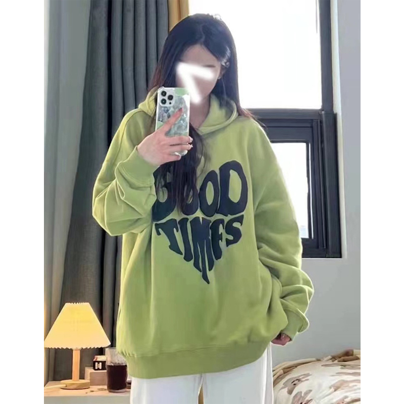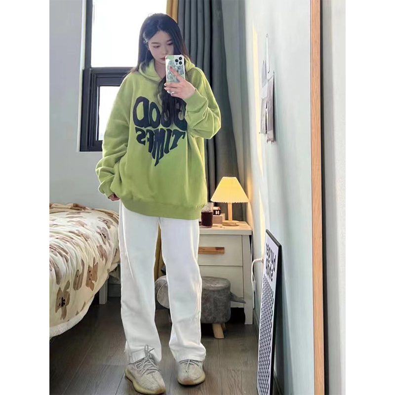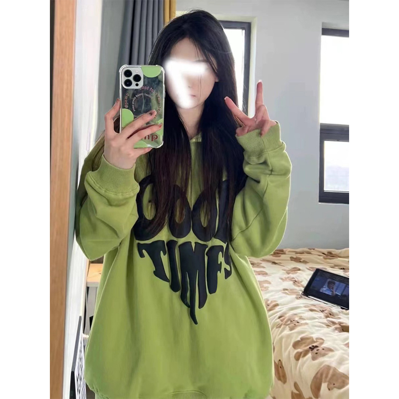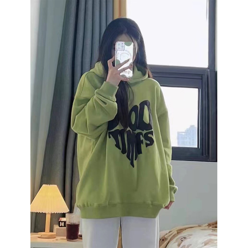 American Retro Hooded Sweatshirt Female Loose New Trendy Oversize Green Spring & Fall Idle Style Fleece Padded Coat