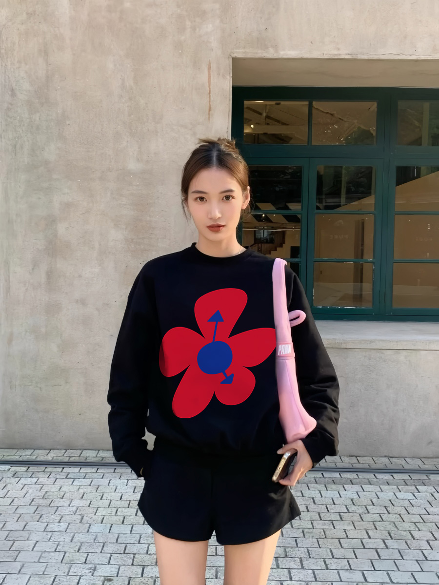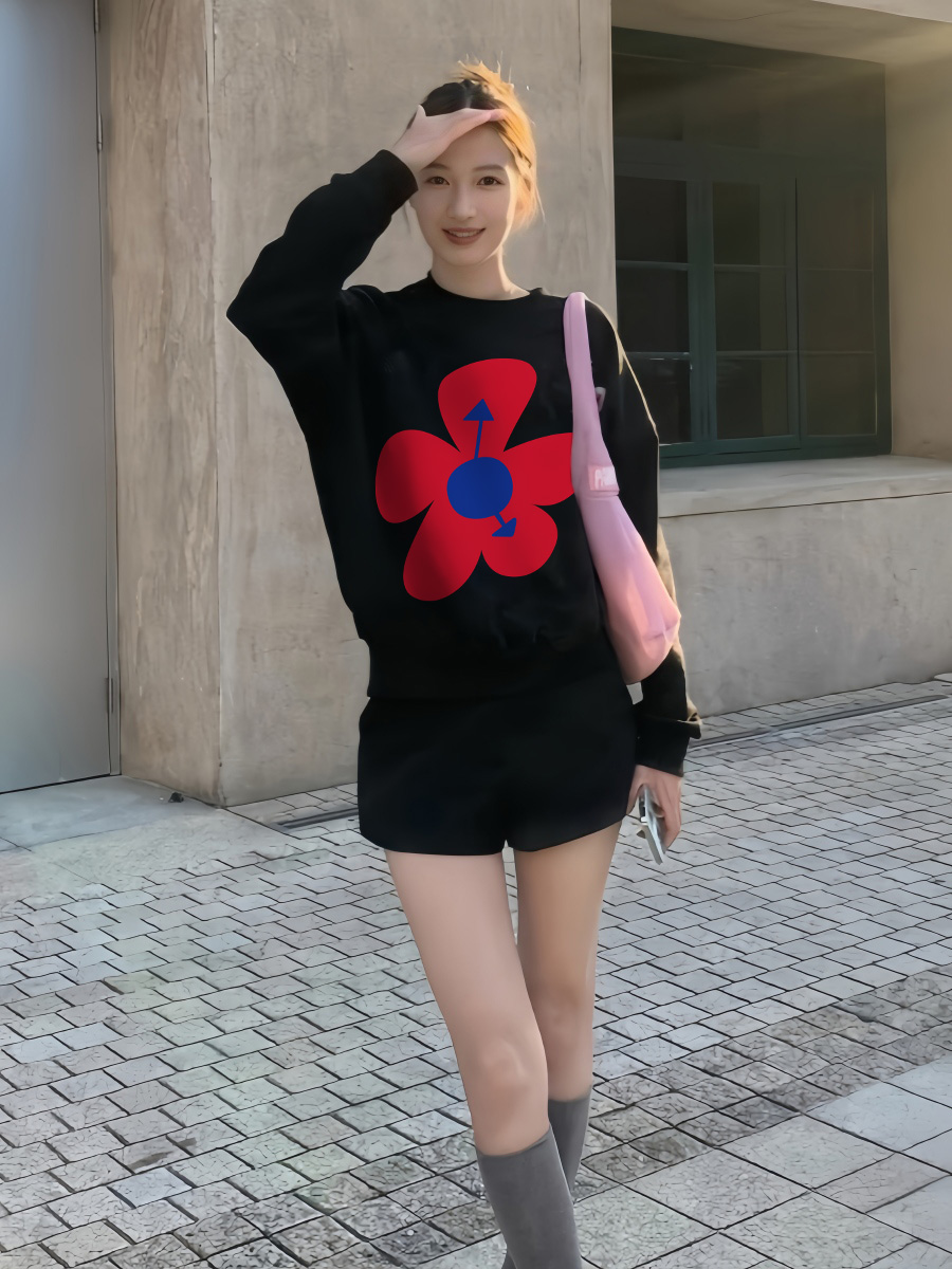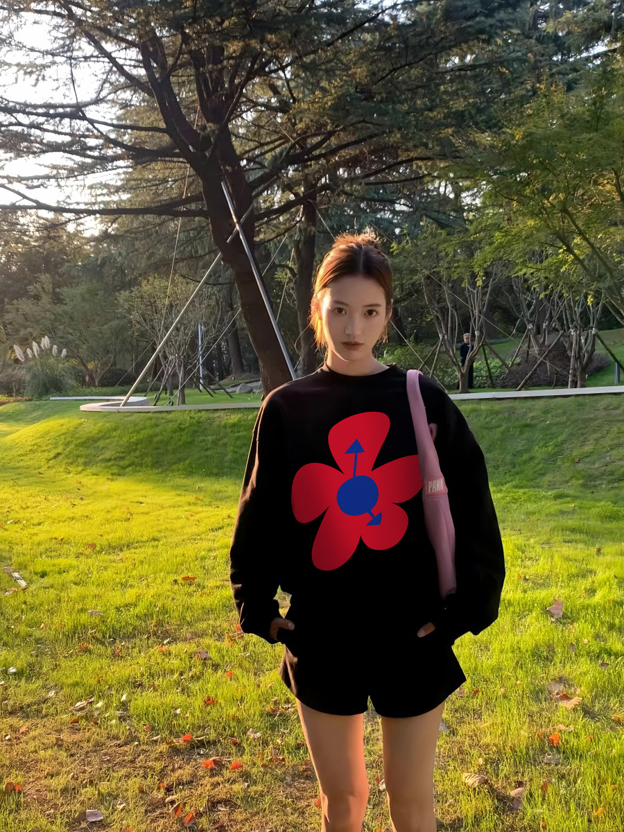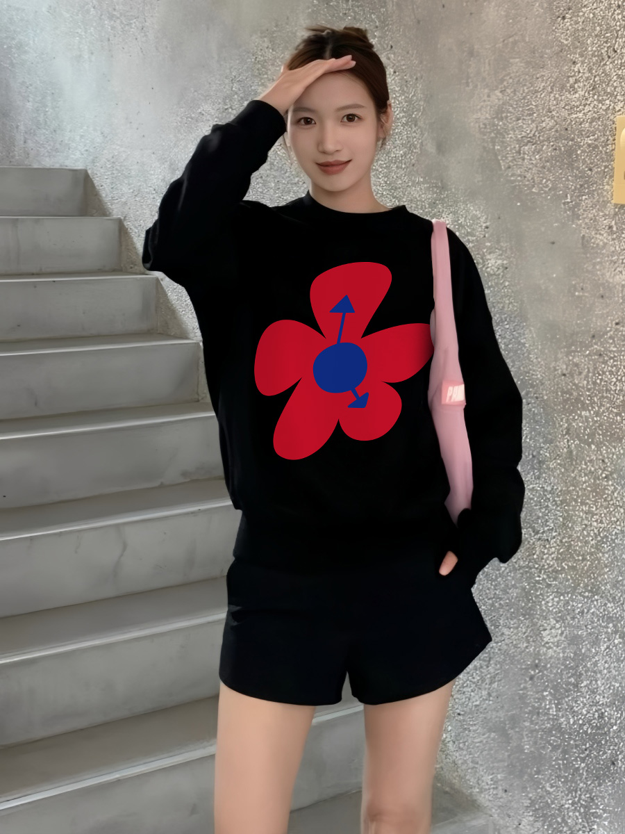 American Retro Lazy Coat Flowers Print Loose Crew Neck Top 2025 New Arrival Best Selling Pullover Sweatshirt Female