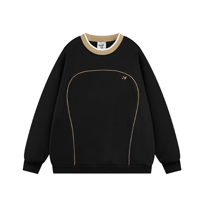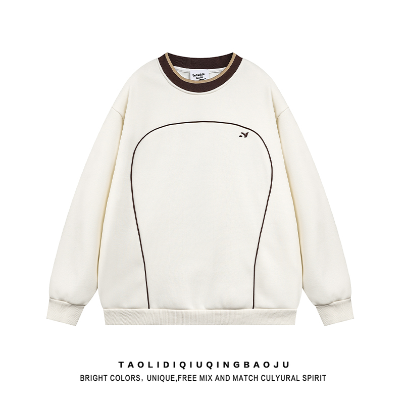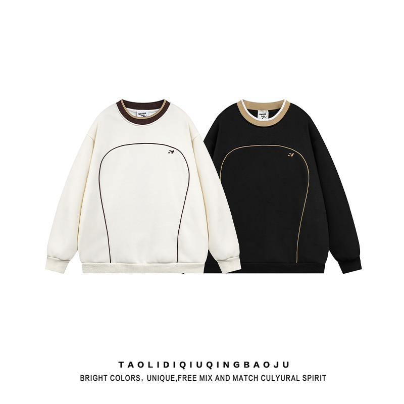 American Retro Lines Assorted Colors Fleece Sweatshirt Women 2025 New Arrival Trendy Loose Lovers Wild round Neck Pullover