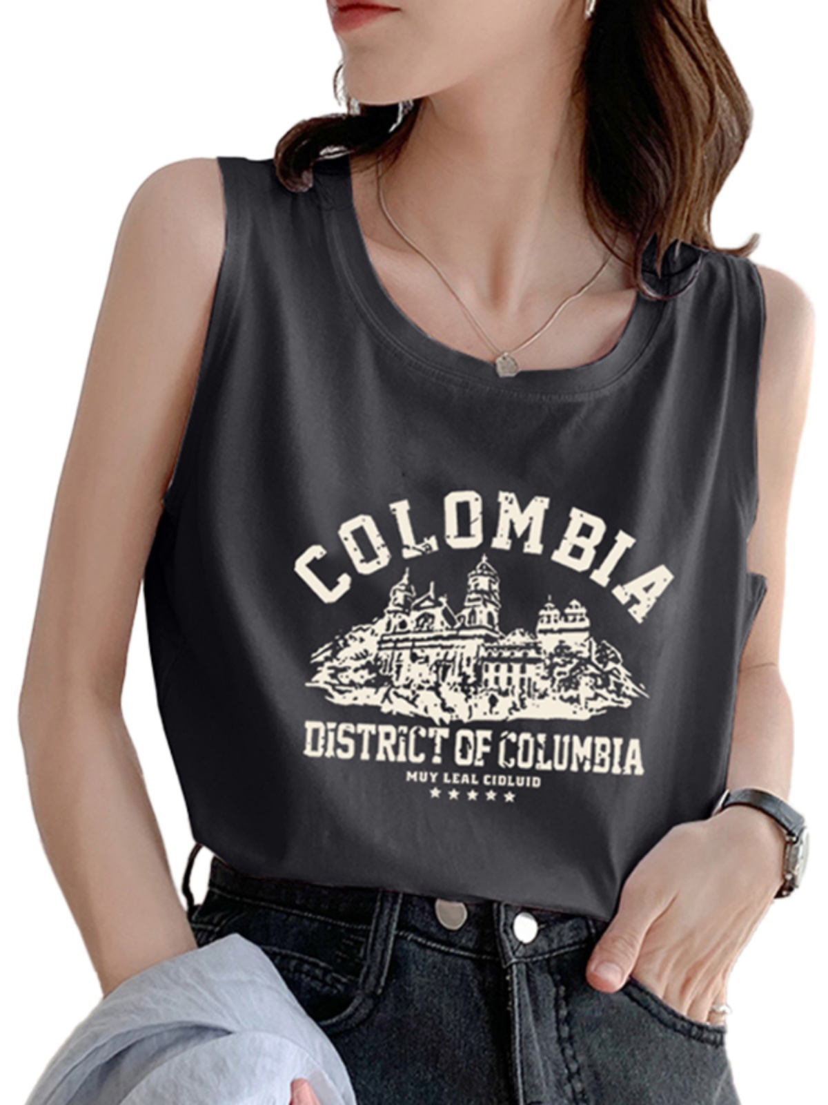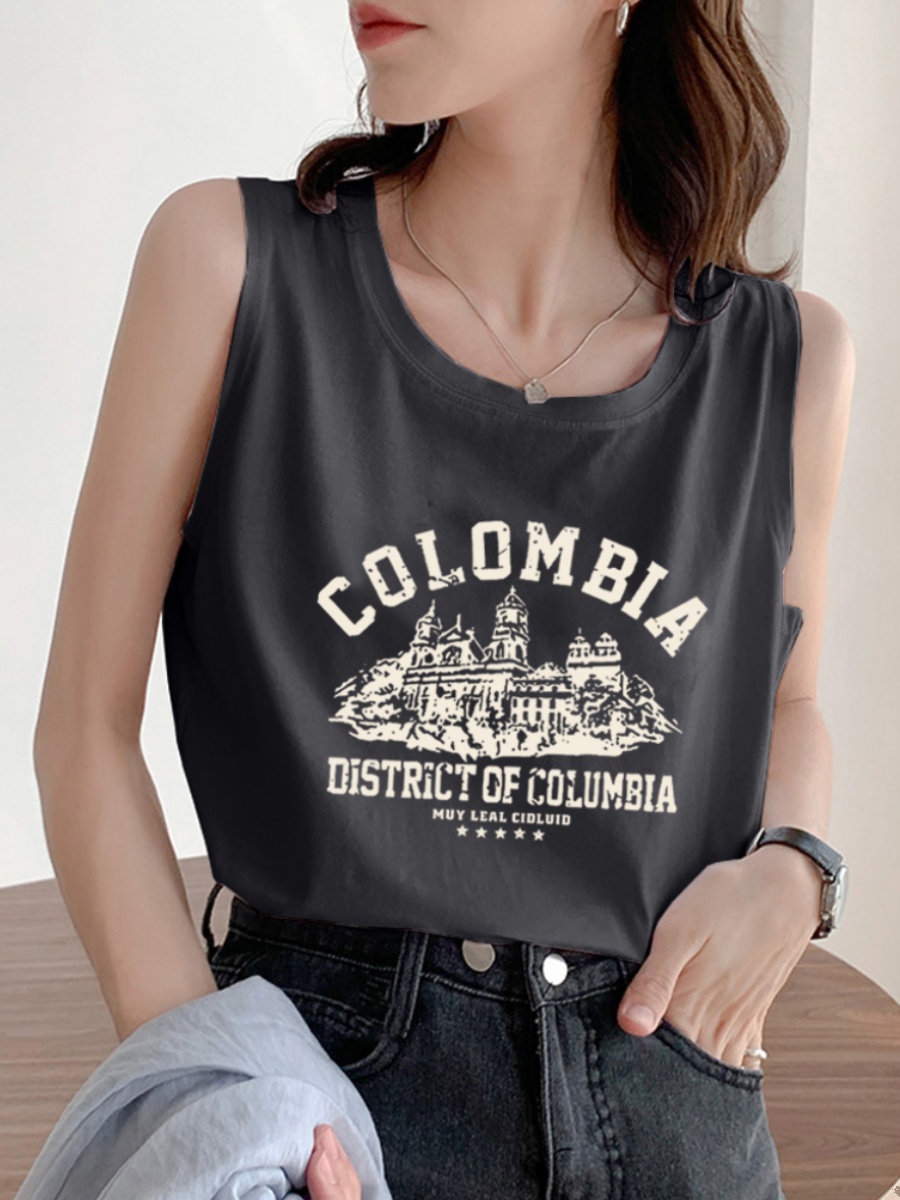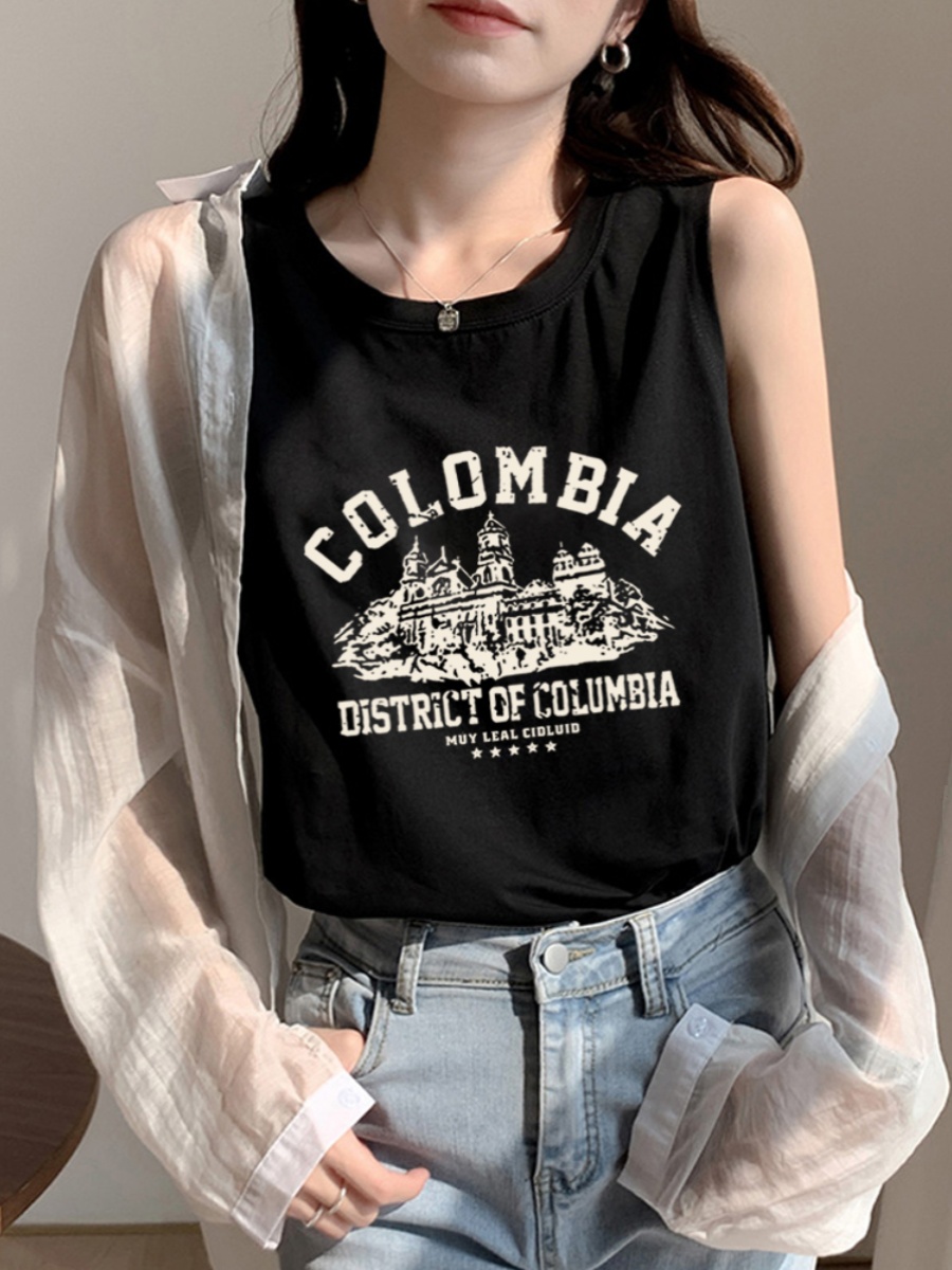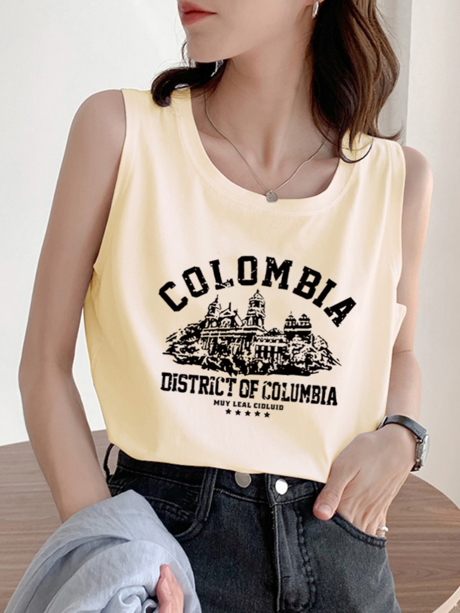 American Retro Oversize Pure Cotton Vest T-shirt for Women 2025 Summer New Arrival Plus Size Plus Size Ladies Sleeveless Tops Fashion