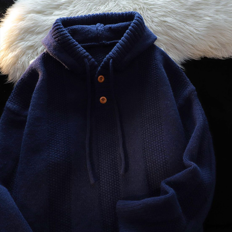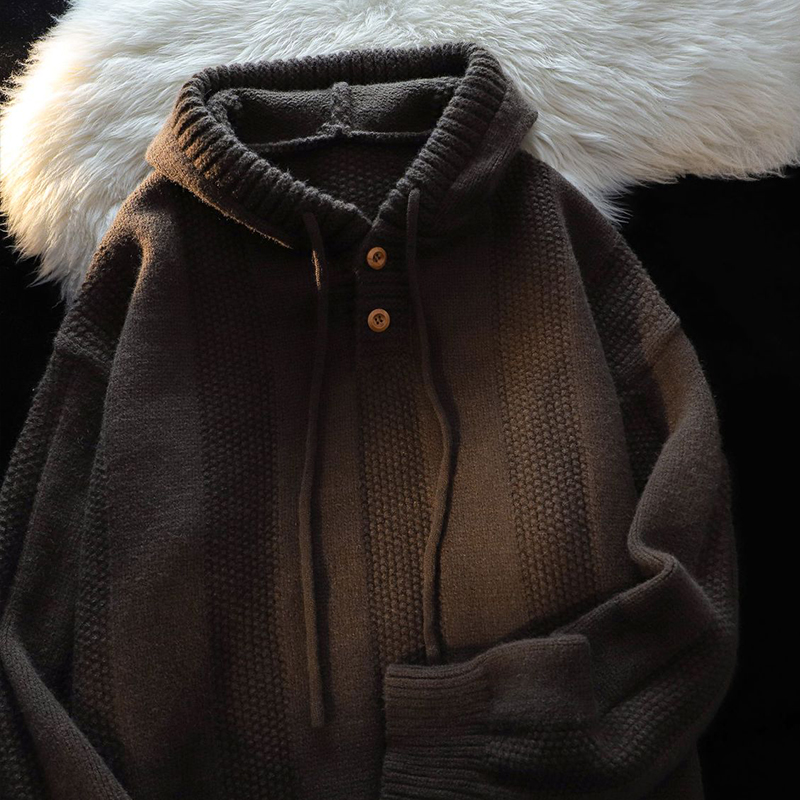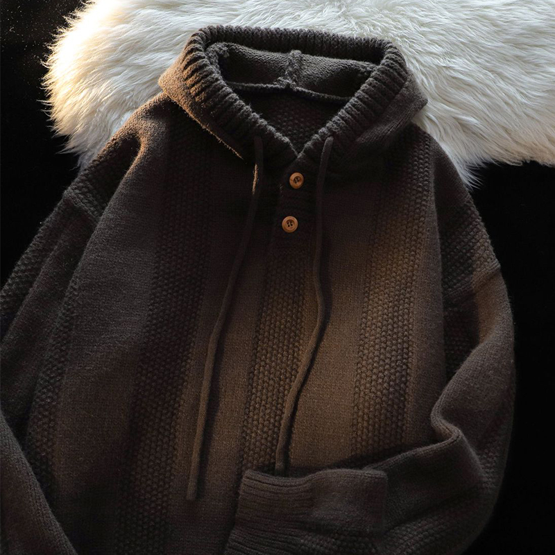 American Retro Pure Color Pullover Hooded Sweater Female Winter Loose and Lazy Style Lovers Wild Long Sleeve Knitted Coat