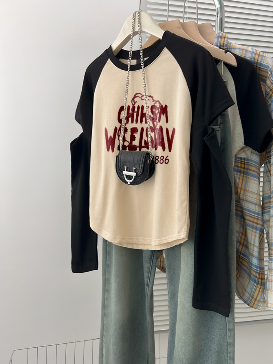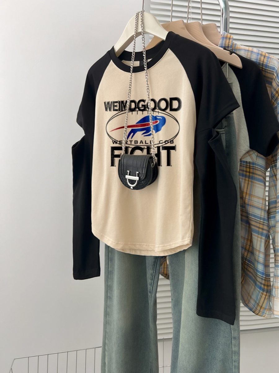 American Retro Raglan Long Sleeves T-shirt Women's Autumn 2025 New Arrival Plus Size Loose Bottoming Shirt Stylish Niche Top